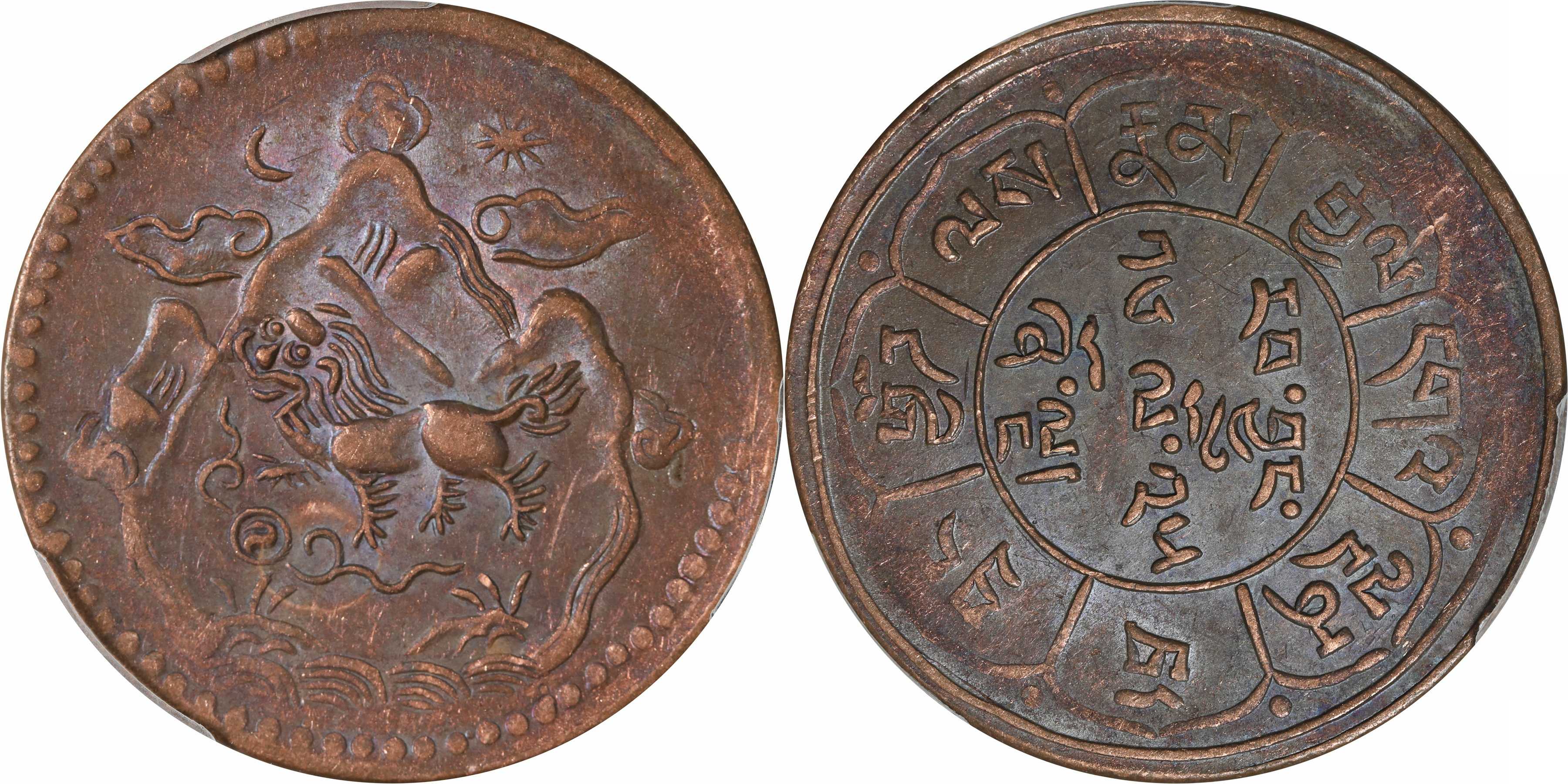 1951年西藏双日三山版雪阿 5Sho铜币