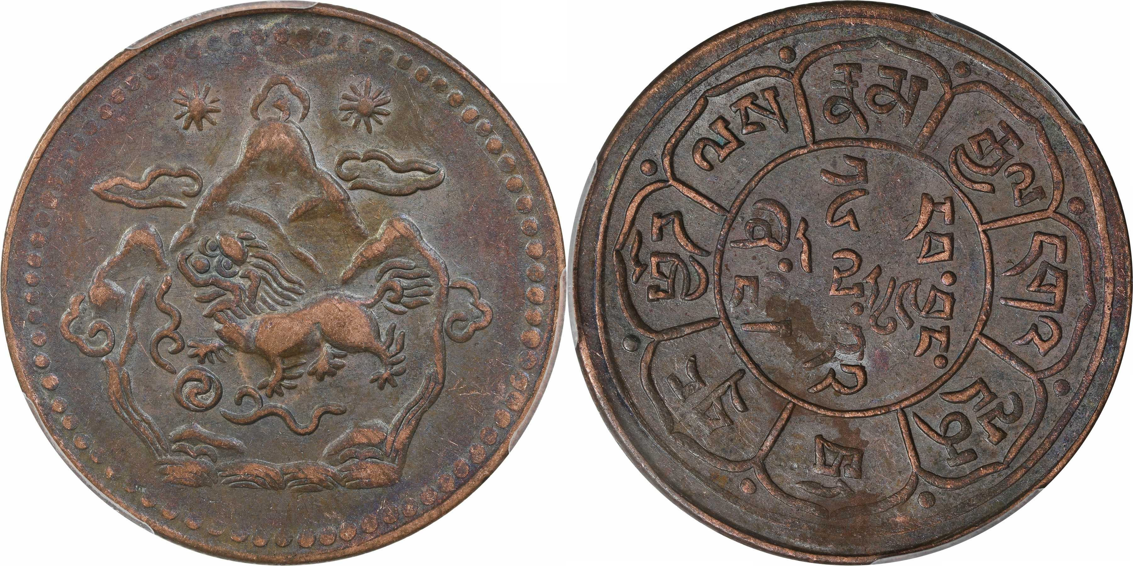 1948年西藏双日三山版雪阿5Sho铜币一枚,Y-28.1。铜色莹润。