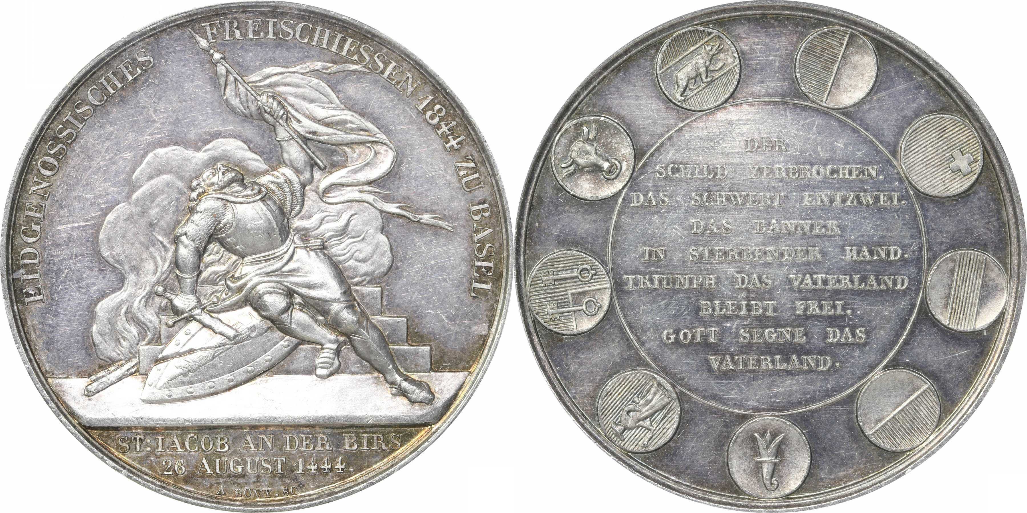 1844年瑞士巴塞尔射击节银章一枚,直径38mm。高浮雕工艺。