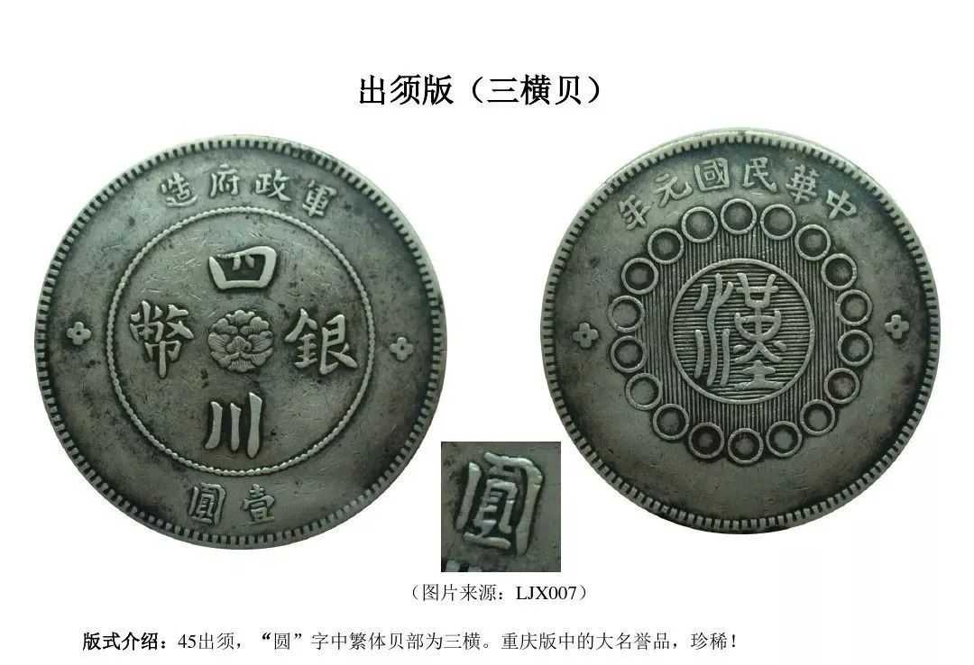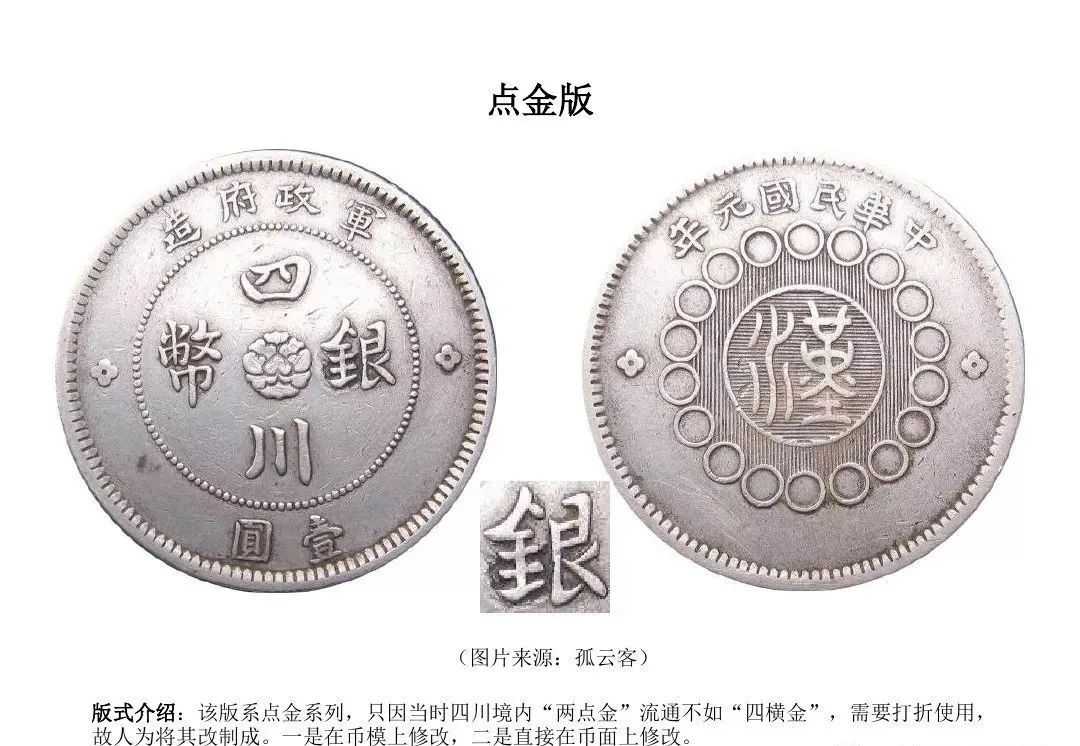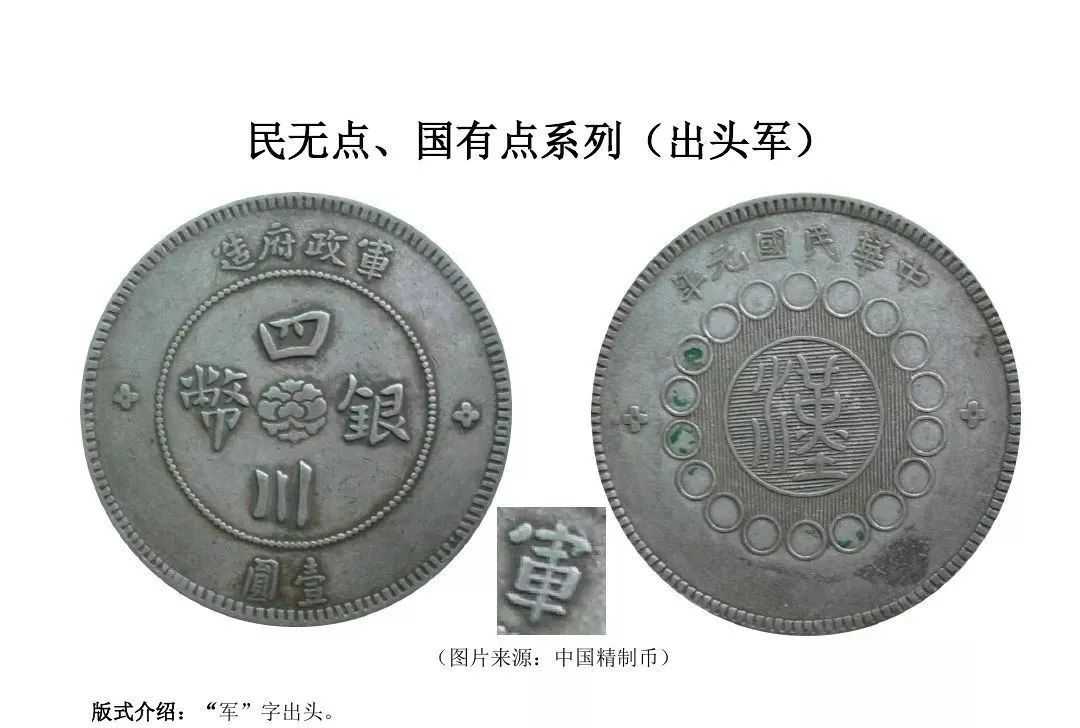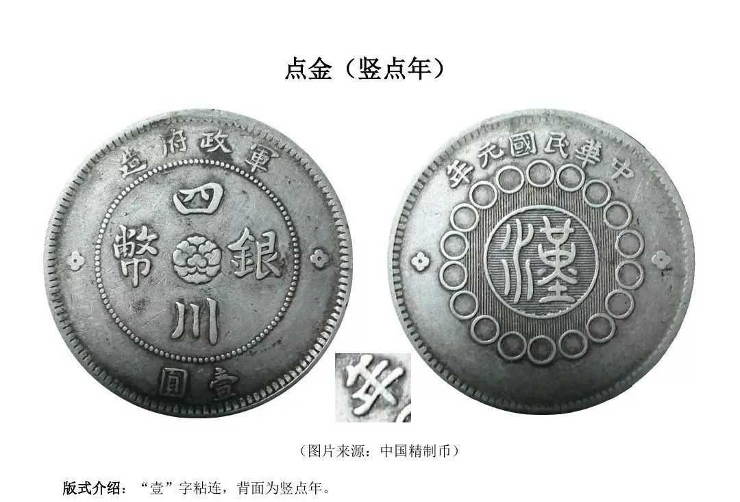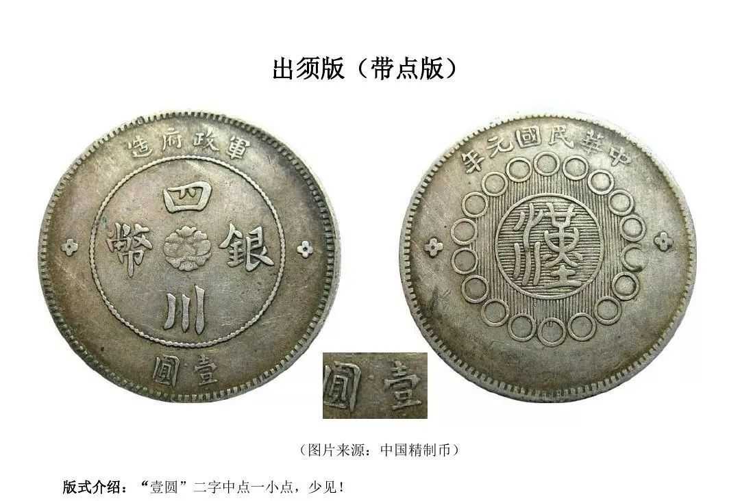 中华民国元年四川银币军政府造壹圆铸造于1912年,是四川省独立后自行研发的币模铸造,比起袁大头银元、龙洋银元要轻,但成色却在96%至96.8%之间,发行数量相对较多。据有关资料,四川军政府银币,因其铸主较少,铸期较短,再加铸造期间换模修版等原故,现存于世者版别极其繁杂,不下百种之巨。“壹元”银元正面图案中央是一个很大的篆书“汉”字,代表了新政府“大汉”的意思,具有反清意义。
