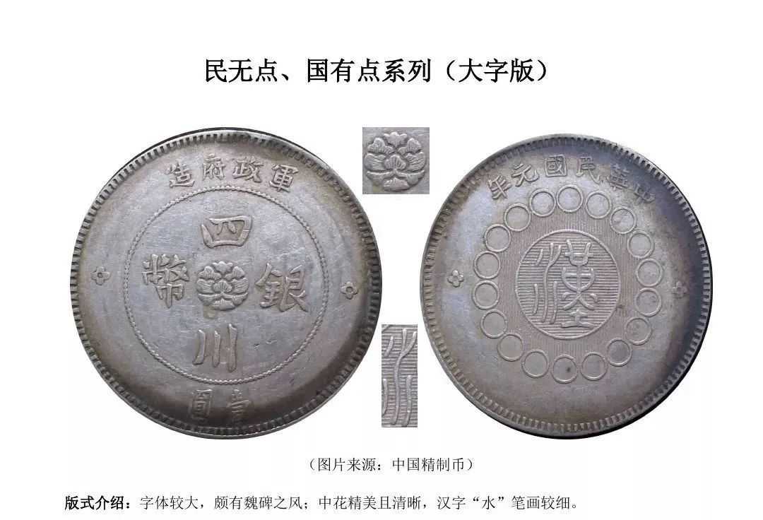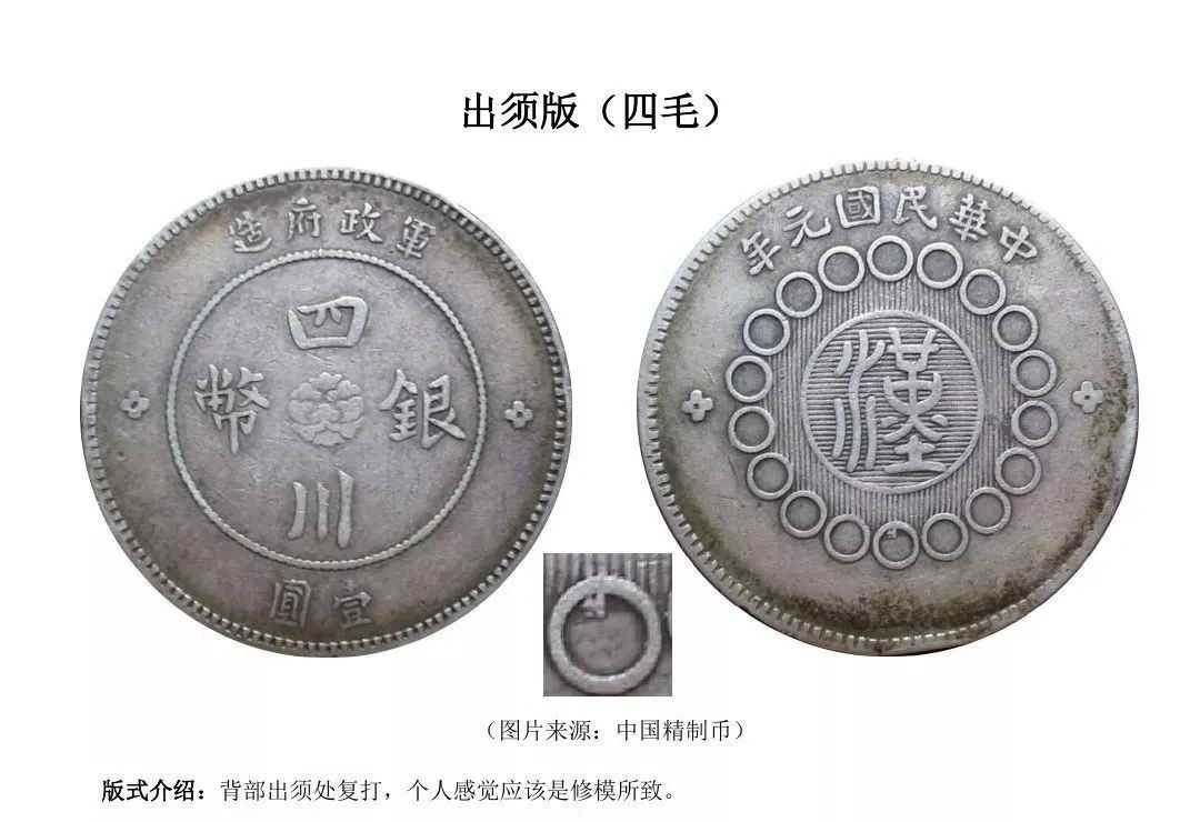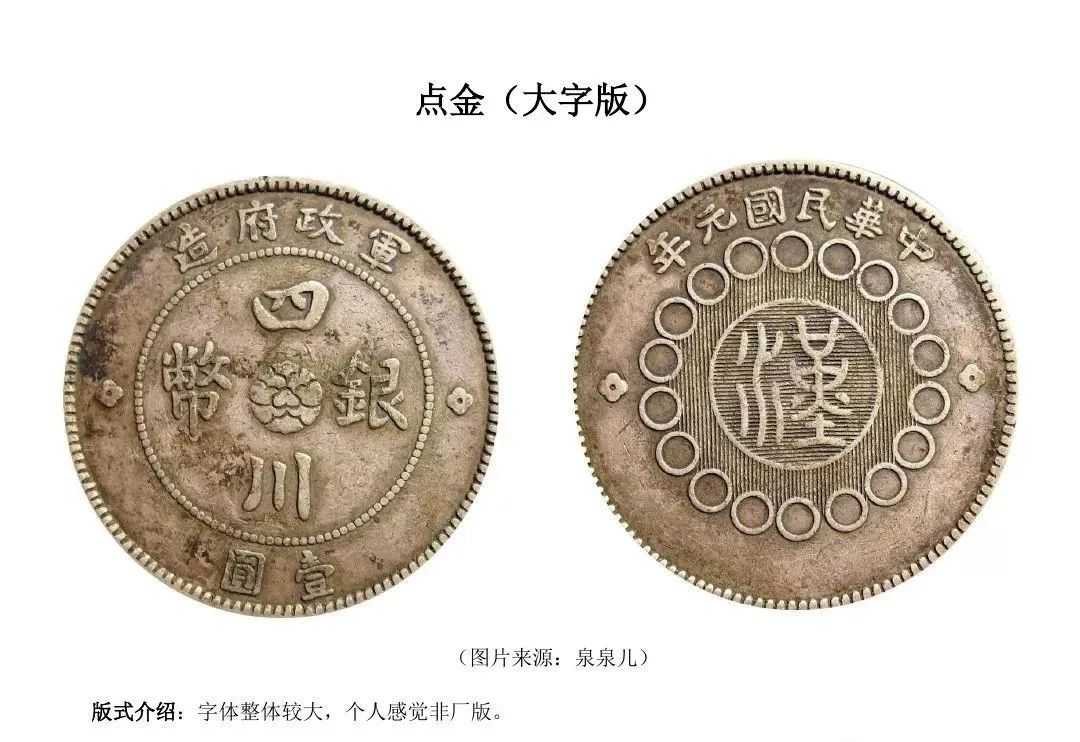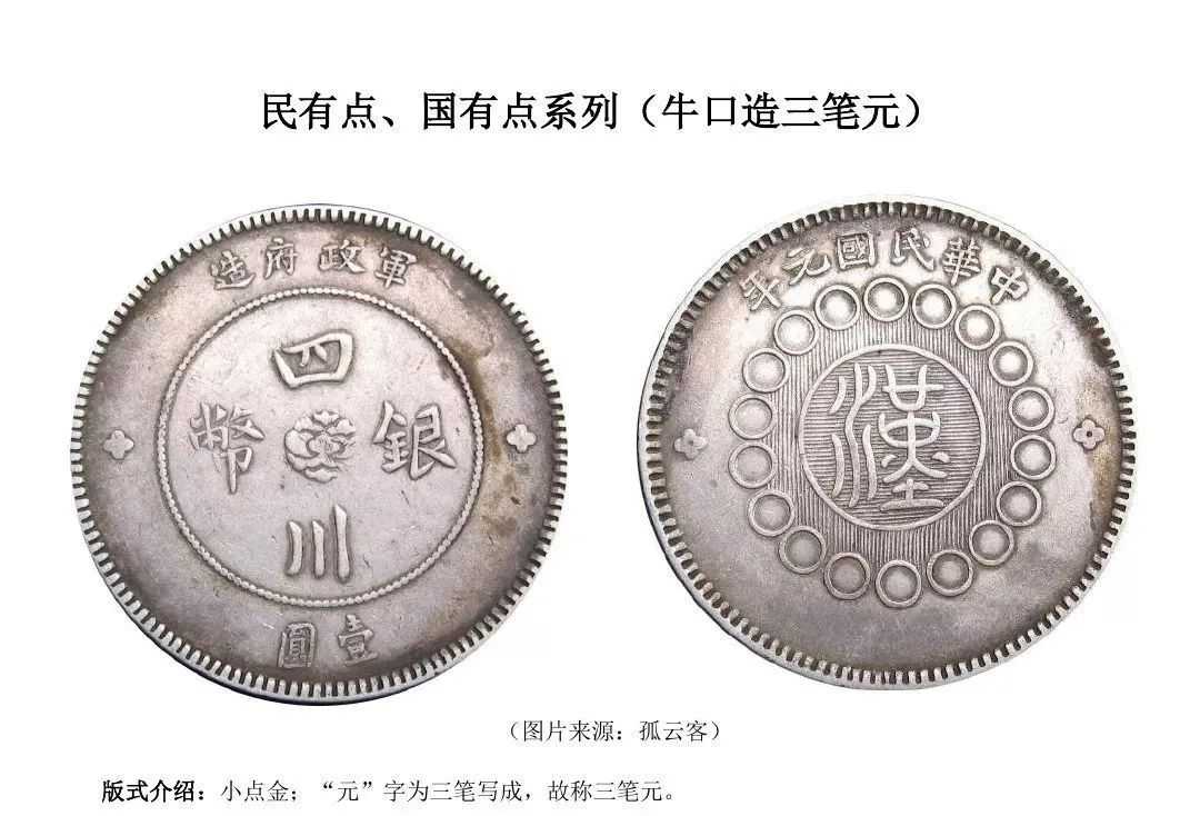 中华民国元年四川银币军政府造壹圆铸造于1912年,是四川省独立后自行研发的币模铸造,比起袁大头银元、龙洋银元要轻,但成色却在96%至96.8%之间,发行数量相对较多。据有关资料,四川军政府银币,因其铸主较少,铸期较短,再加铸造期间换模修版等原故,现存于世者版别极其繁杂,不下百种之巨。“壹元”银元正面图案中央是一个很大的篆书“汉”字,代表了新政府“大汉”的意思,具有反清意义。