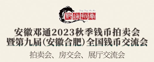 安徽邓通艺术品拍卖有限公司定于2023年9月8-11日在合肥包河区繁华大道与内蒙路交口安徽赛祥图恩酒店举办2023年秋季钱币拍卖会。本次拍卖会仍采取拍卖会、展厅交流会、房间交流会于一体模式,现诚邀广大泉友提前报名莅临本场钱币交流会!