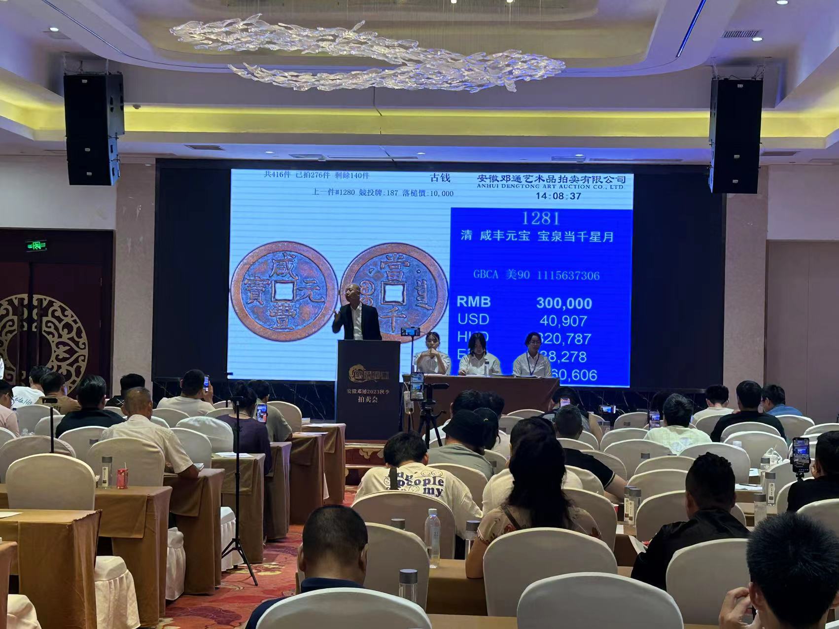 安徽邓通2023年秋季拍卖会暨第九届(安徽合肥)全国钱币交流会已于98日在安徽赛祥图恩酒店(合肥市包河经济开发区内蒙路与繁华大道交口)圆满落幕。在本次拍卖会上,共展出了1611件拍品,包括古钱、机制币、金银锭、纸币和杂项等品种。其中,机制币和古钱最受欢迎,成交情况亮眼。