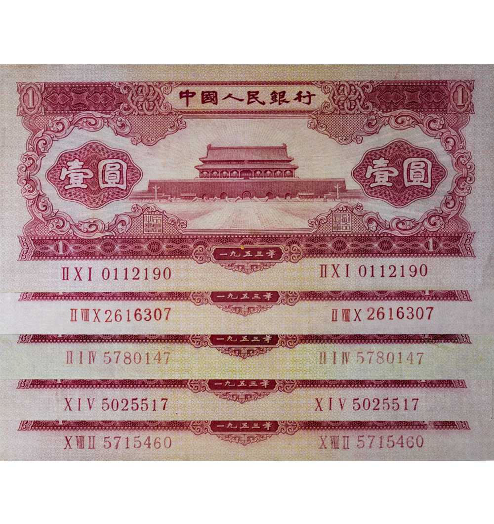 1953年第二版人民币 壹圆五枚一组