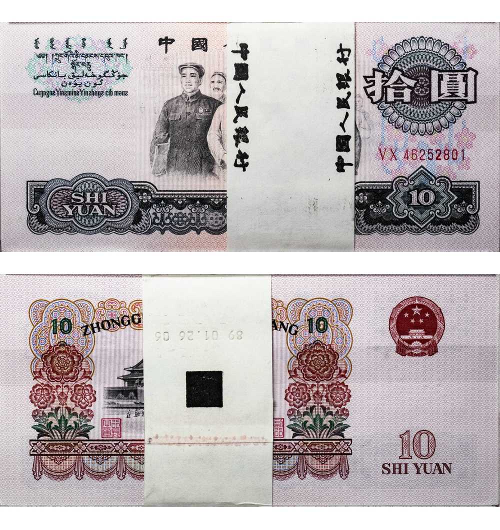 1965年第三版人民币二罗马大团结拾圆百连,冠号ⅤⅩ46252801-900。纸张硬挺,纹理清晰,色彩浓郁纯正。