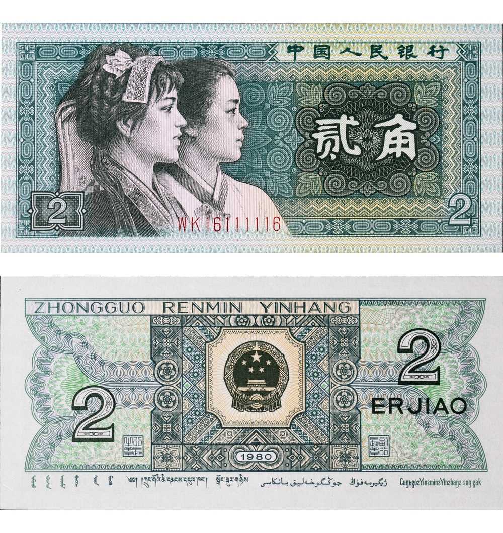 1980年第四版人民币贰角一张,冠号WK16111116。倒置号,老虎号,无3457。纸张硬挺,图文清晰完整,保存完好。
