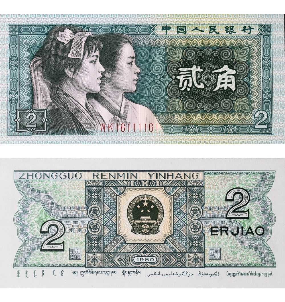 1980年第四版人民币贰角一张,冠号WK16111161。雷达标,倒置号,狮子号,无3457。纸张硬挺,图文清晰完整,保存完好。