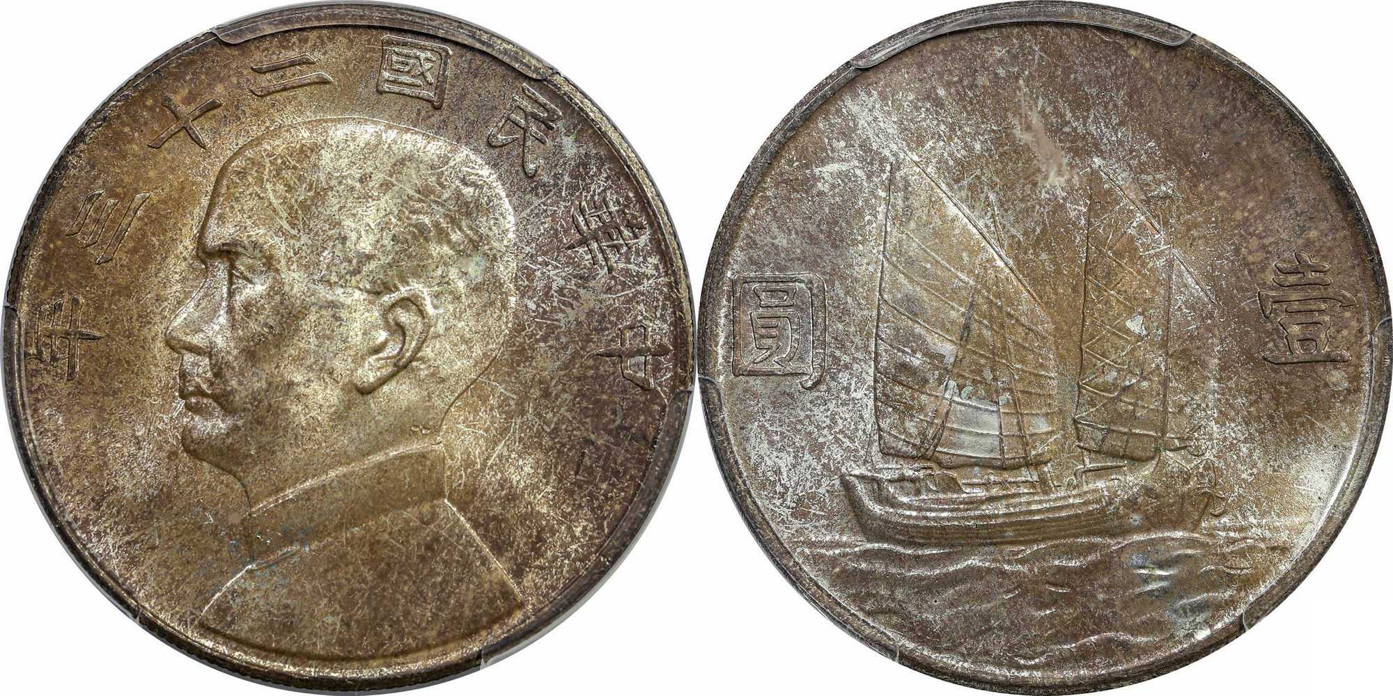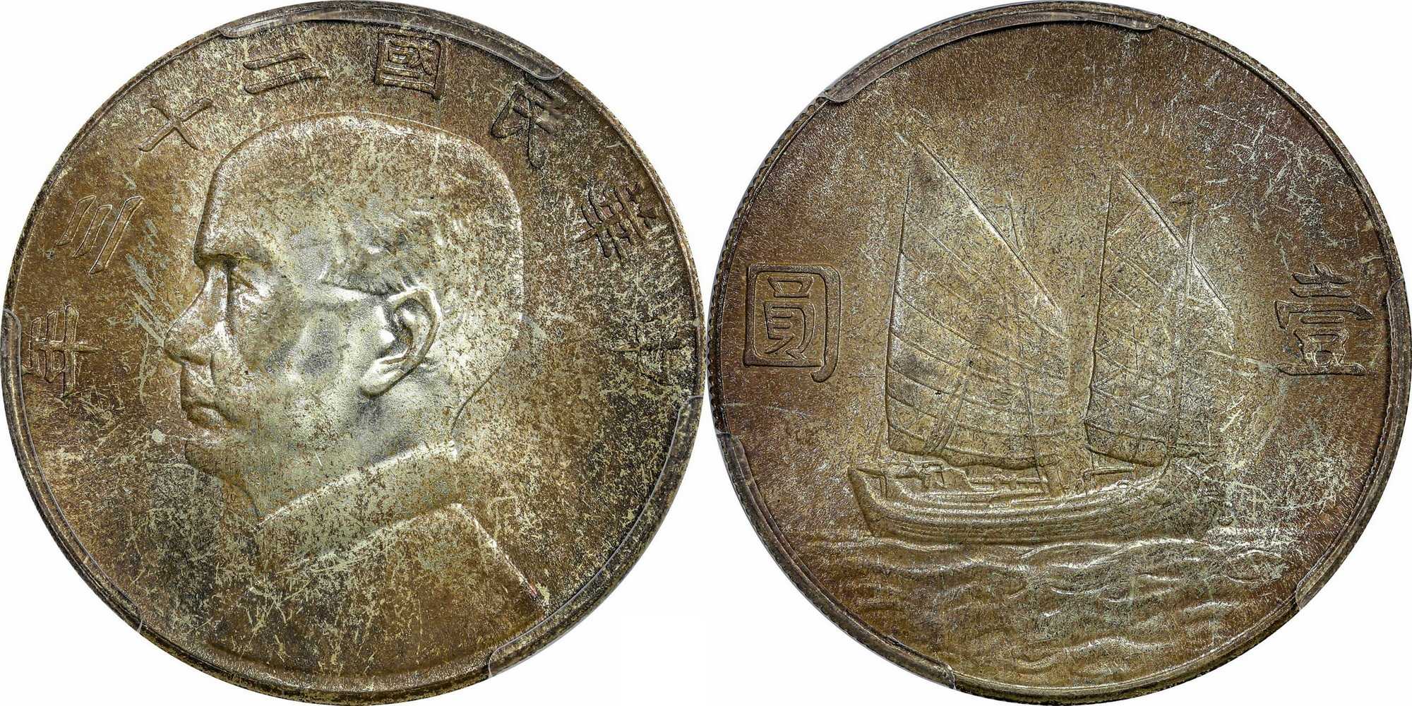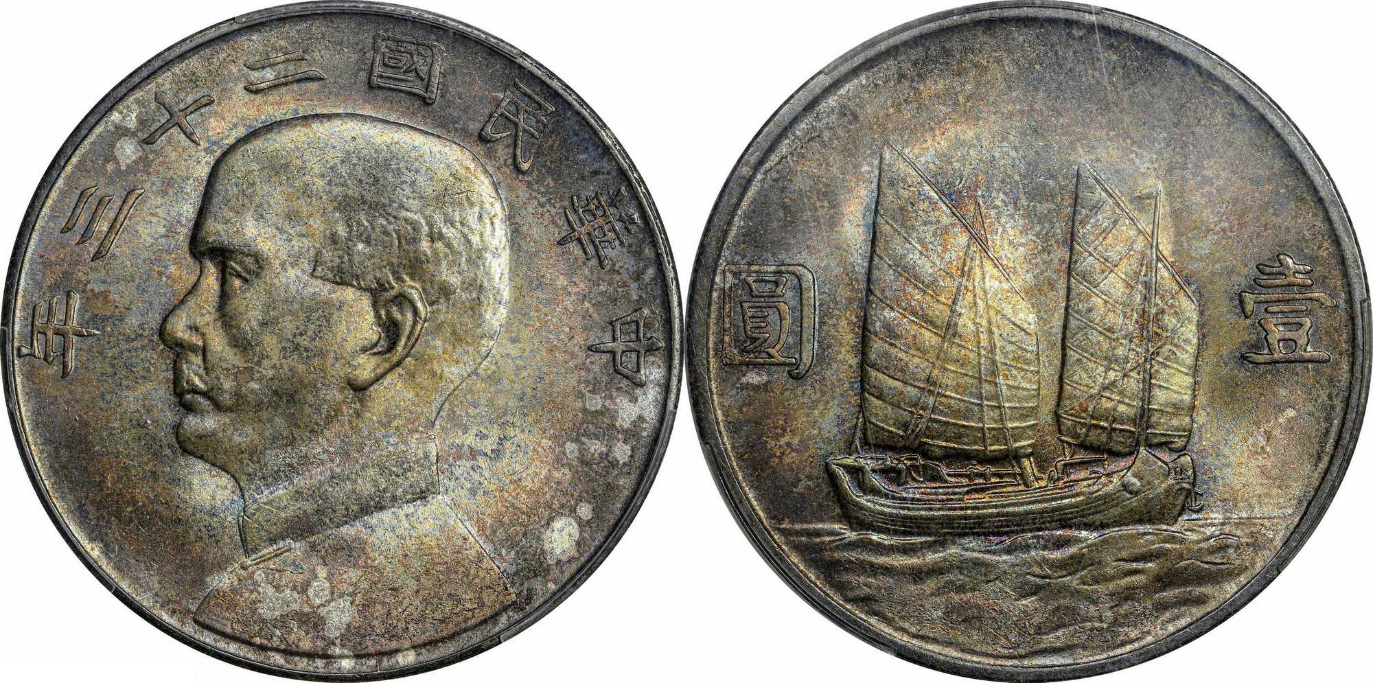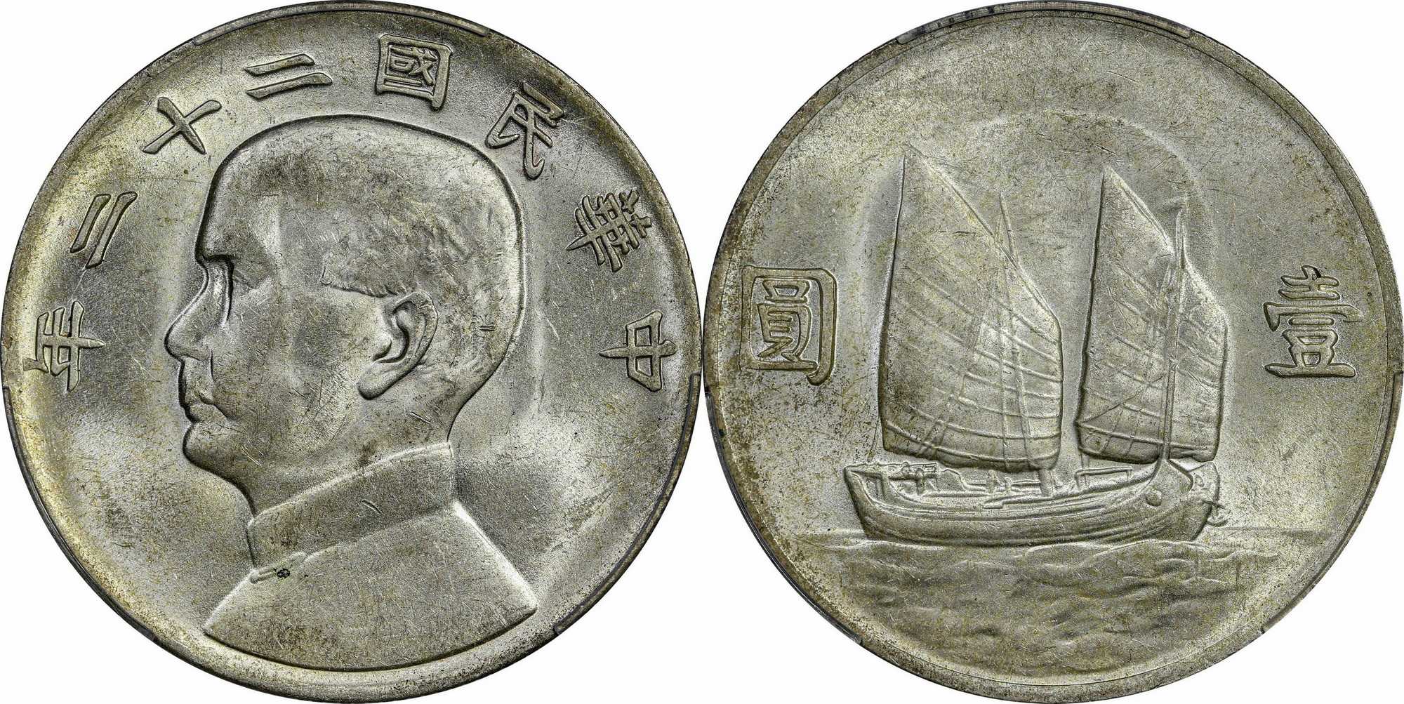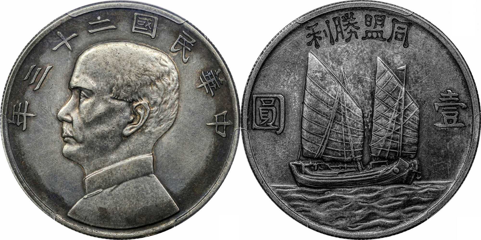 民国二十三年孙像帆船 壹圆银币 同盟胜利