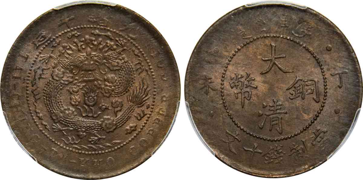 光绪年造大清铜币 丁未十文 四