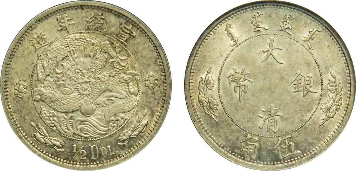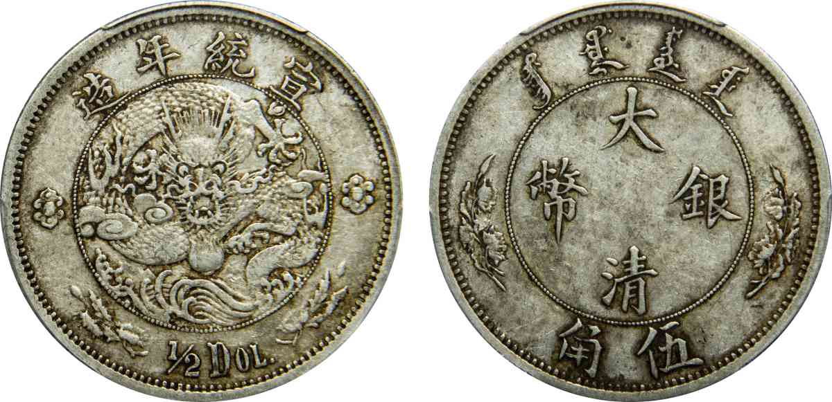 宣统二年大清银币 伍角 水龙