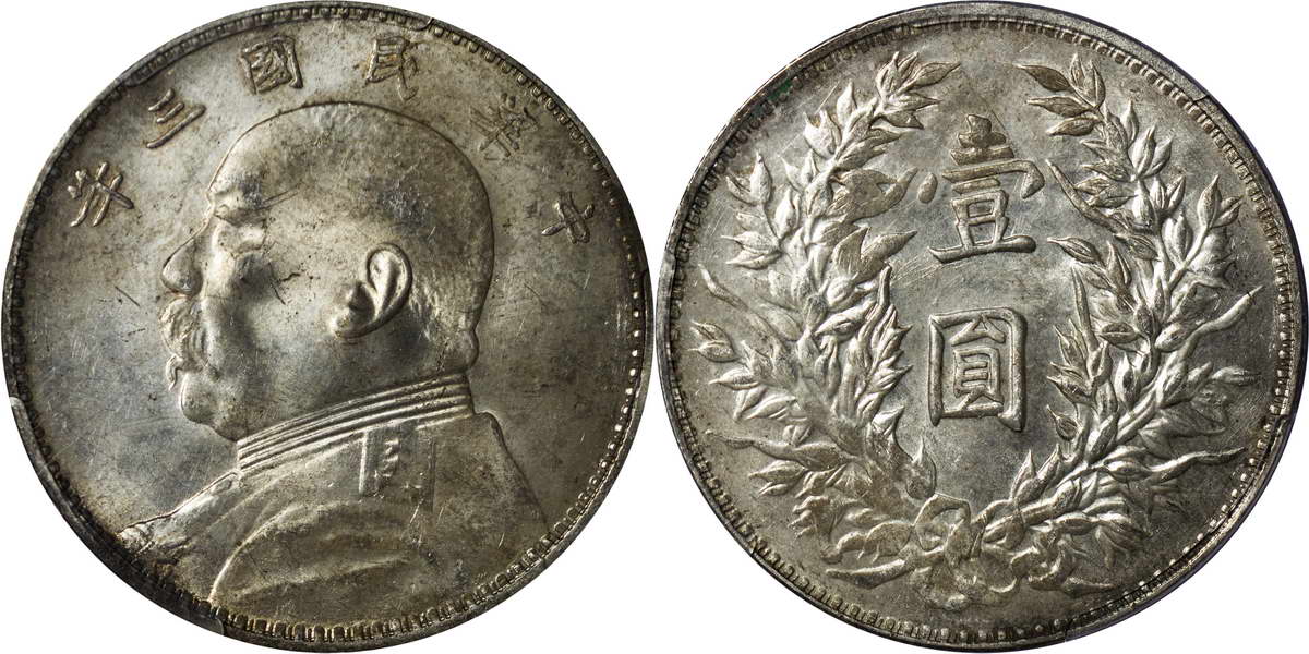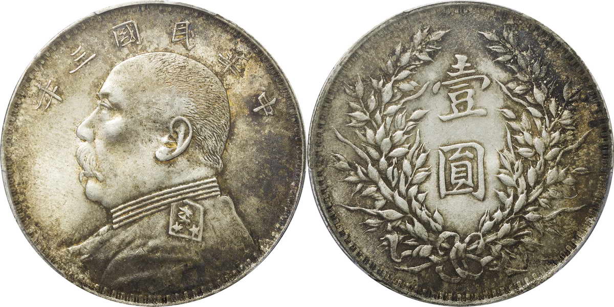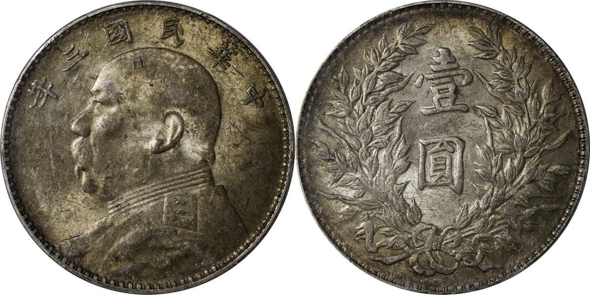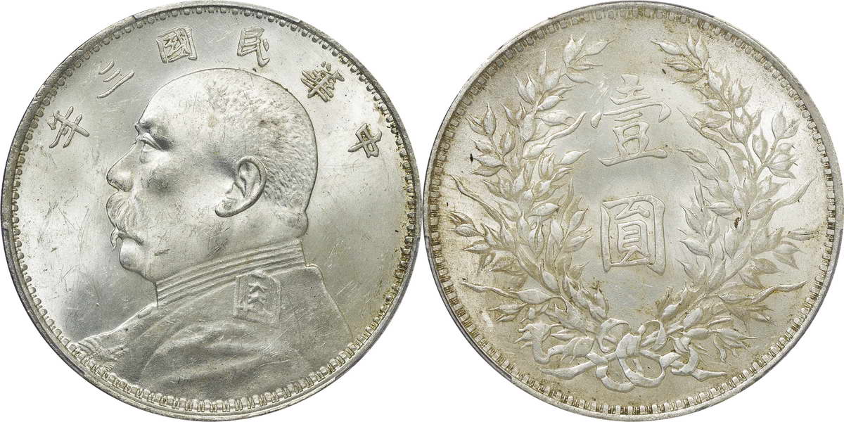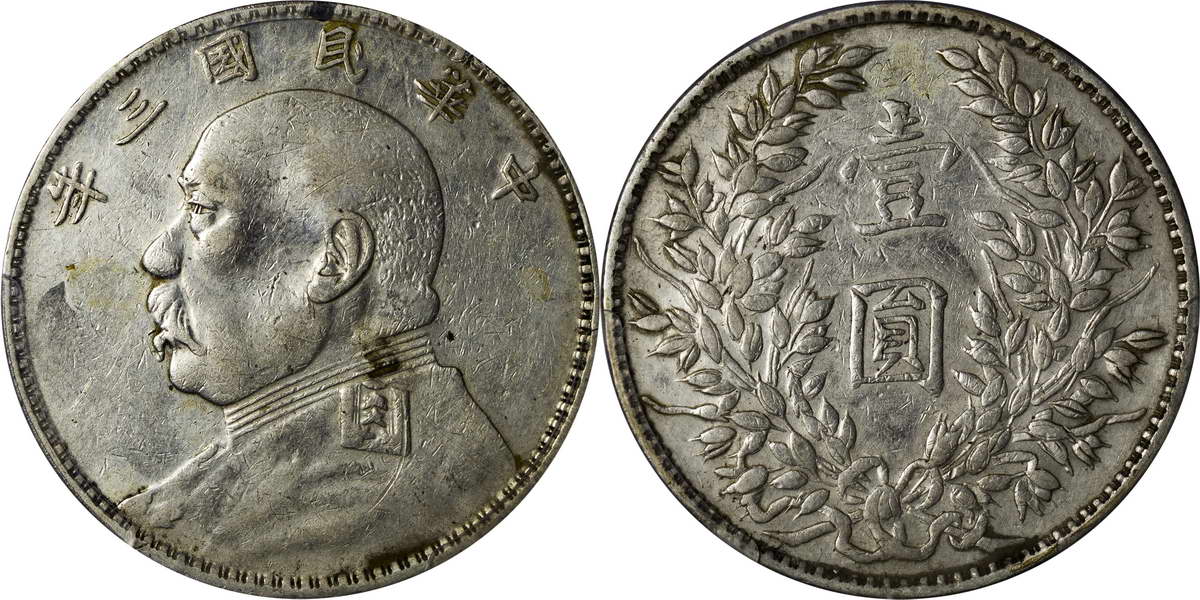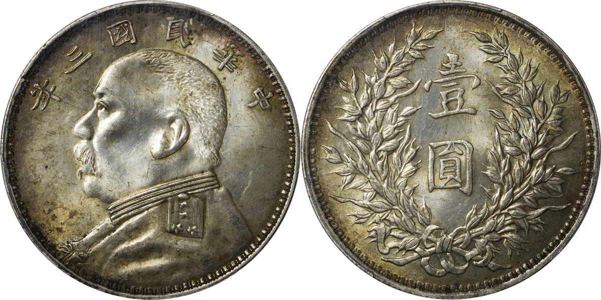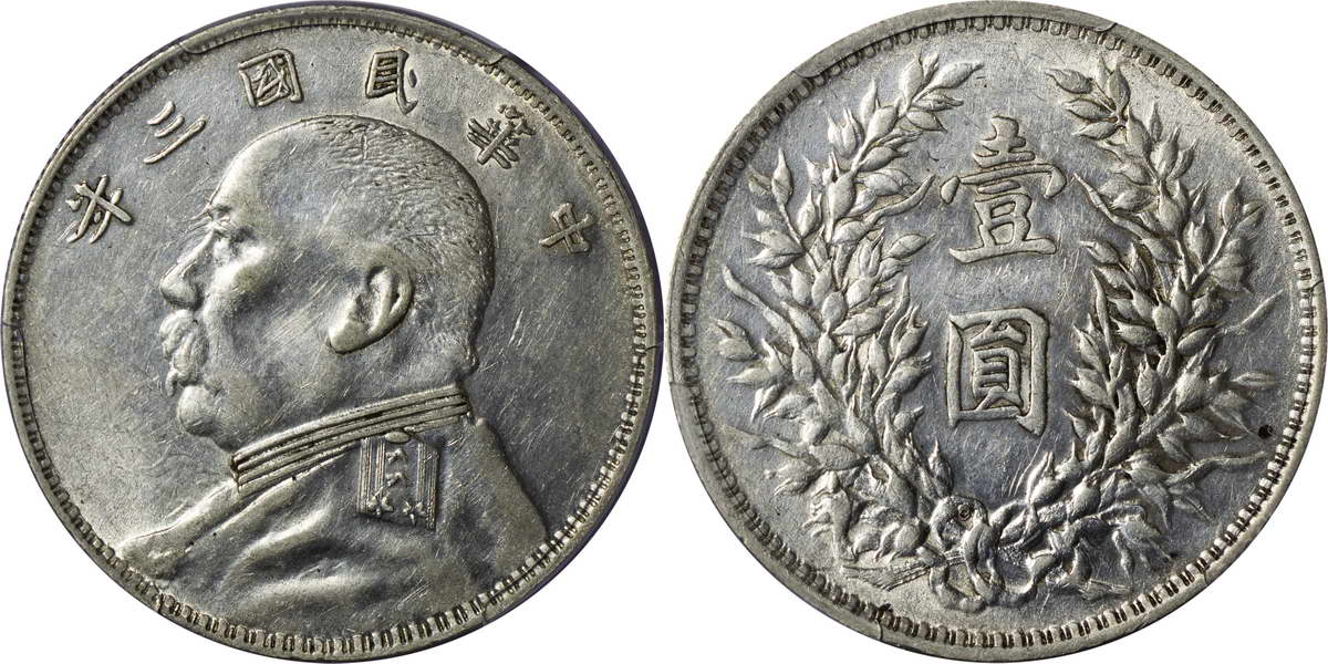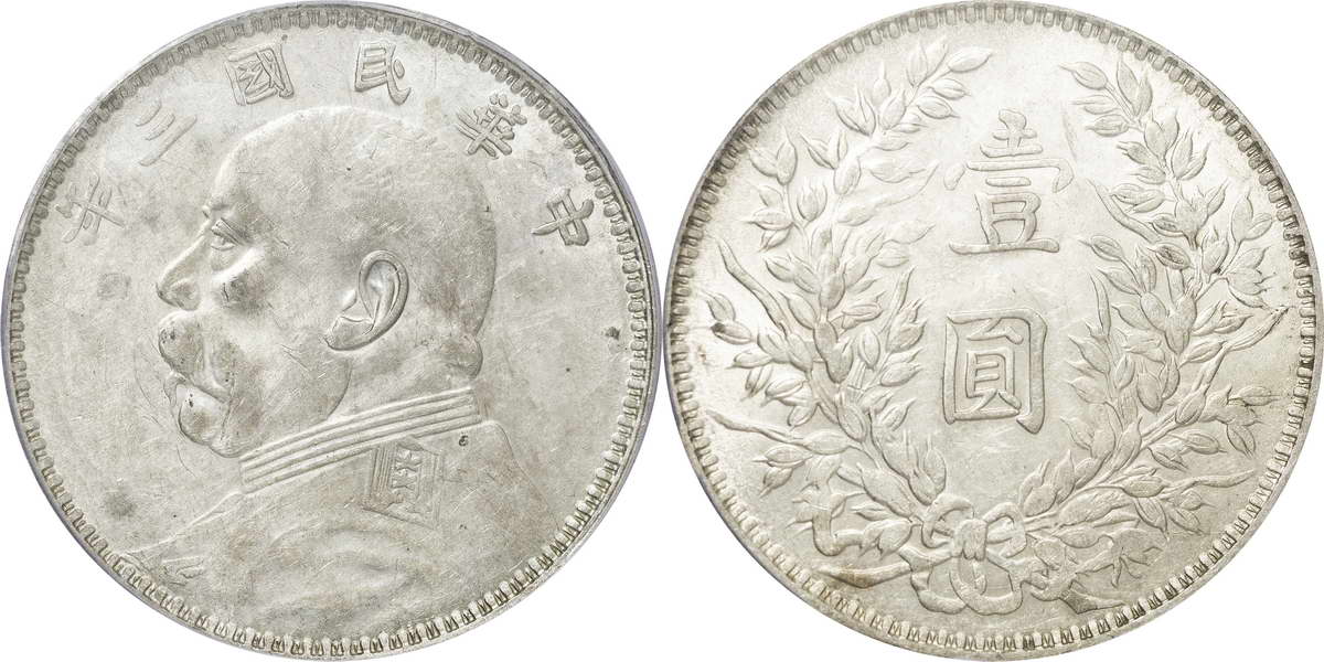 民国三年袁像银币 中圆 签字面