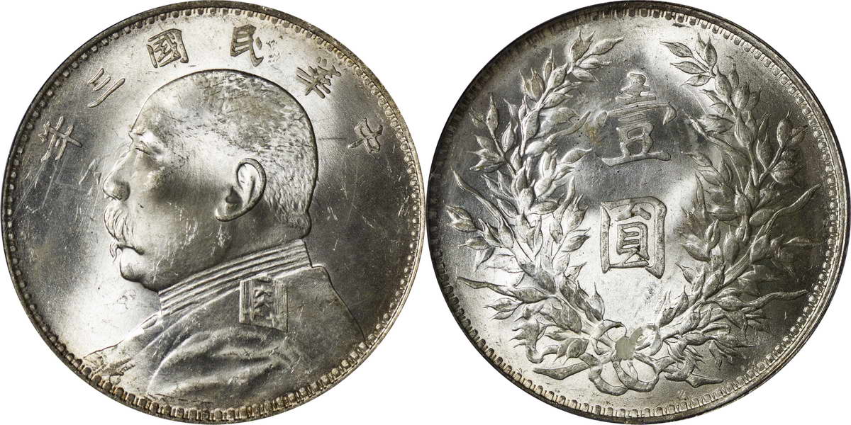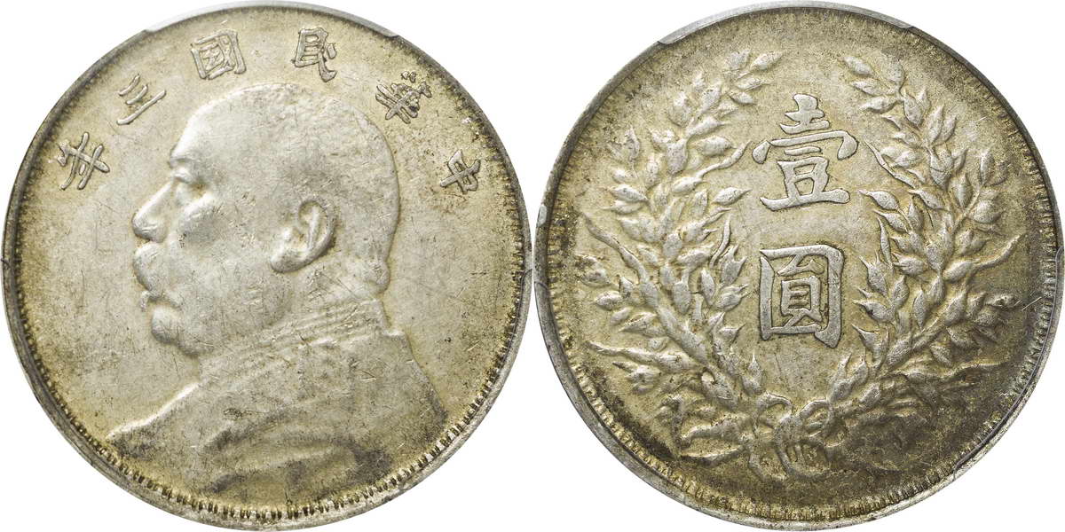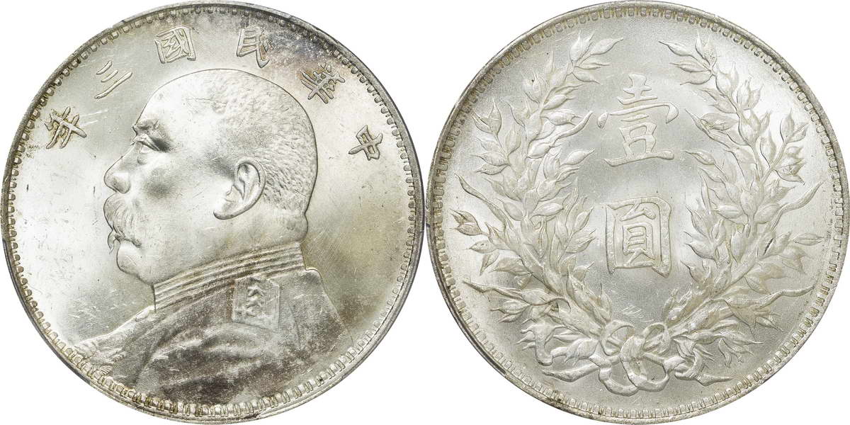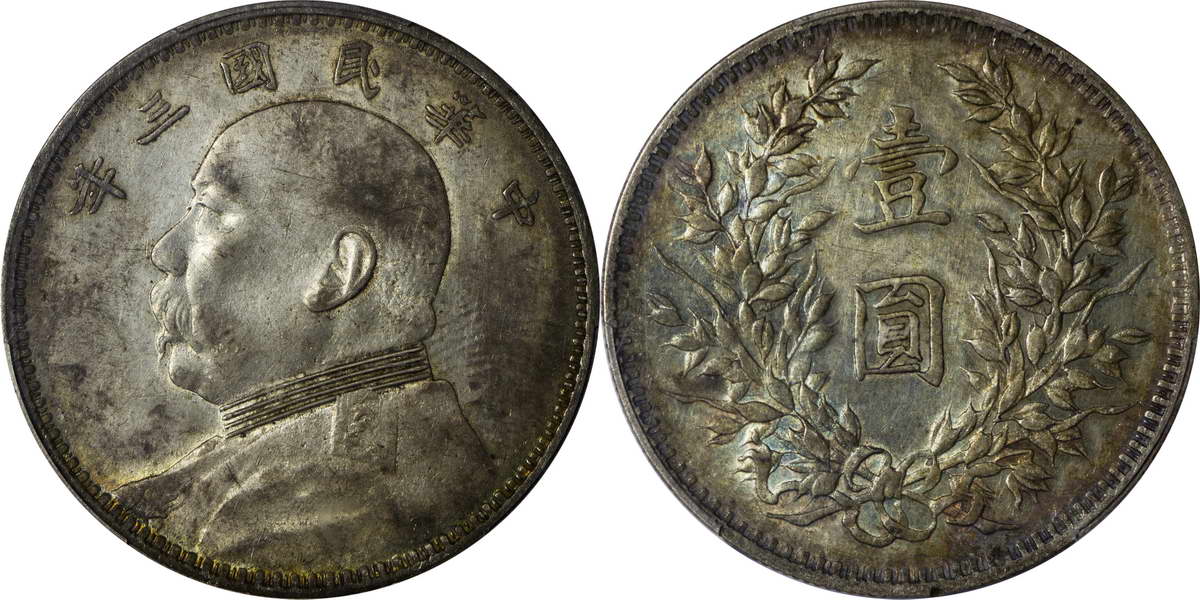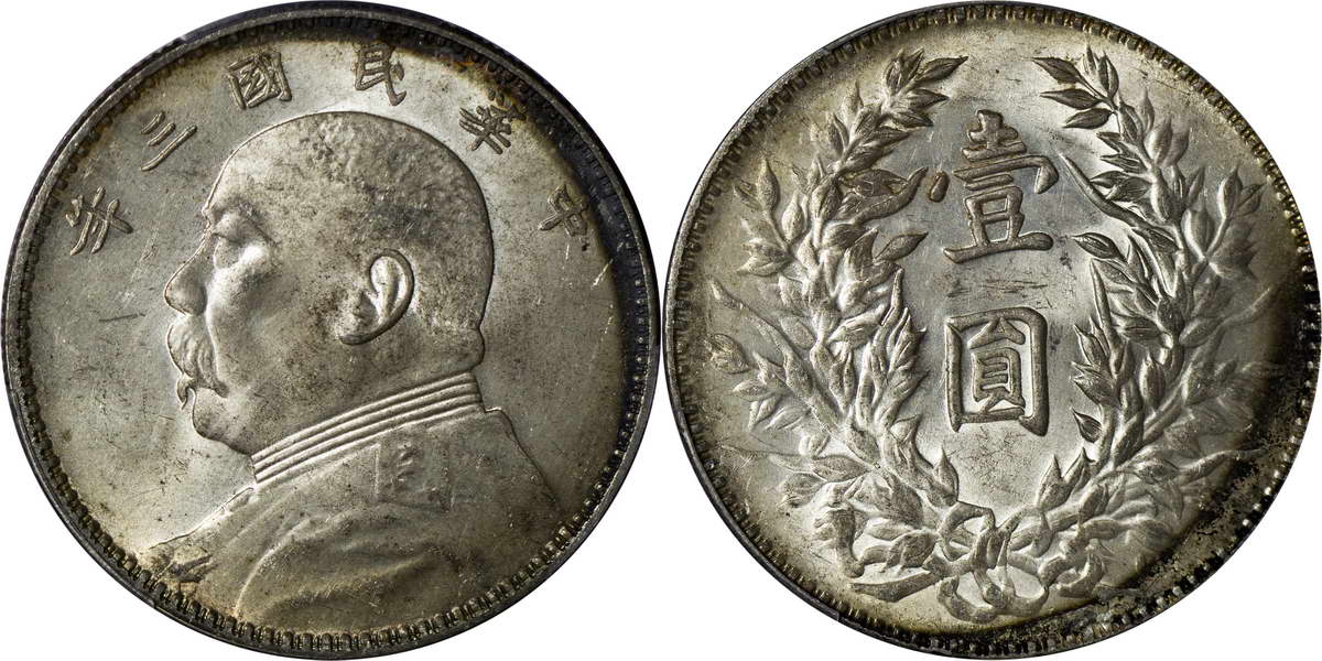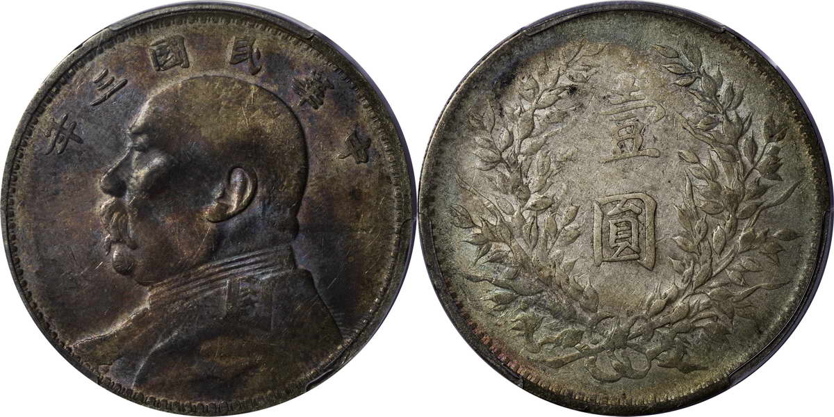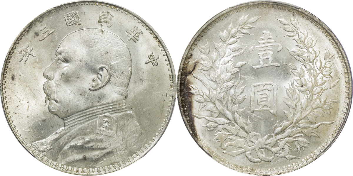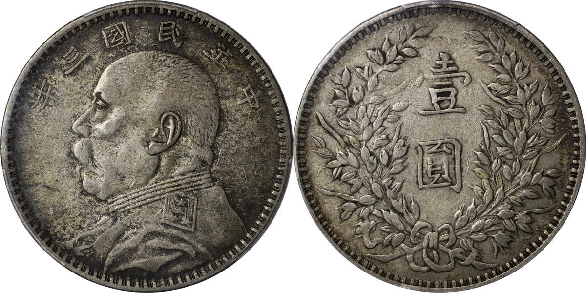 民国三年袁像银币 中圆 签字面