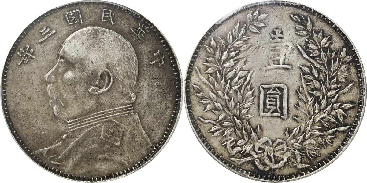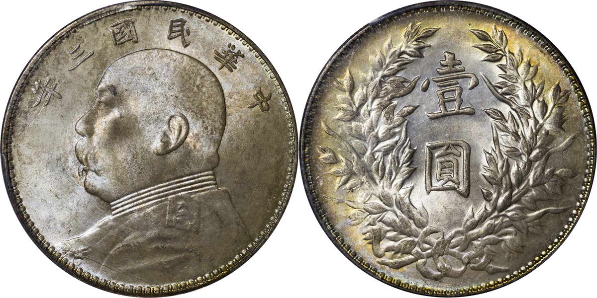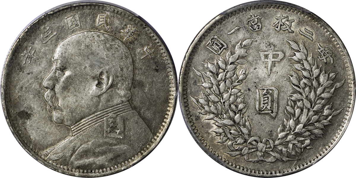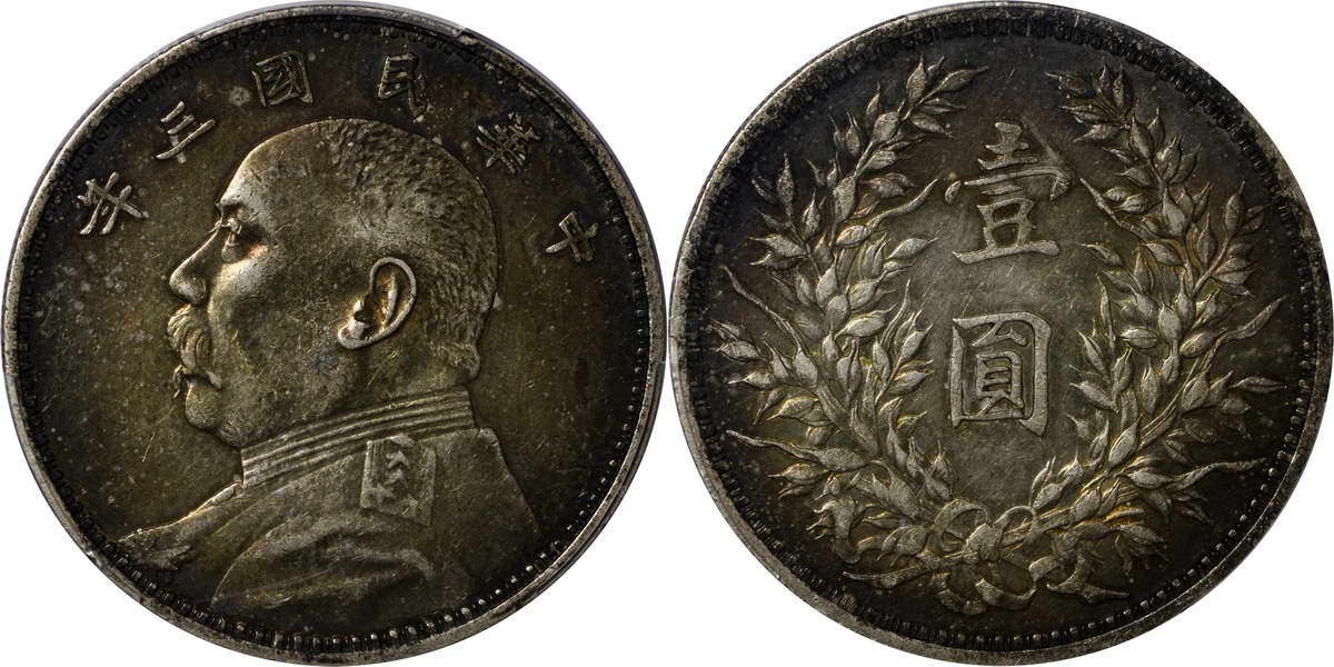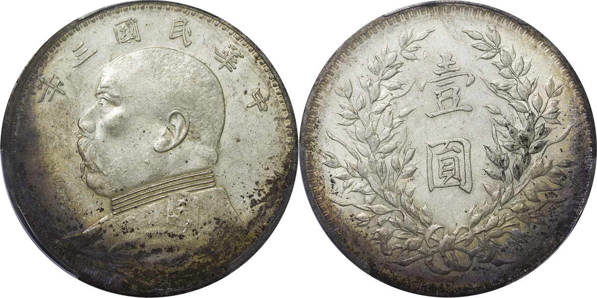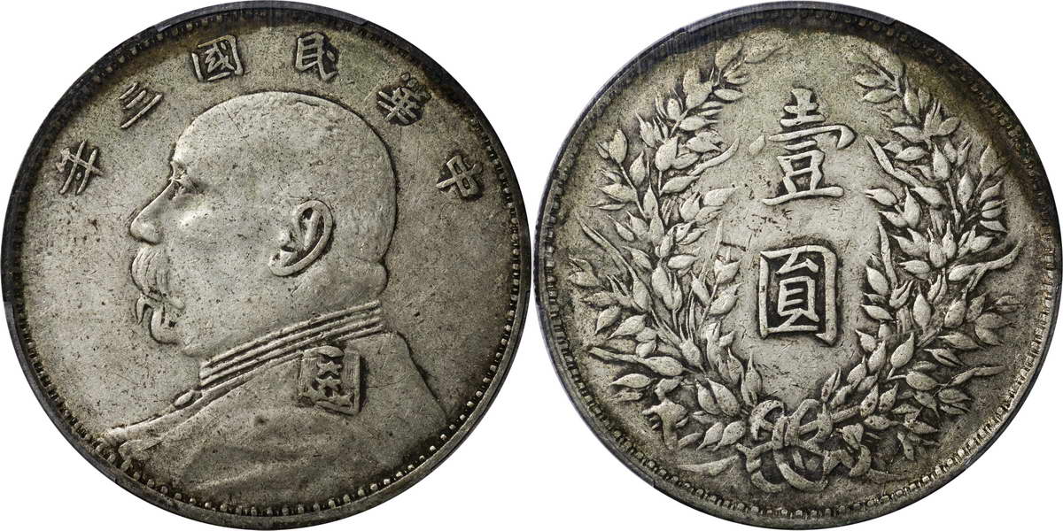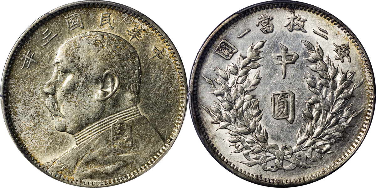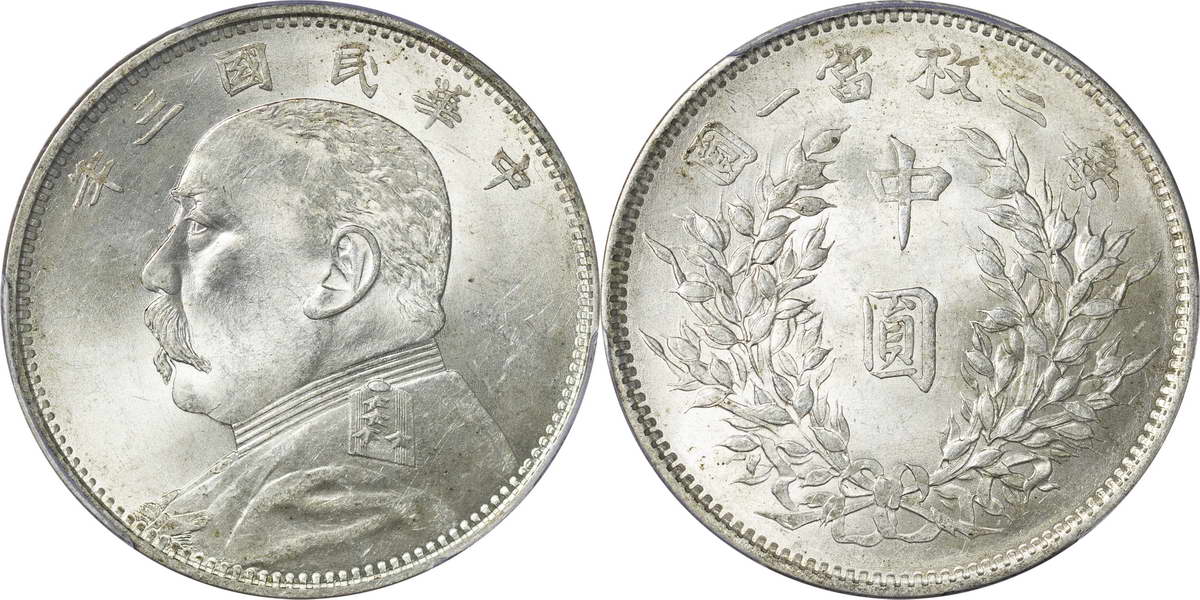 民国三年袁像银币 中圆 签字面
