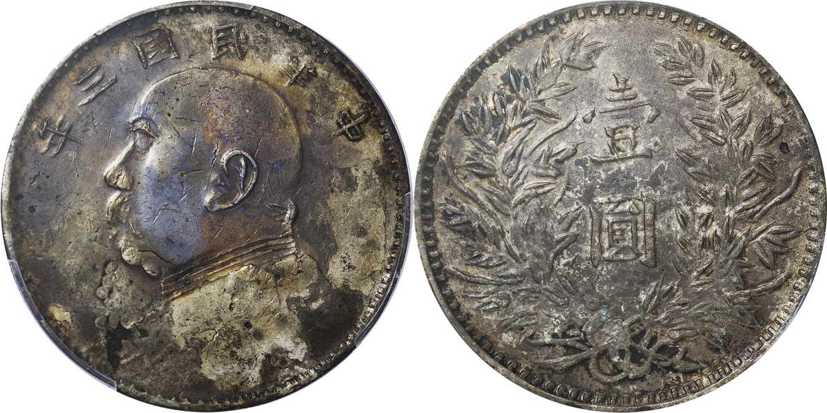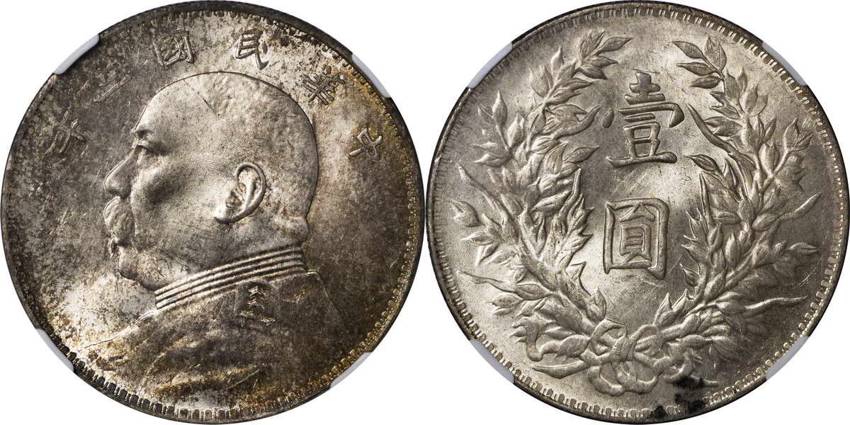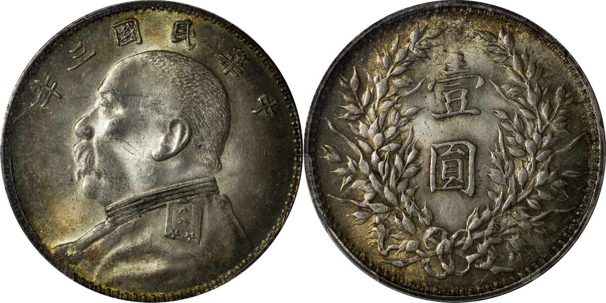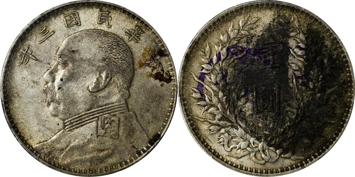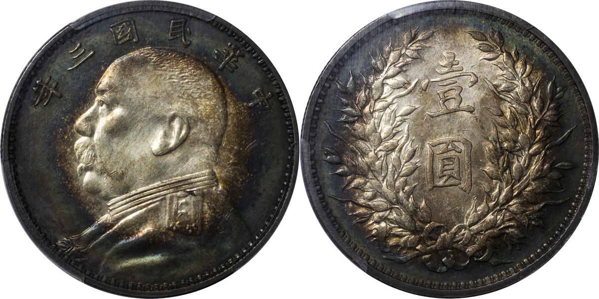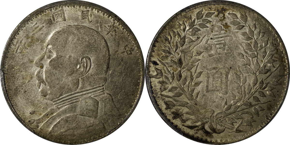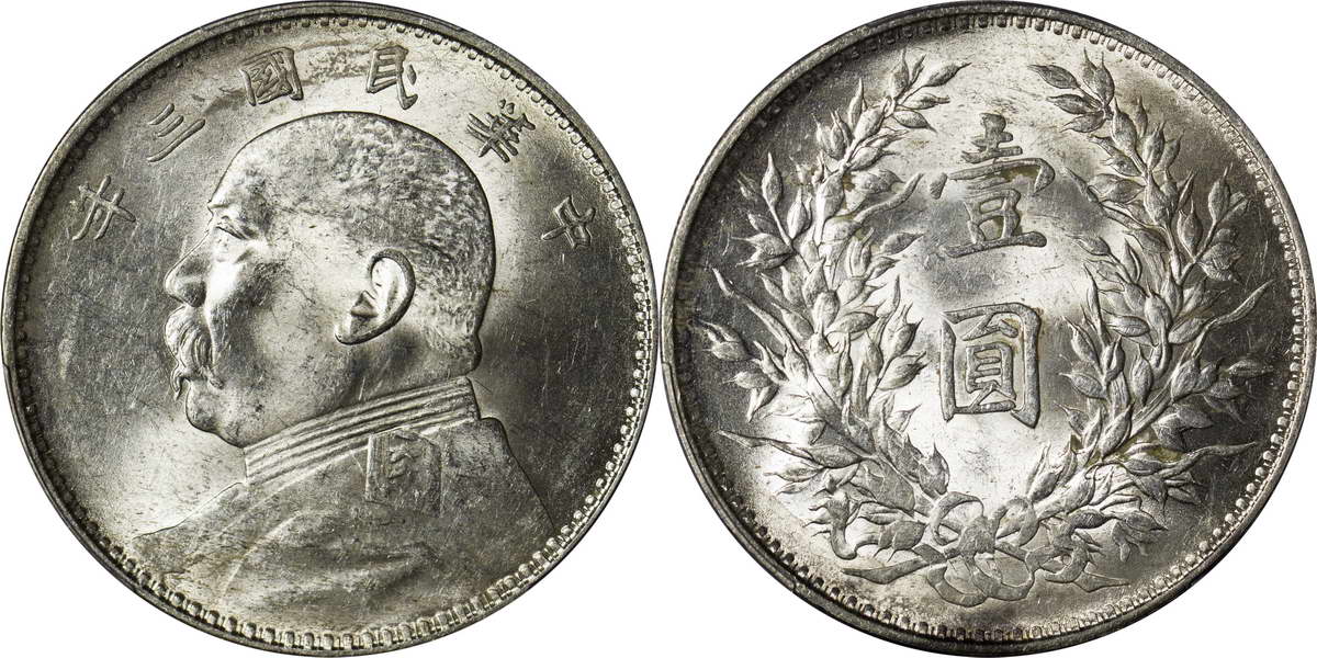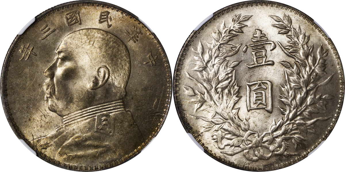 民国三年袁像银币 中圆 签字面