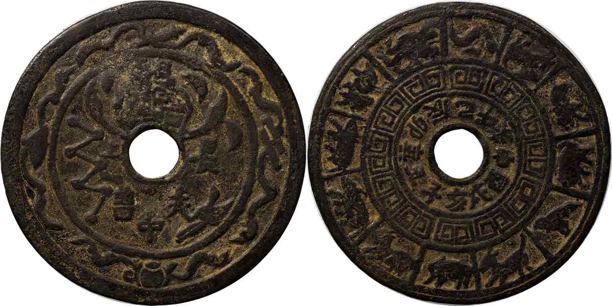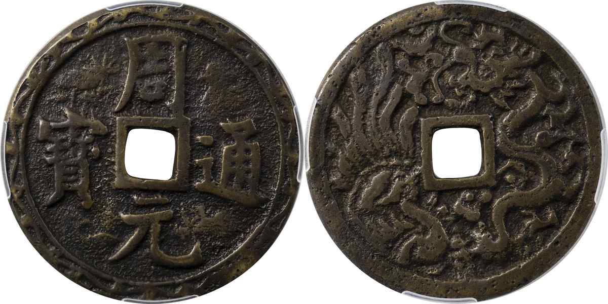 近代 周元通宝 背龙凤 邻国花