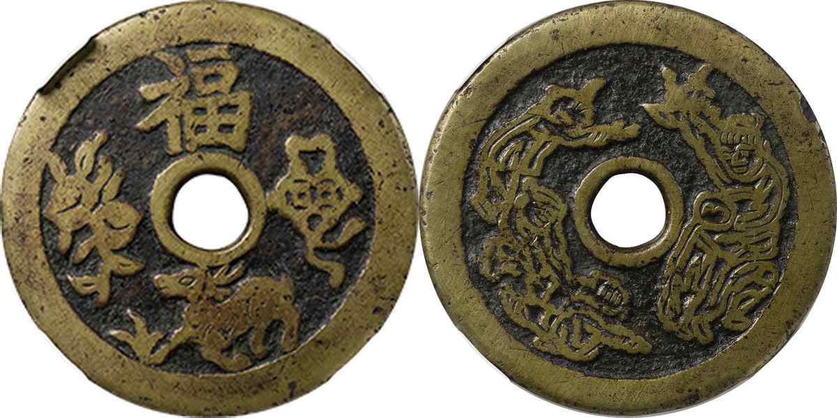 清 福禄双全 背五子夺魁 花钱