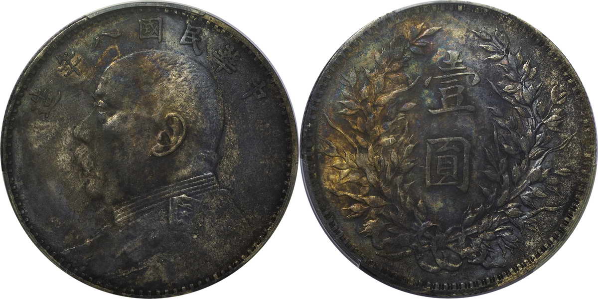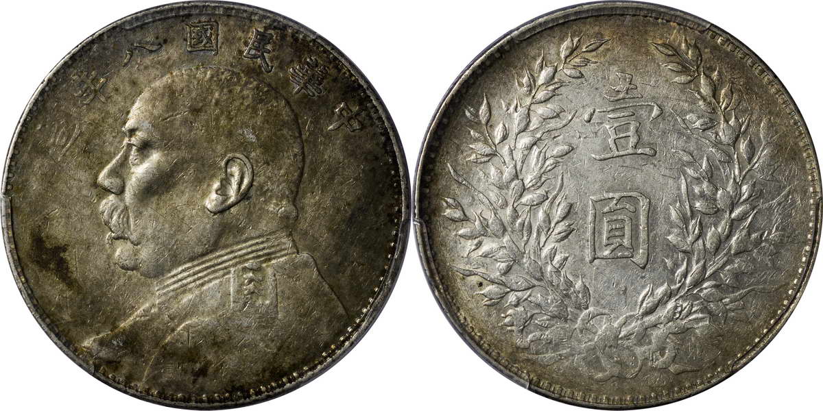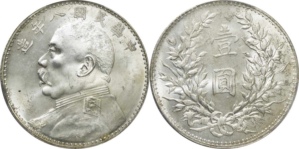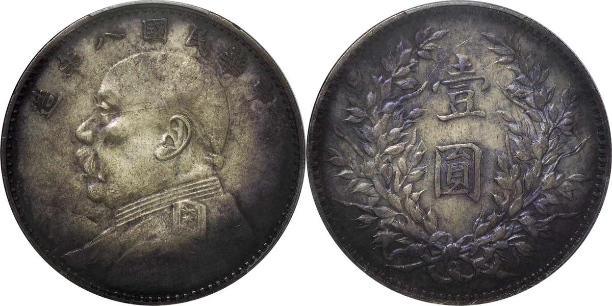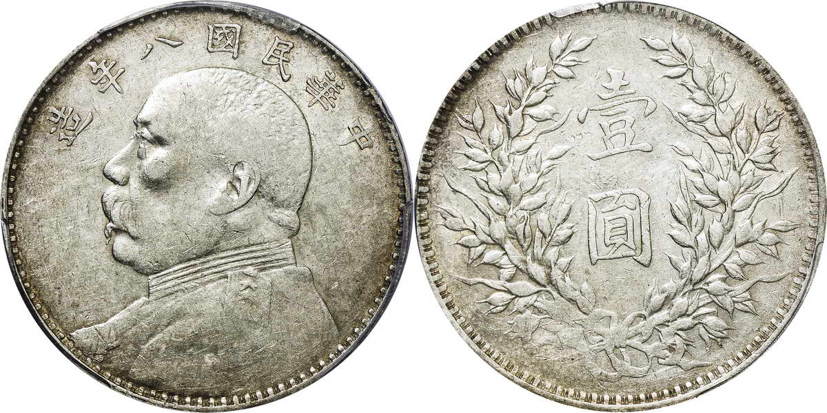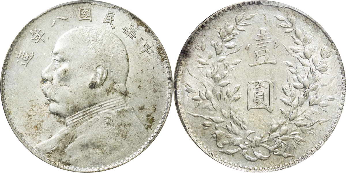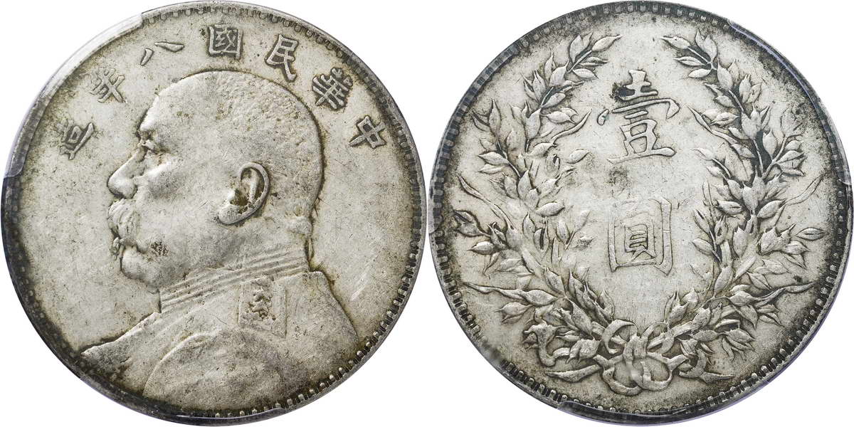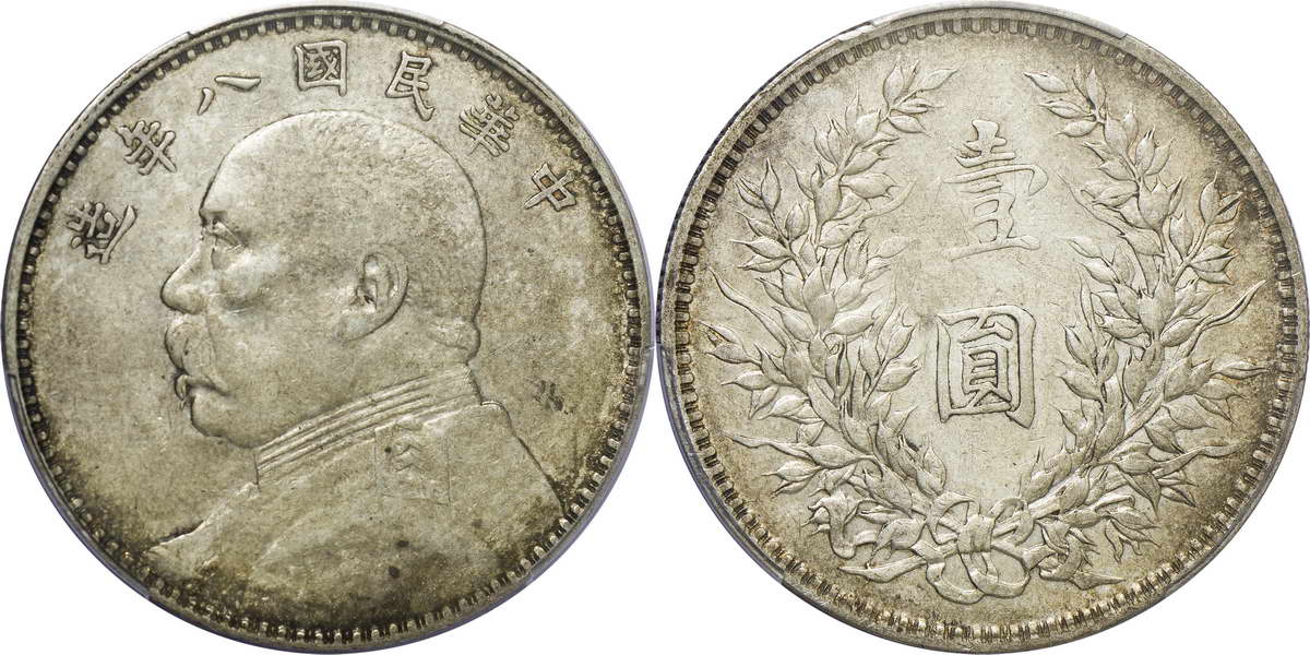 民国八年袁像银币 壹圆 竖点年