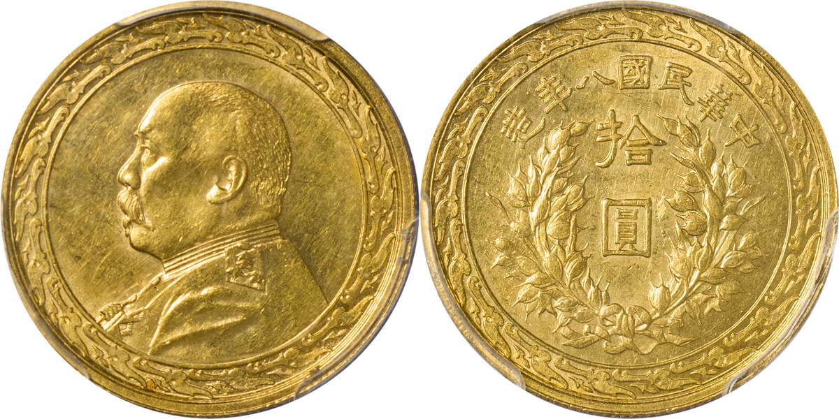 民国八年袁像金币 拾圆 背嘉禾