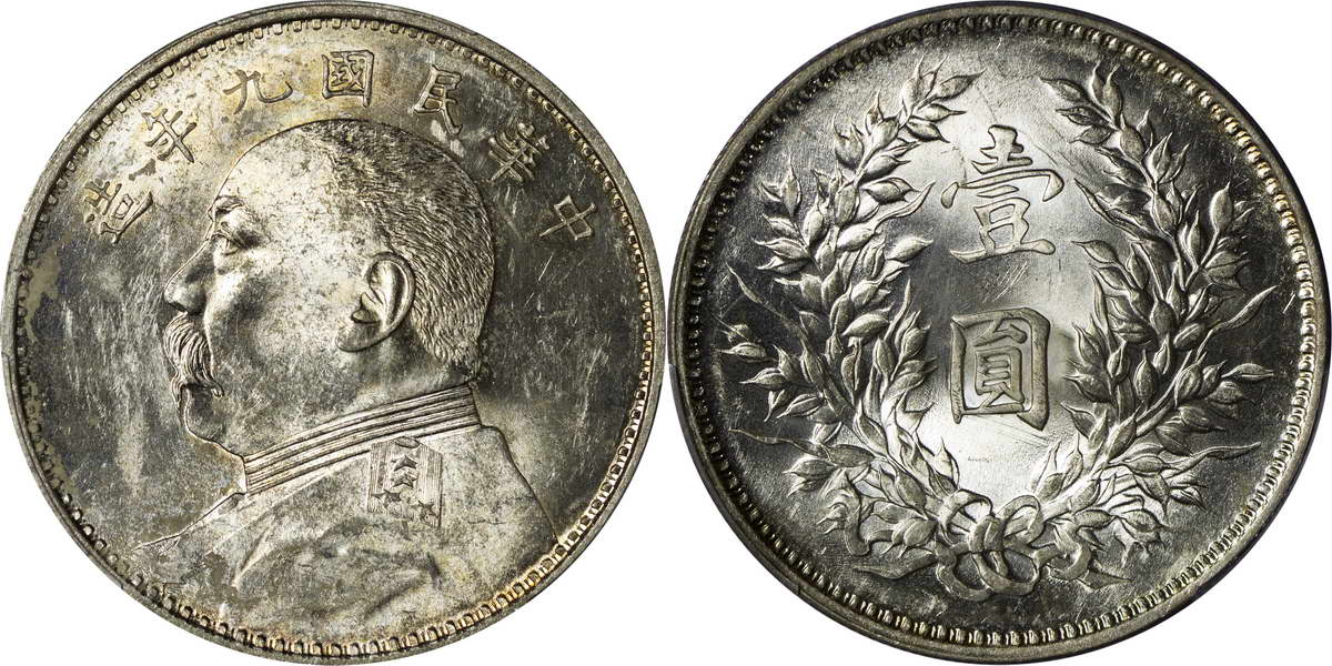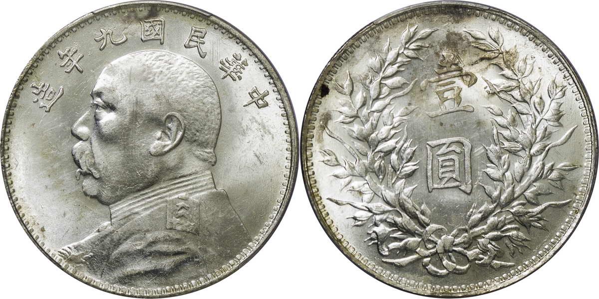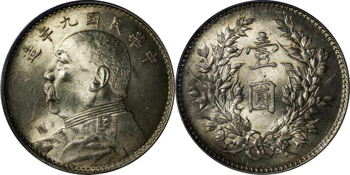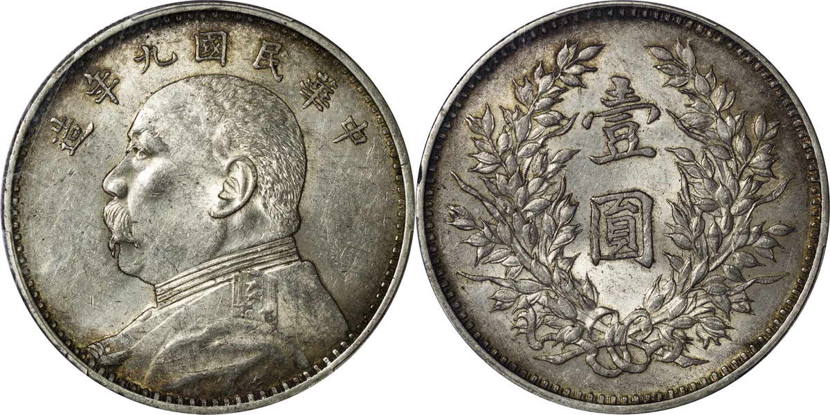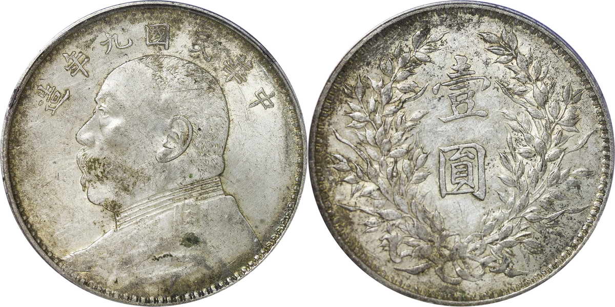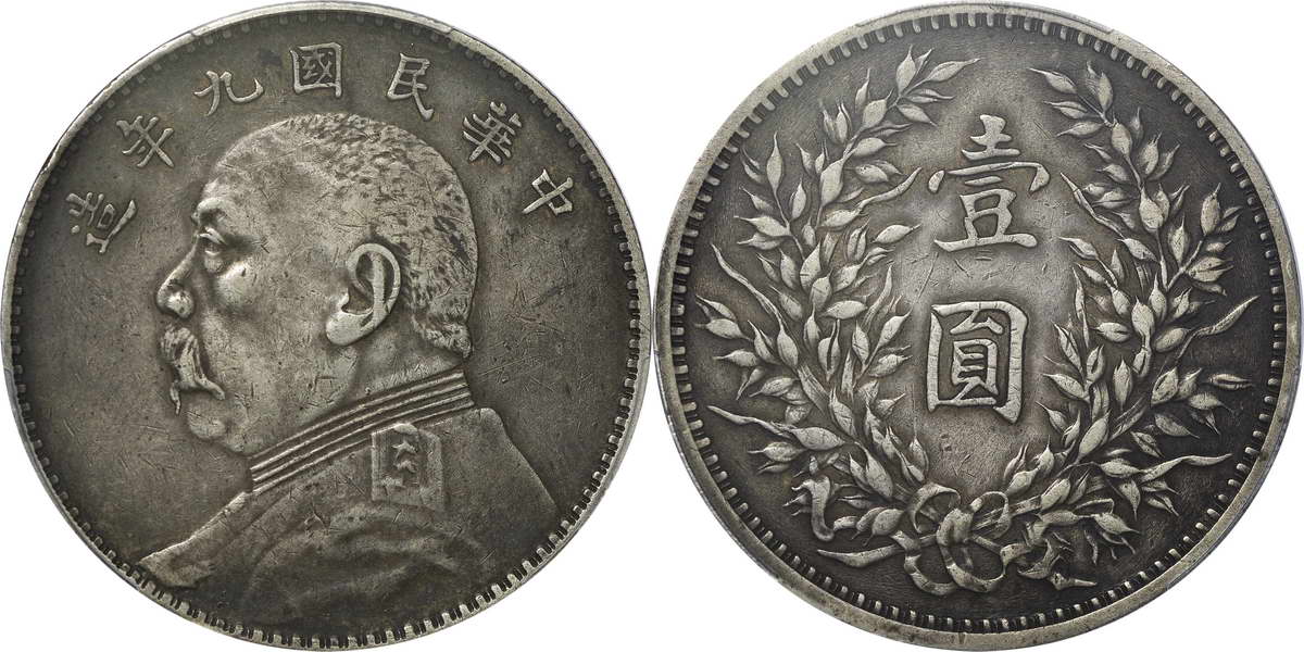 民国九年袁像银币 壹圆 粗发版