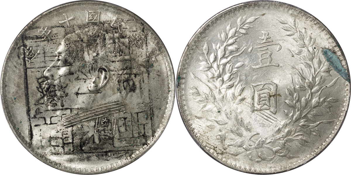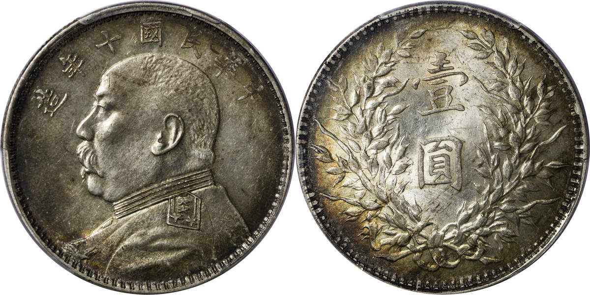 民国十年袁像银币 壹圆 八年背