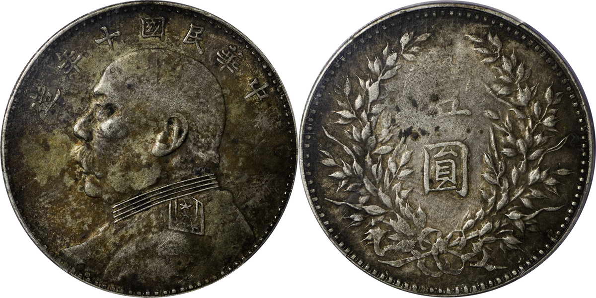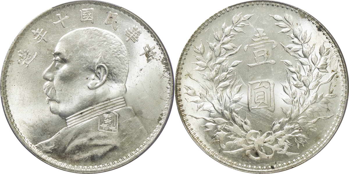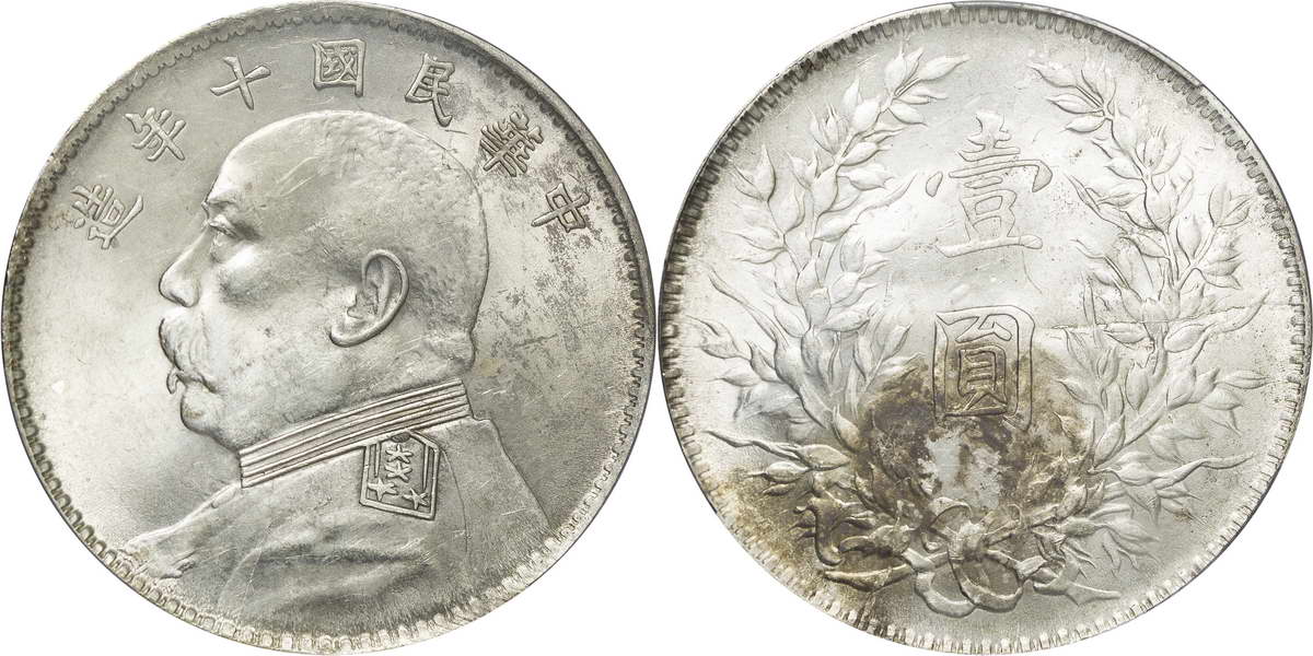 民国十年袁像银币 壹圆 竖点年
