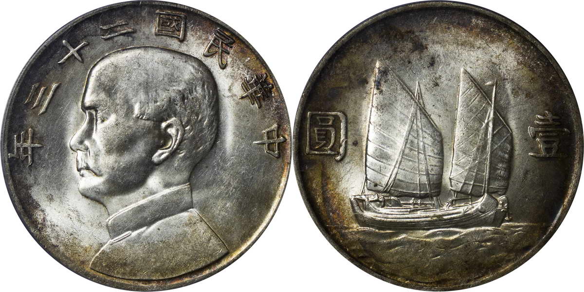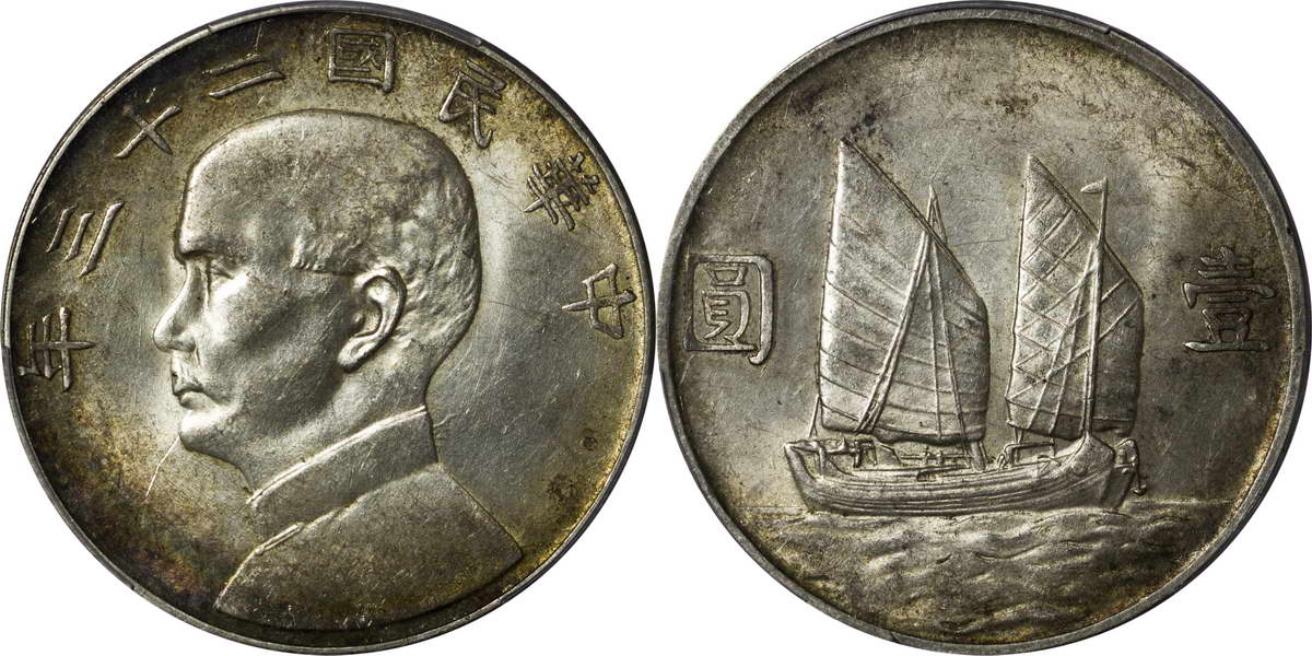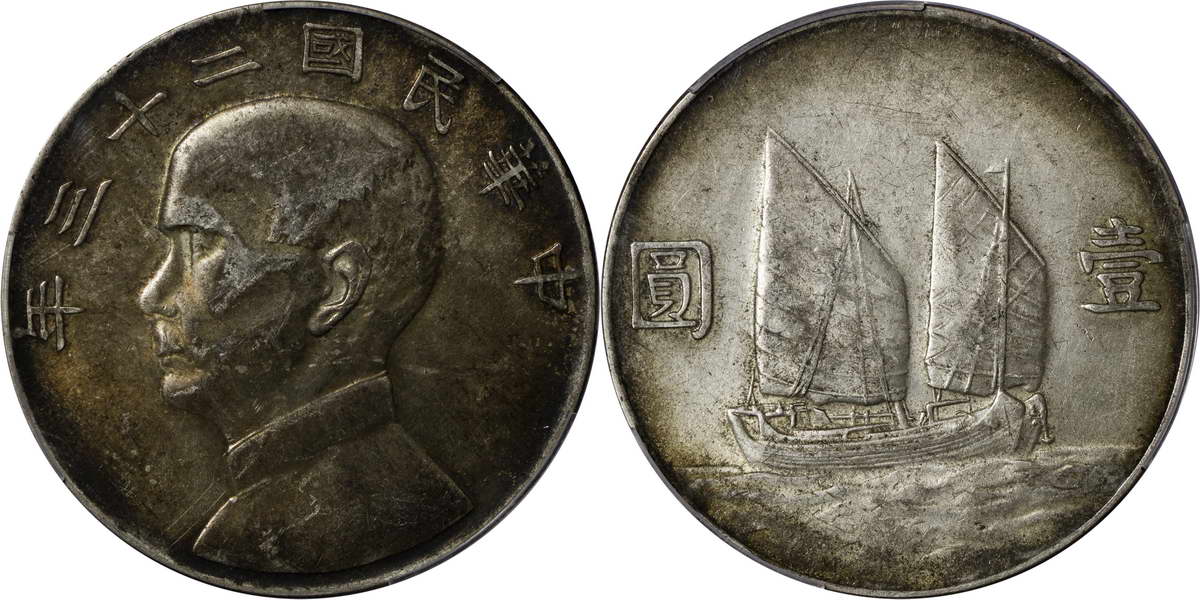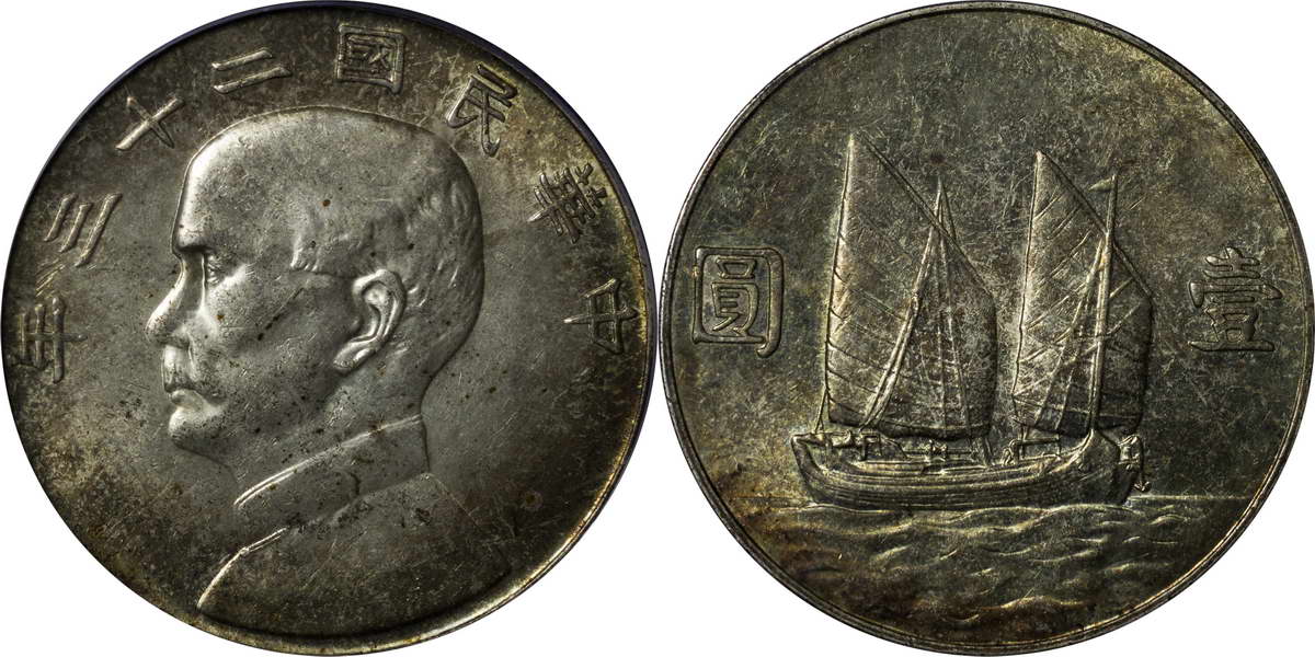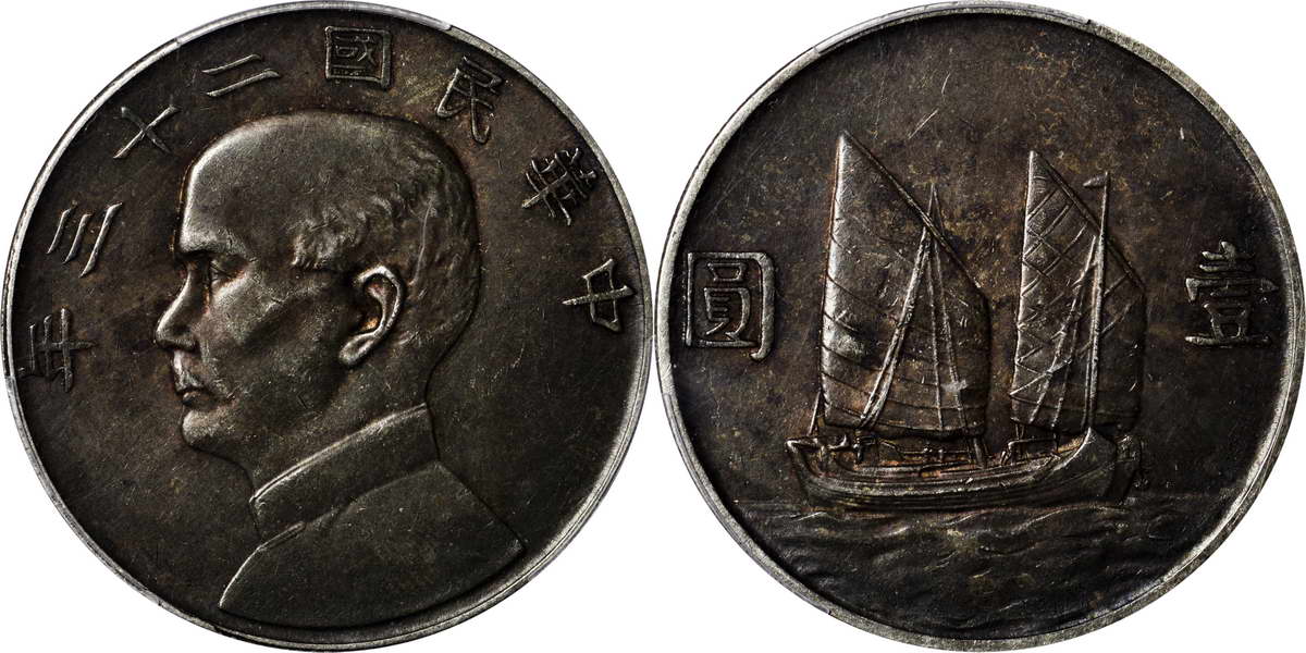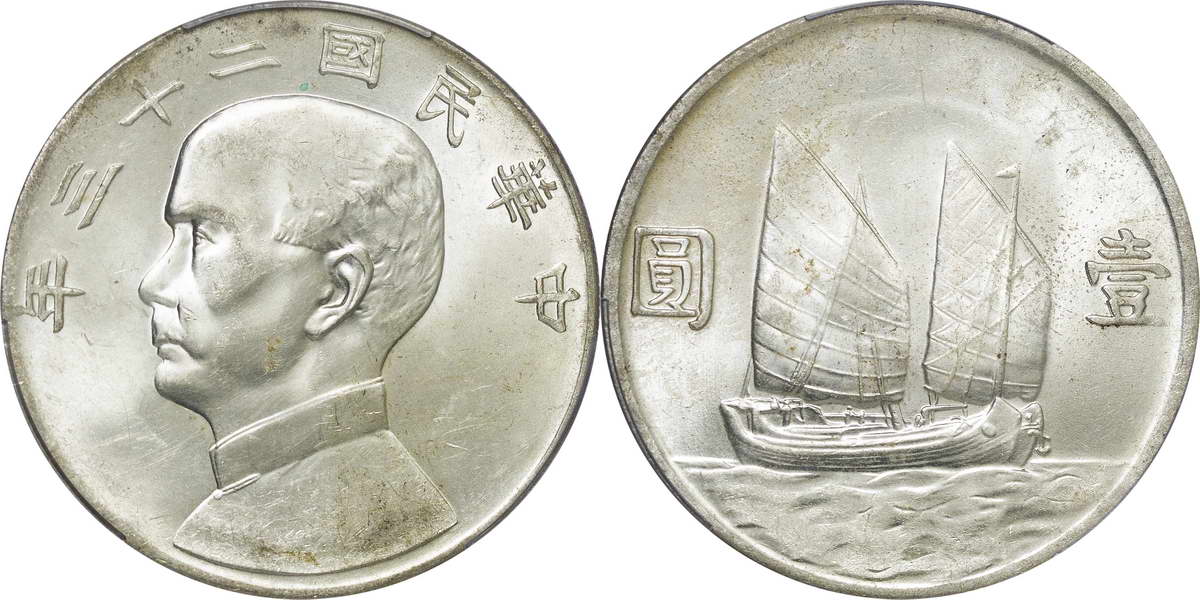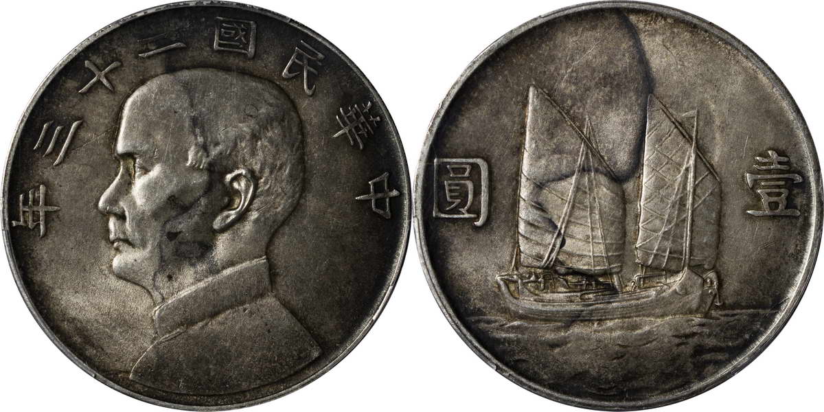 民国二十三年孙像帆船 壹圆