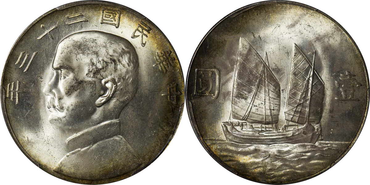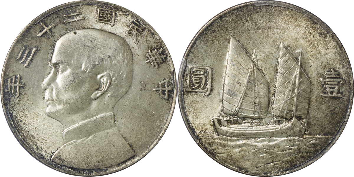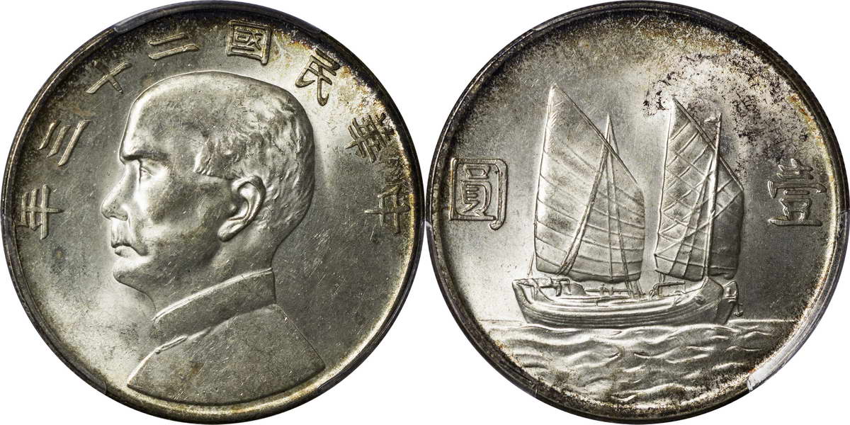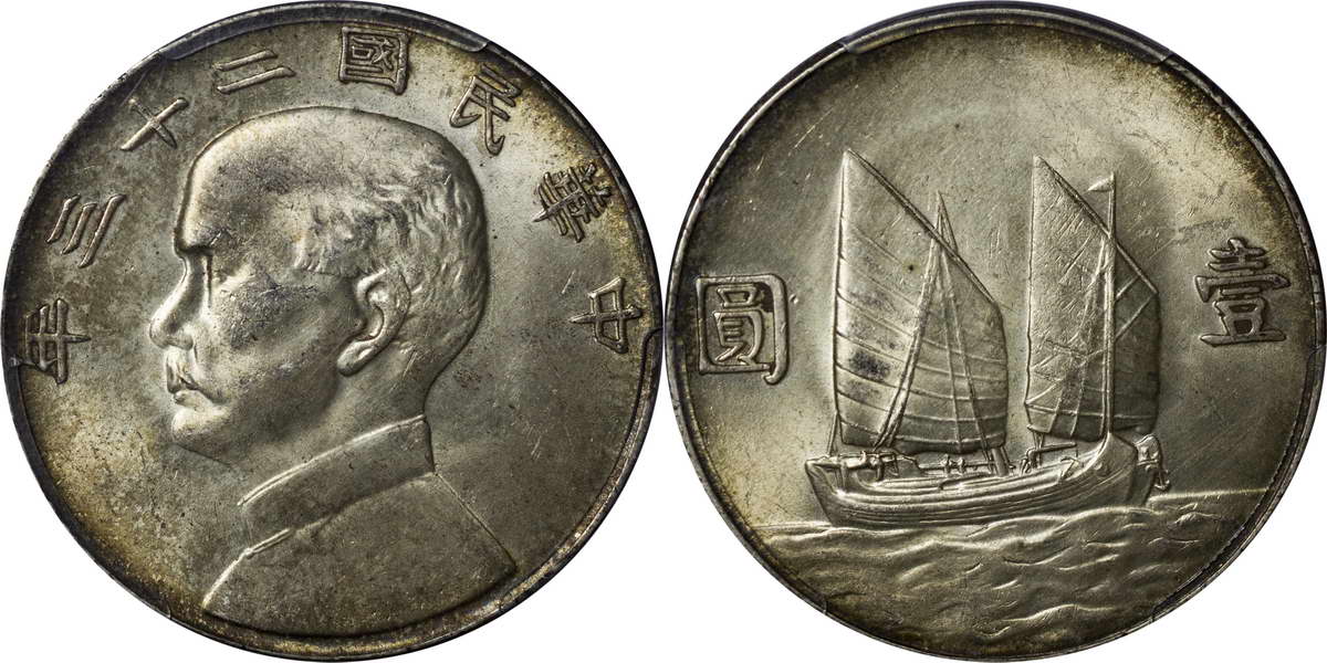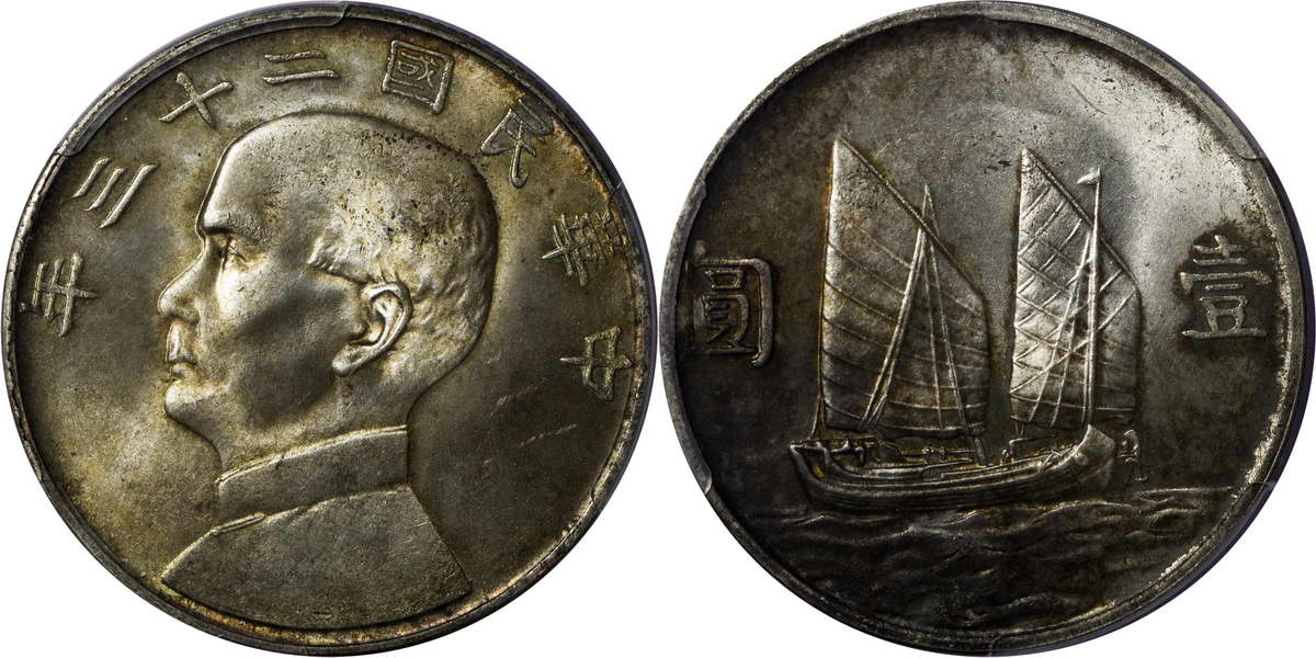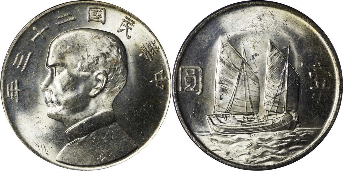 民国二十三年孙像帆船 壹圆