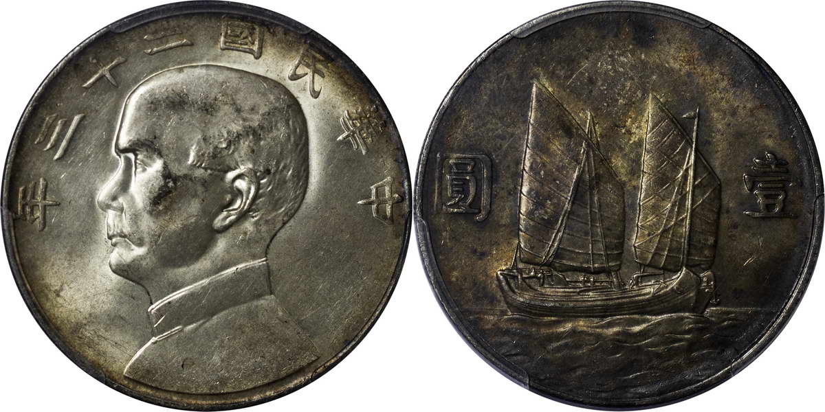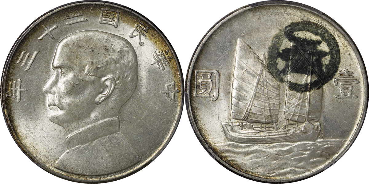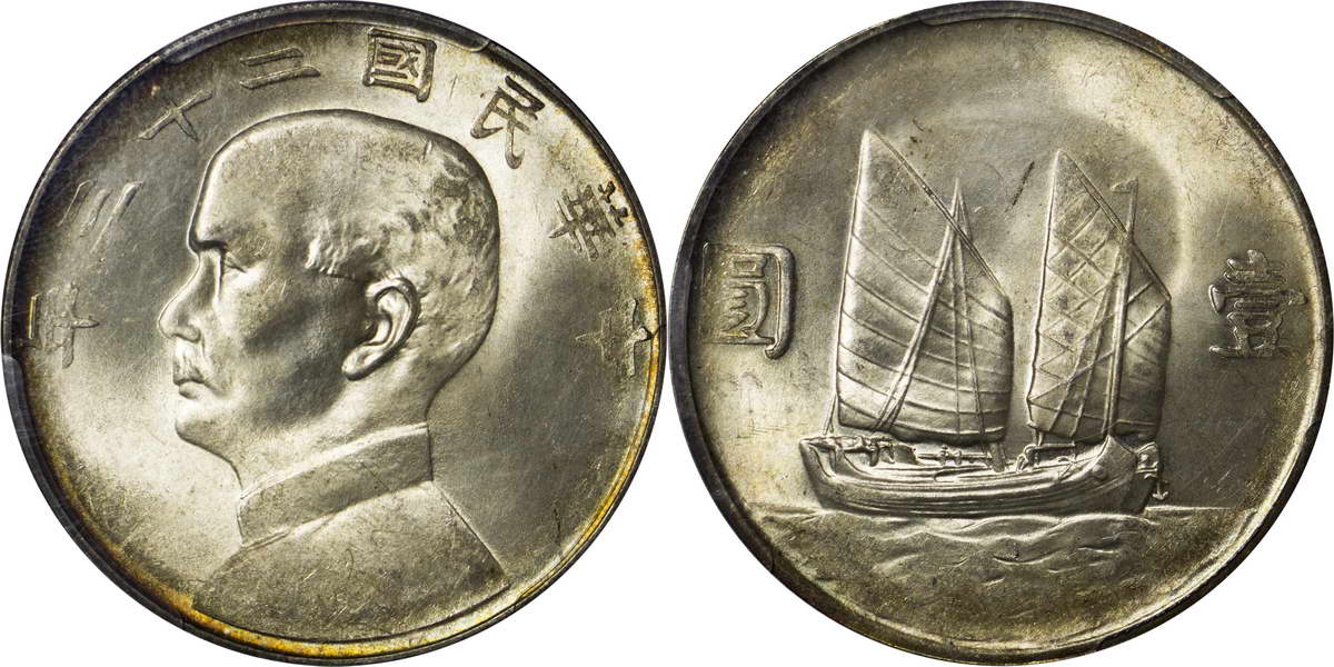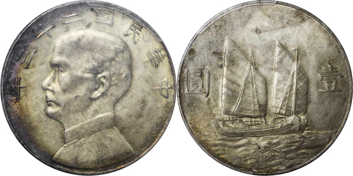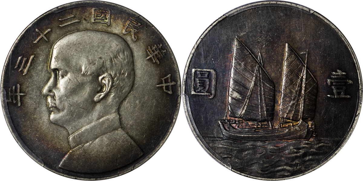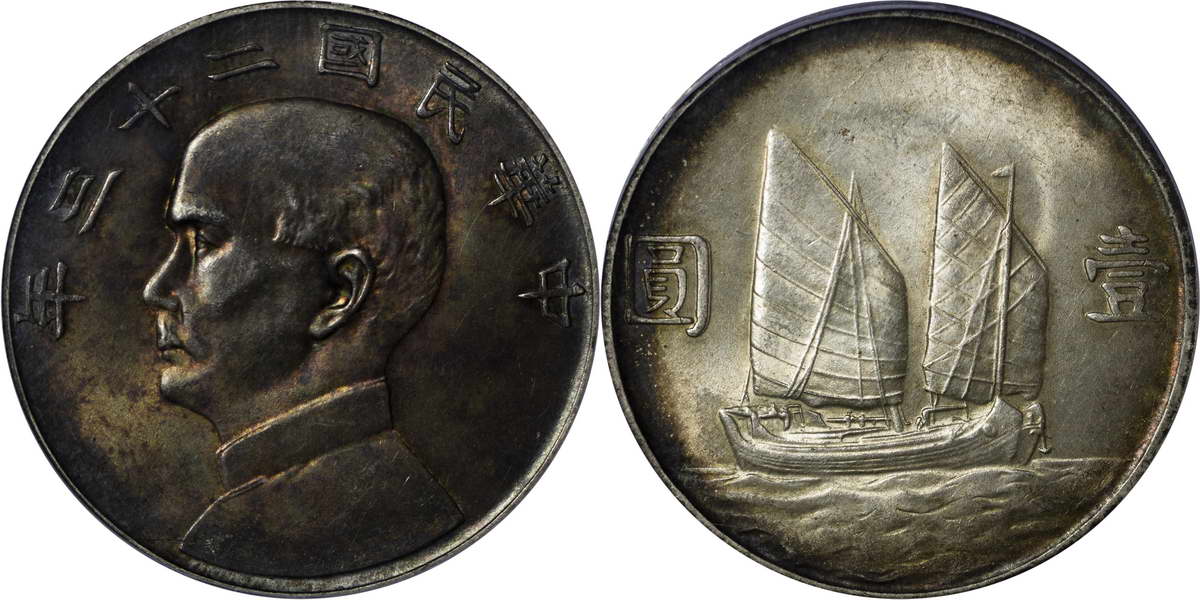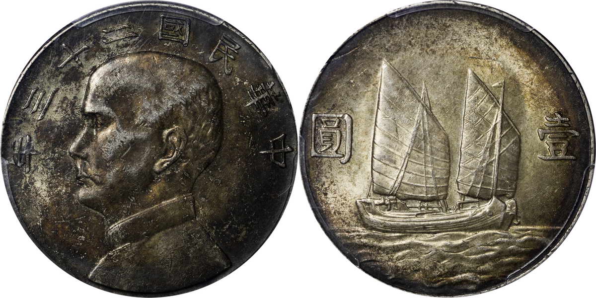 民国二十三年孙像帆船 壹圆