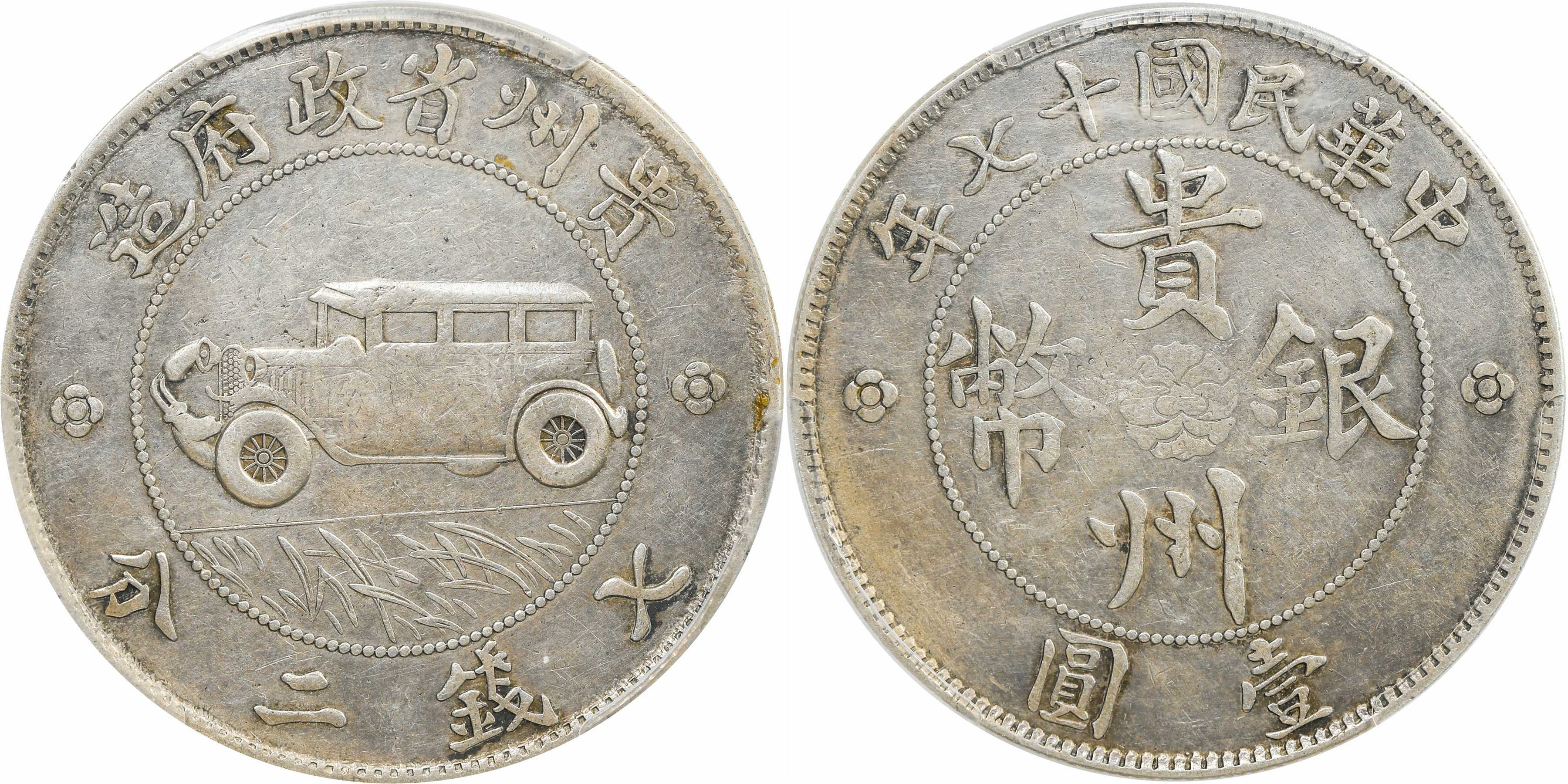 民国十七年贵州汽车 壹圆银币