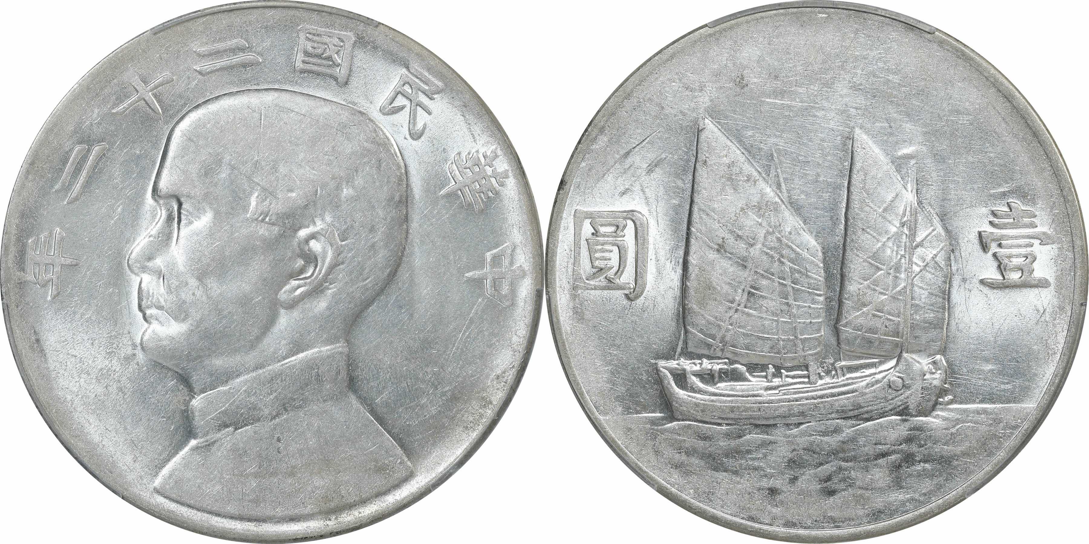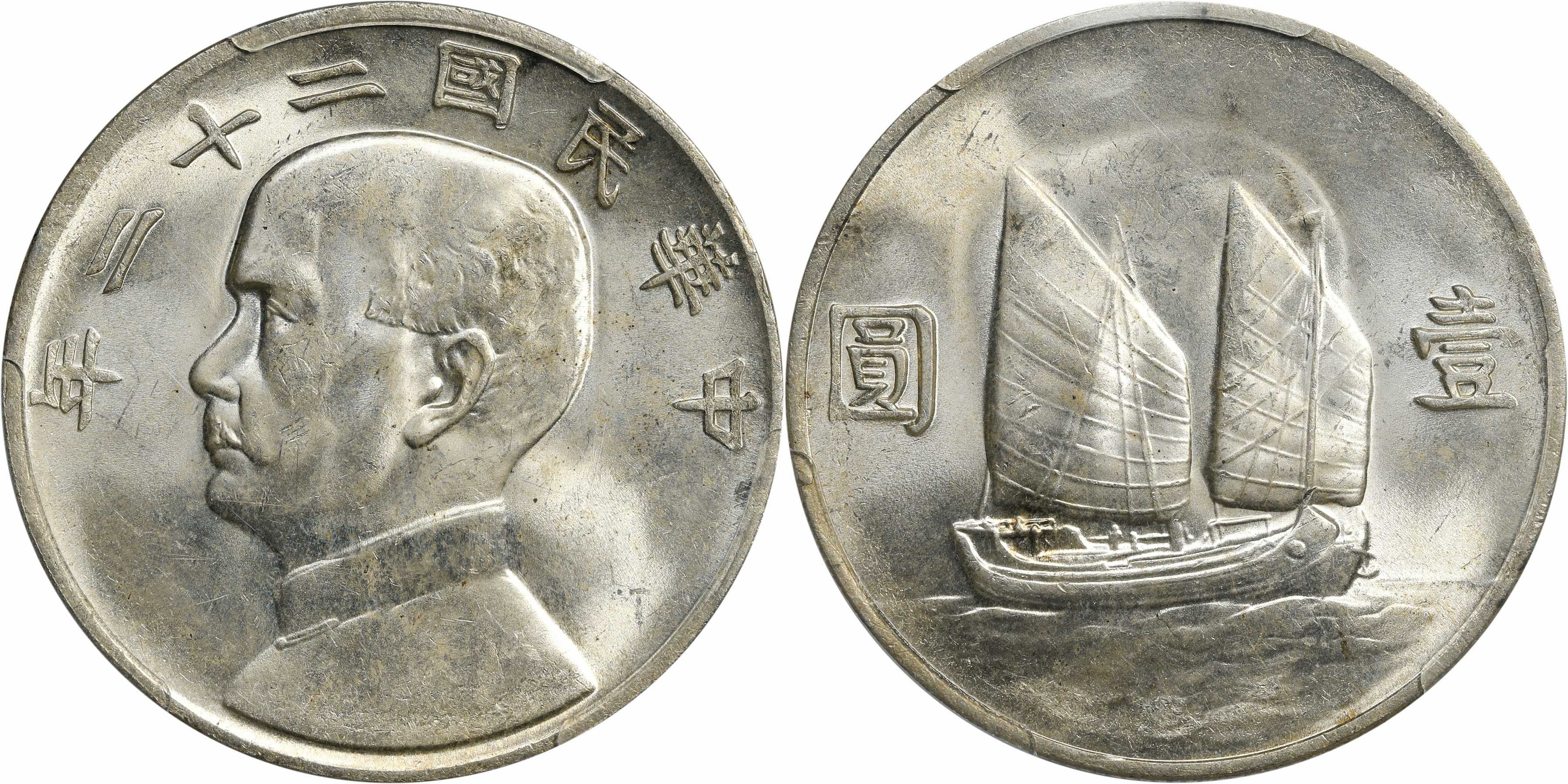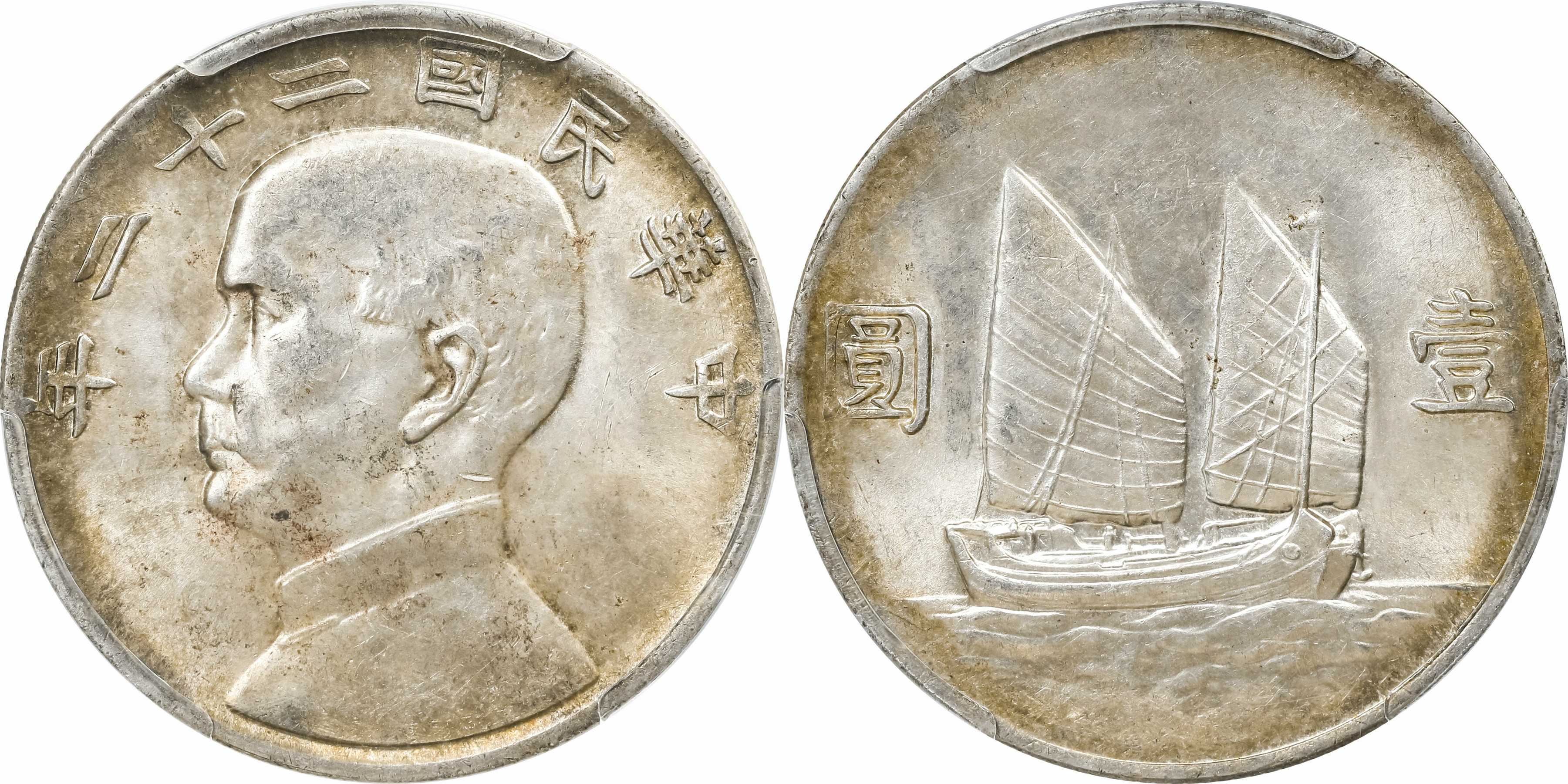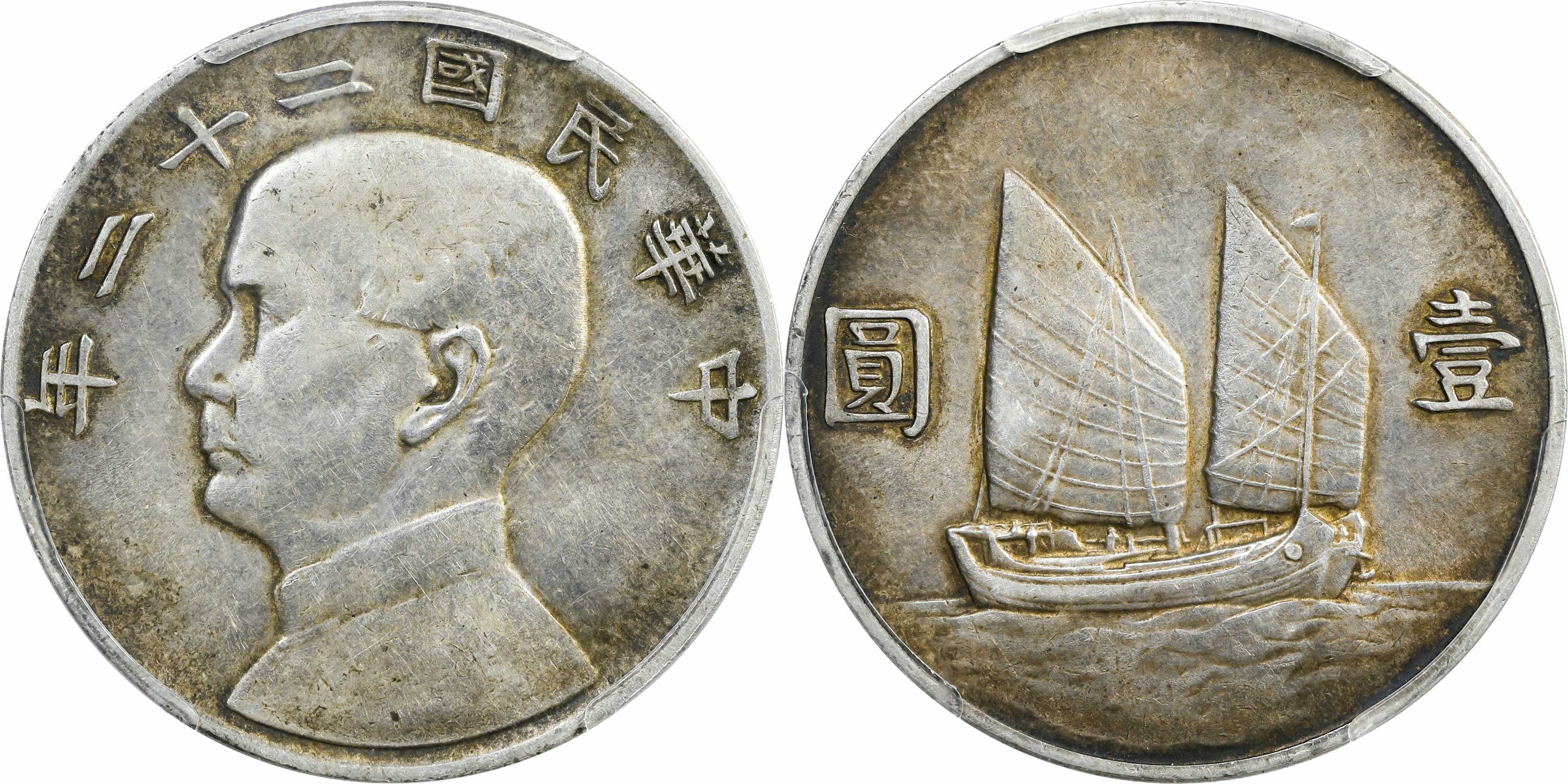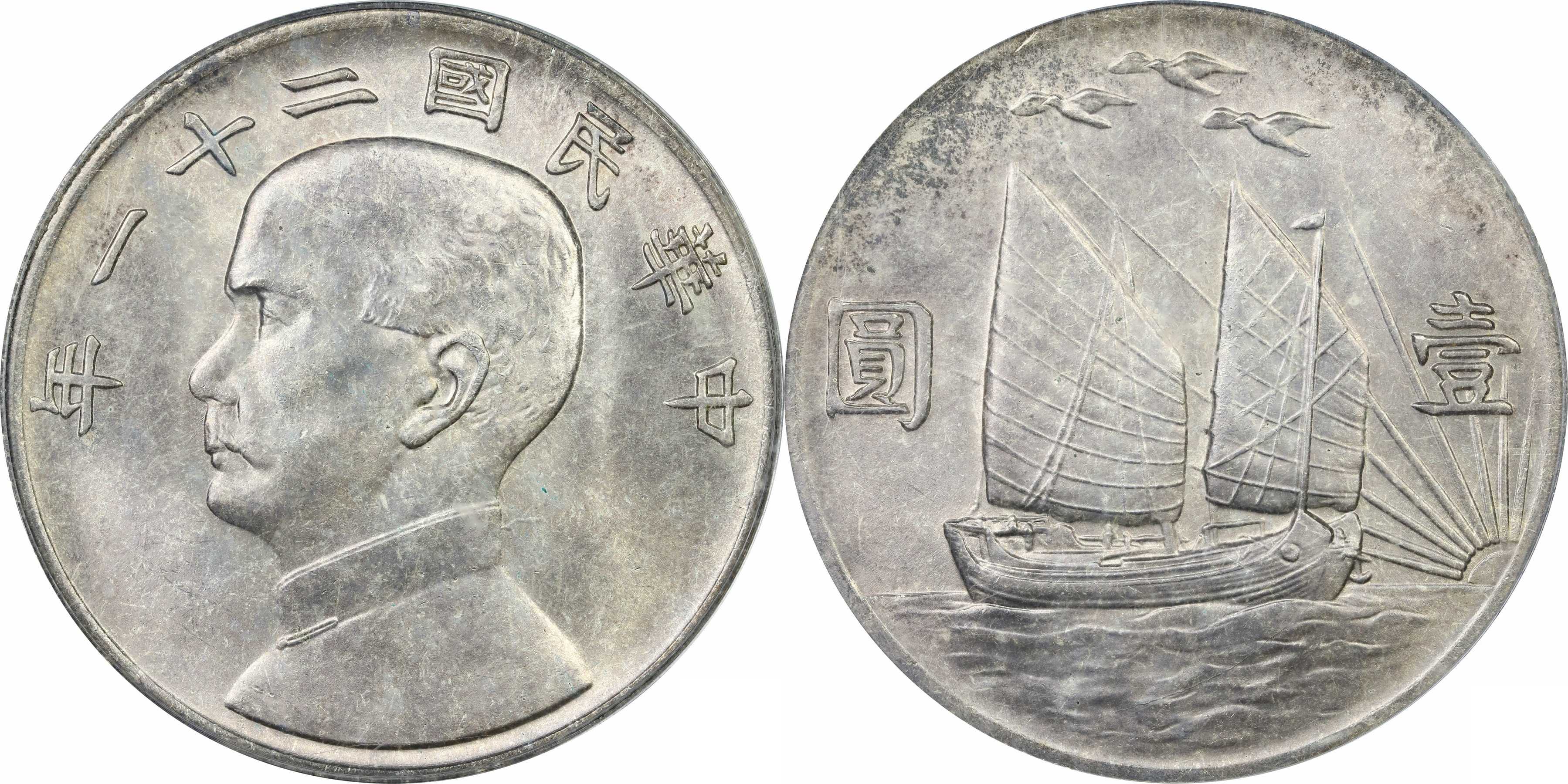 民国二十二年孙像帆船 壹圆银币