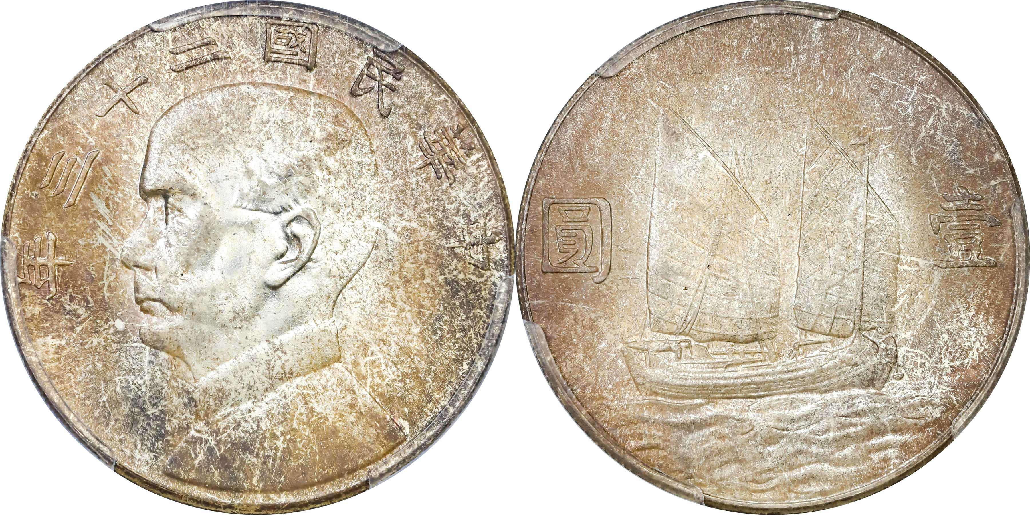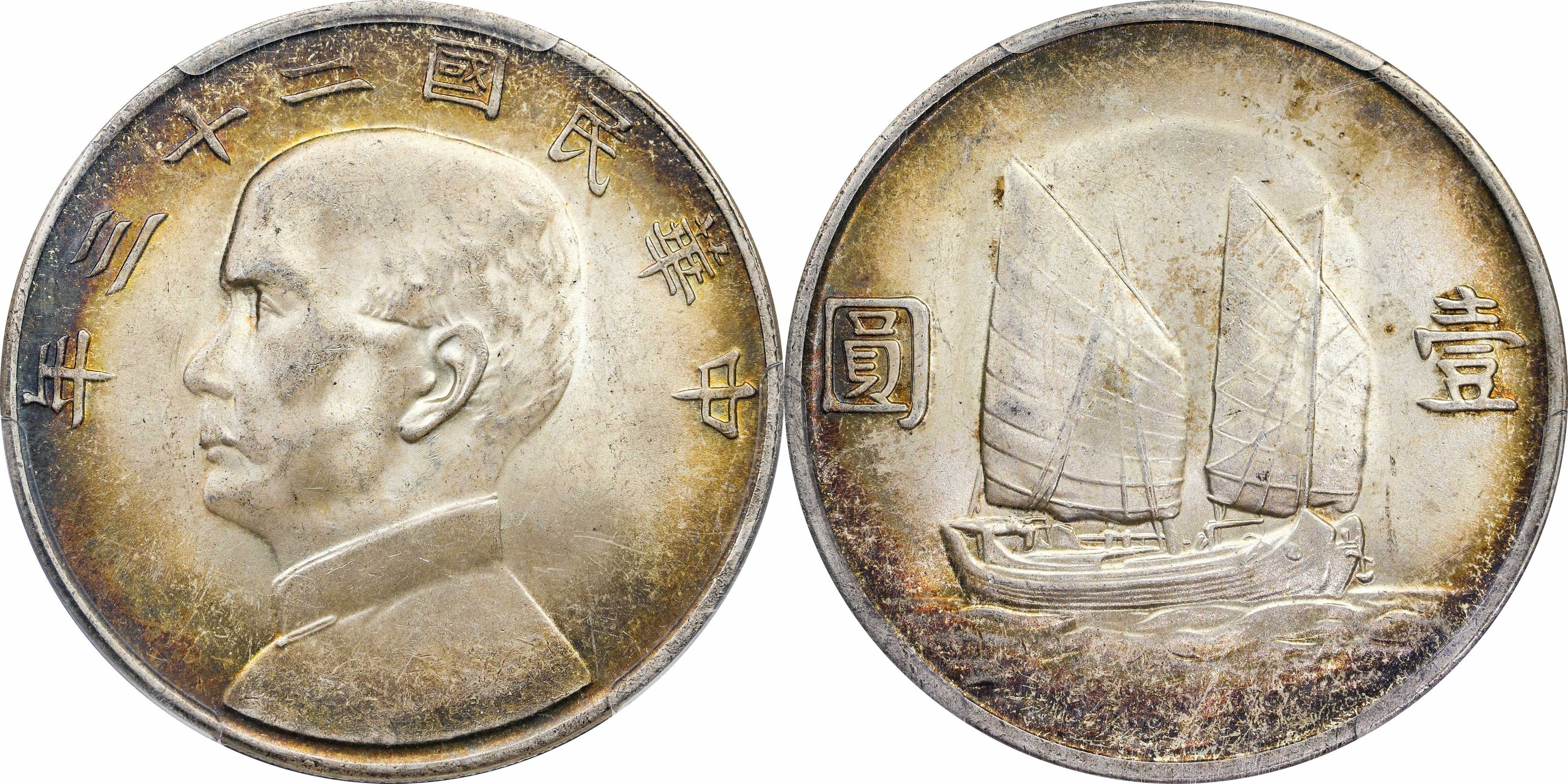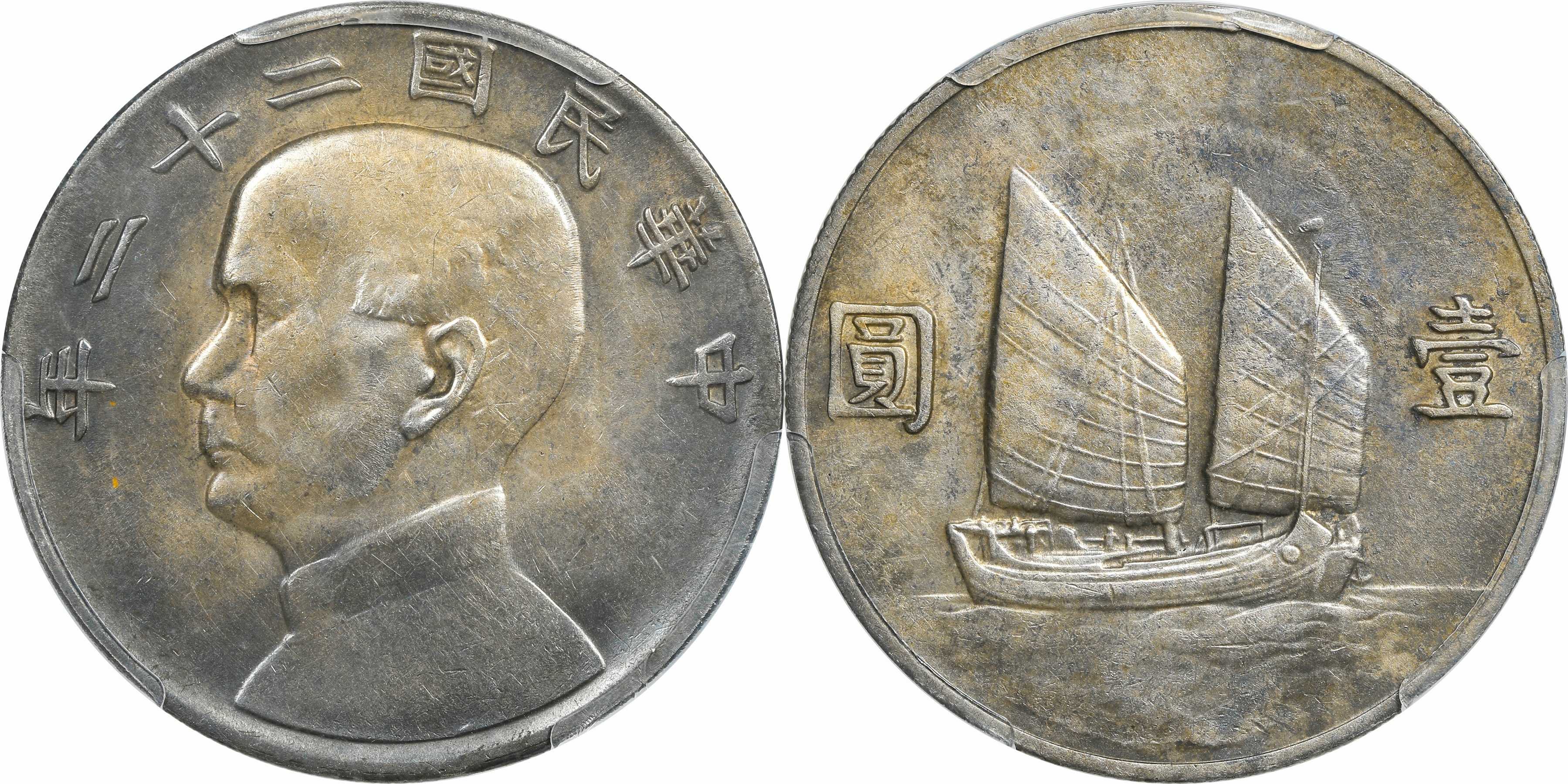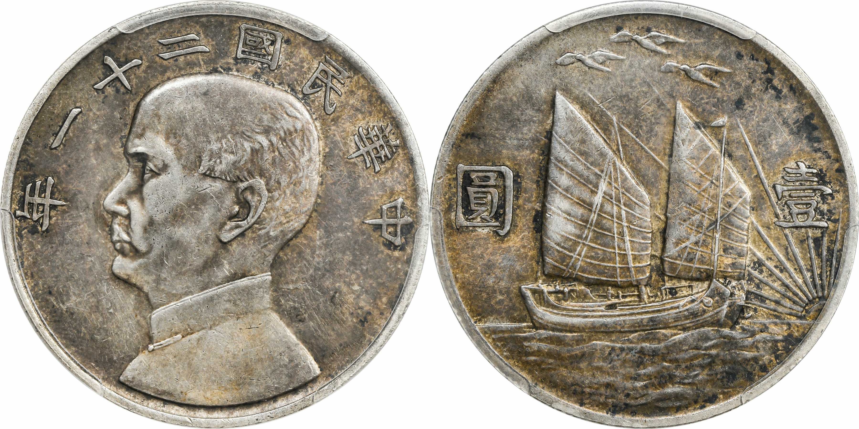 民国二十二年孙像帆船 壹圆银币