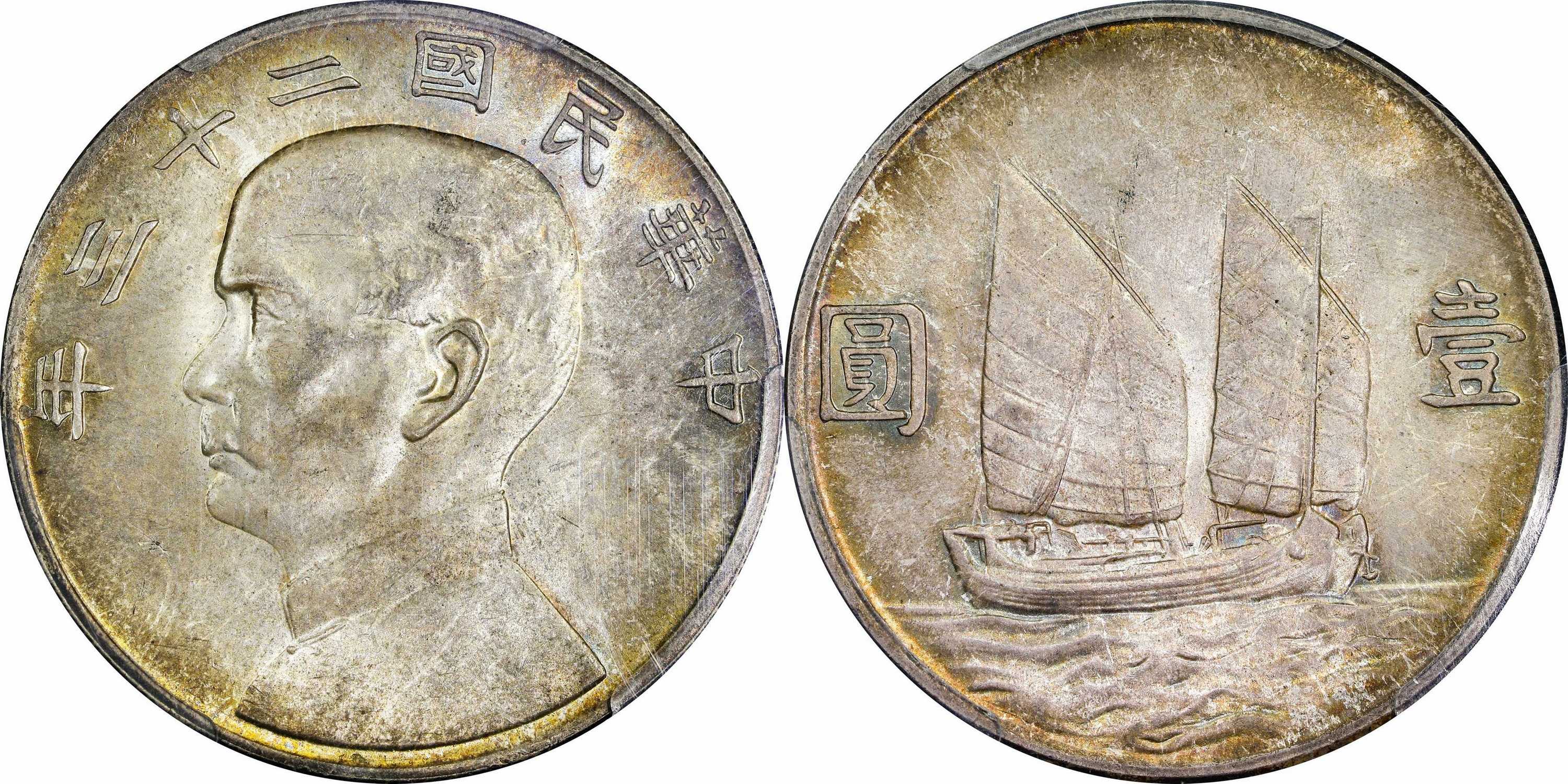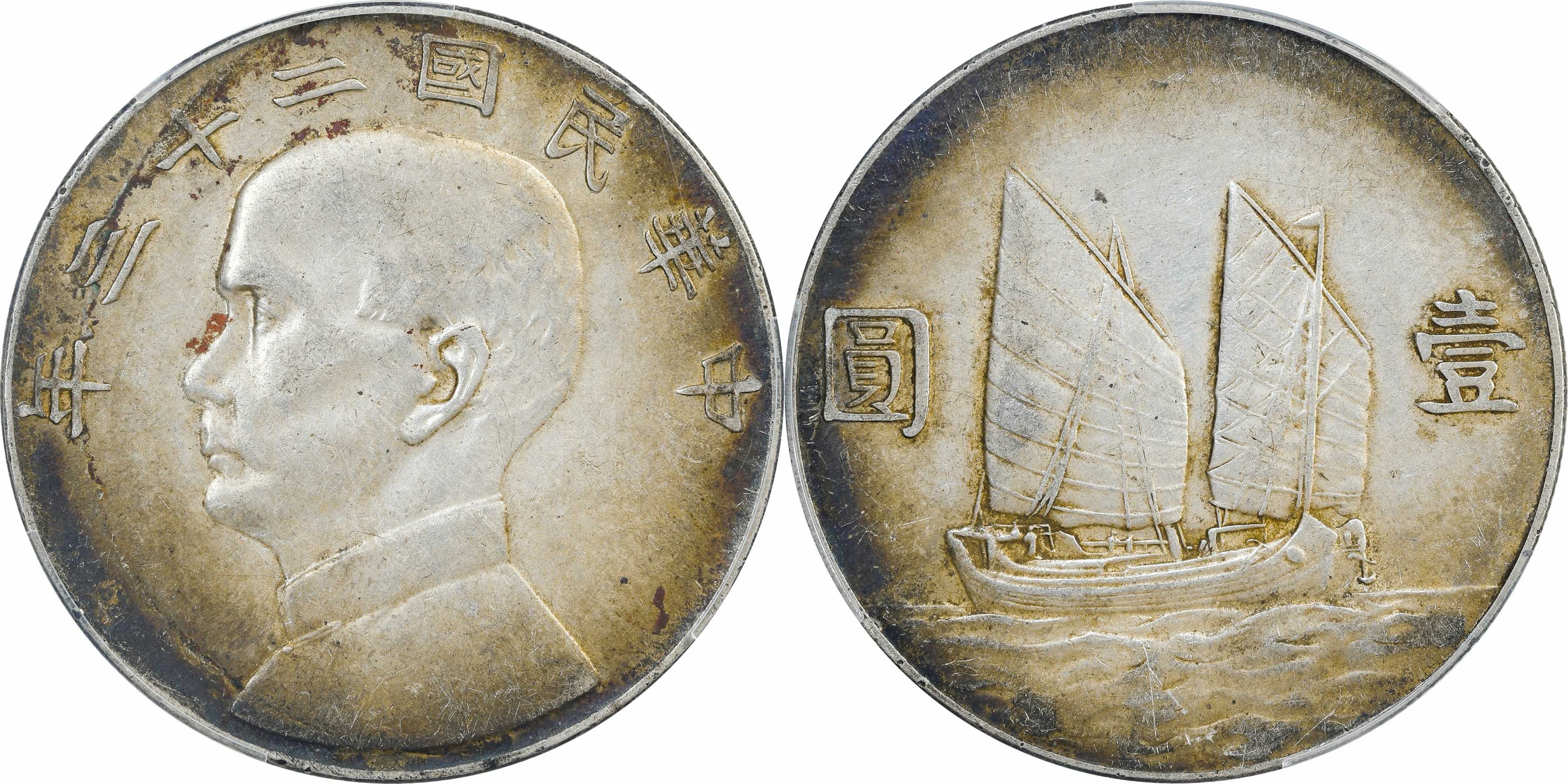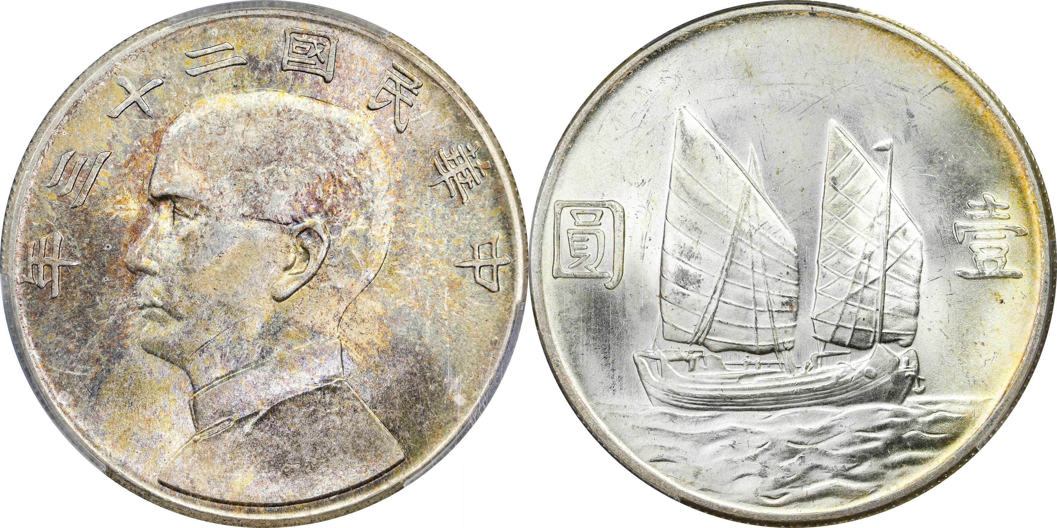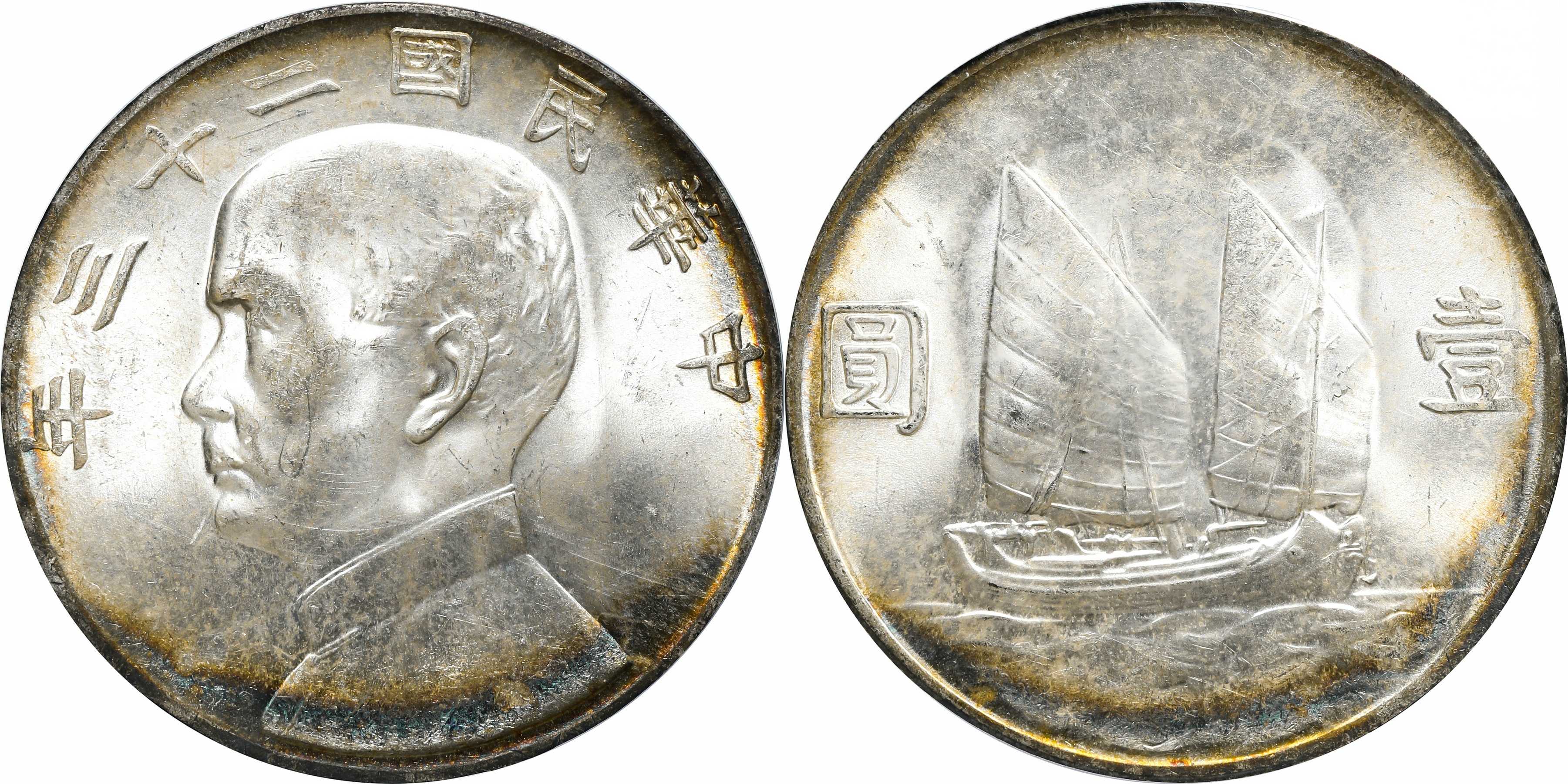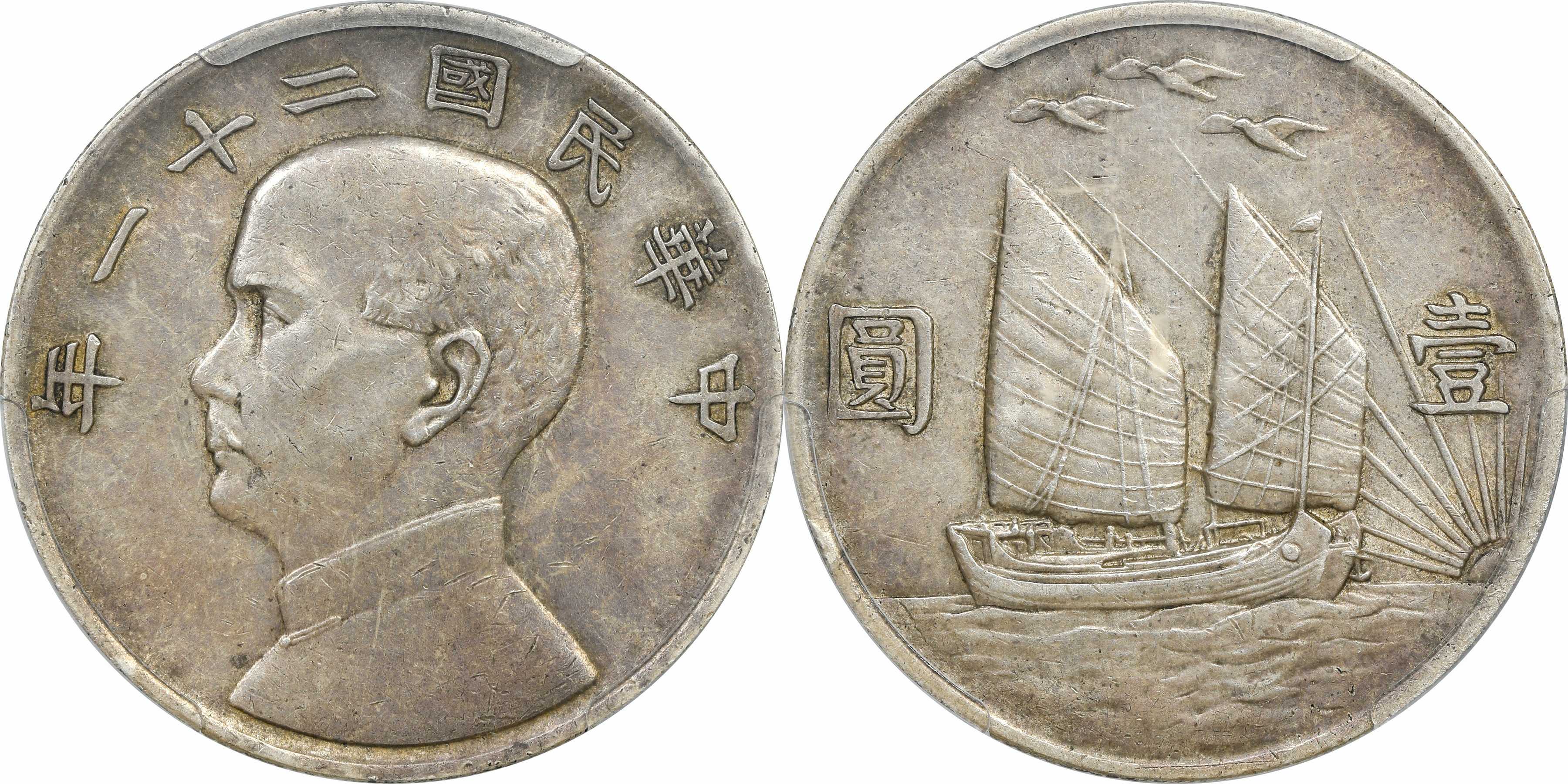民国二十二年孙像帆船 壹圆银币