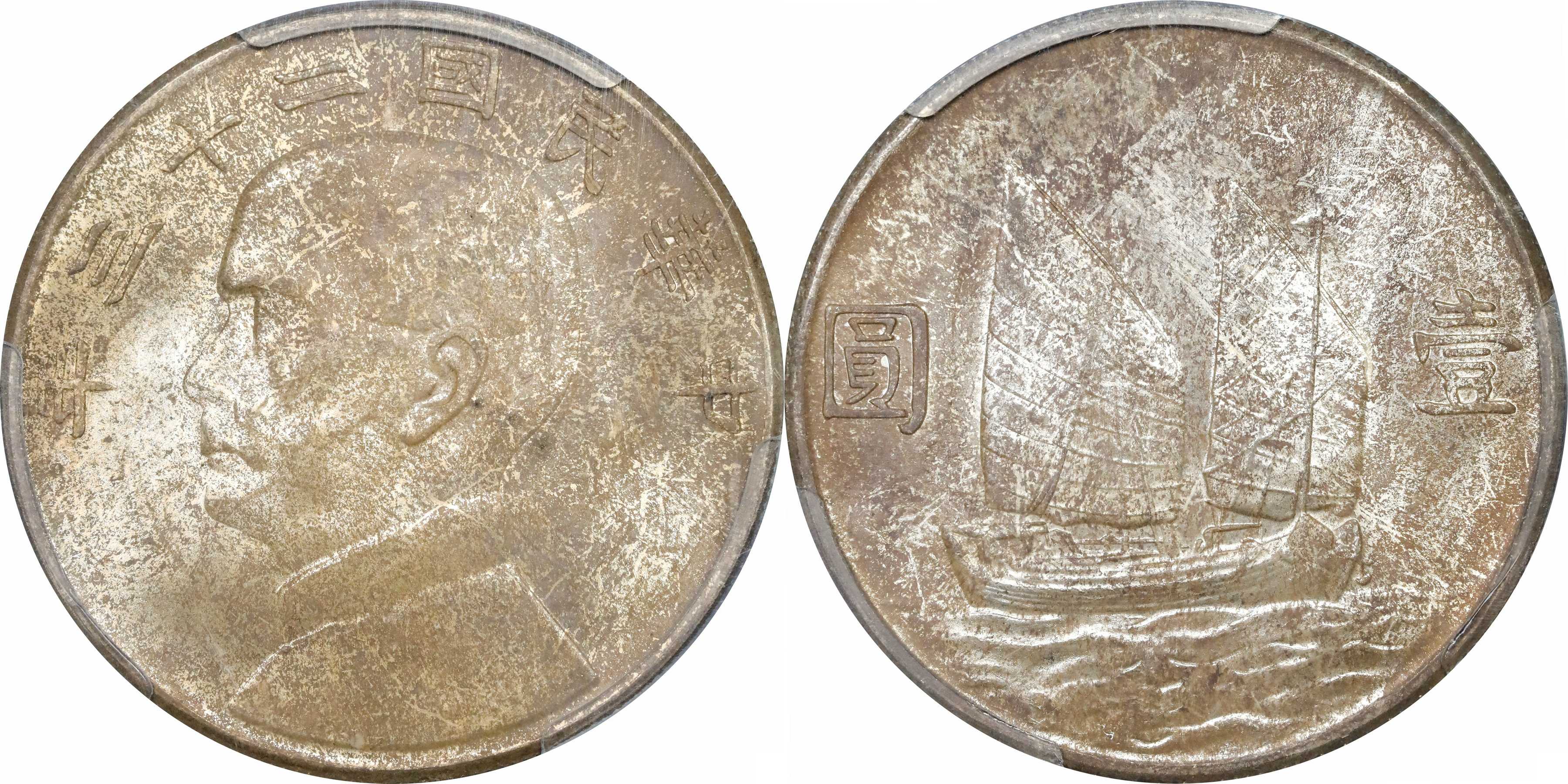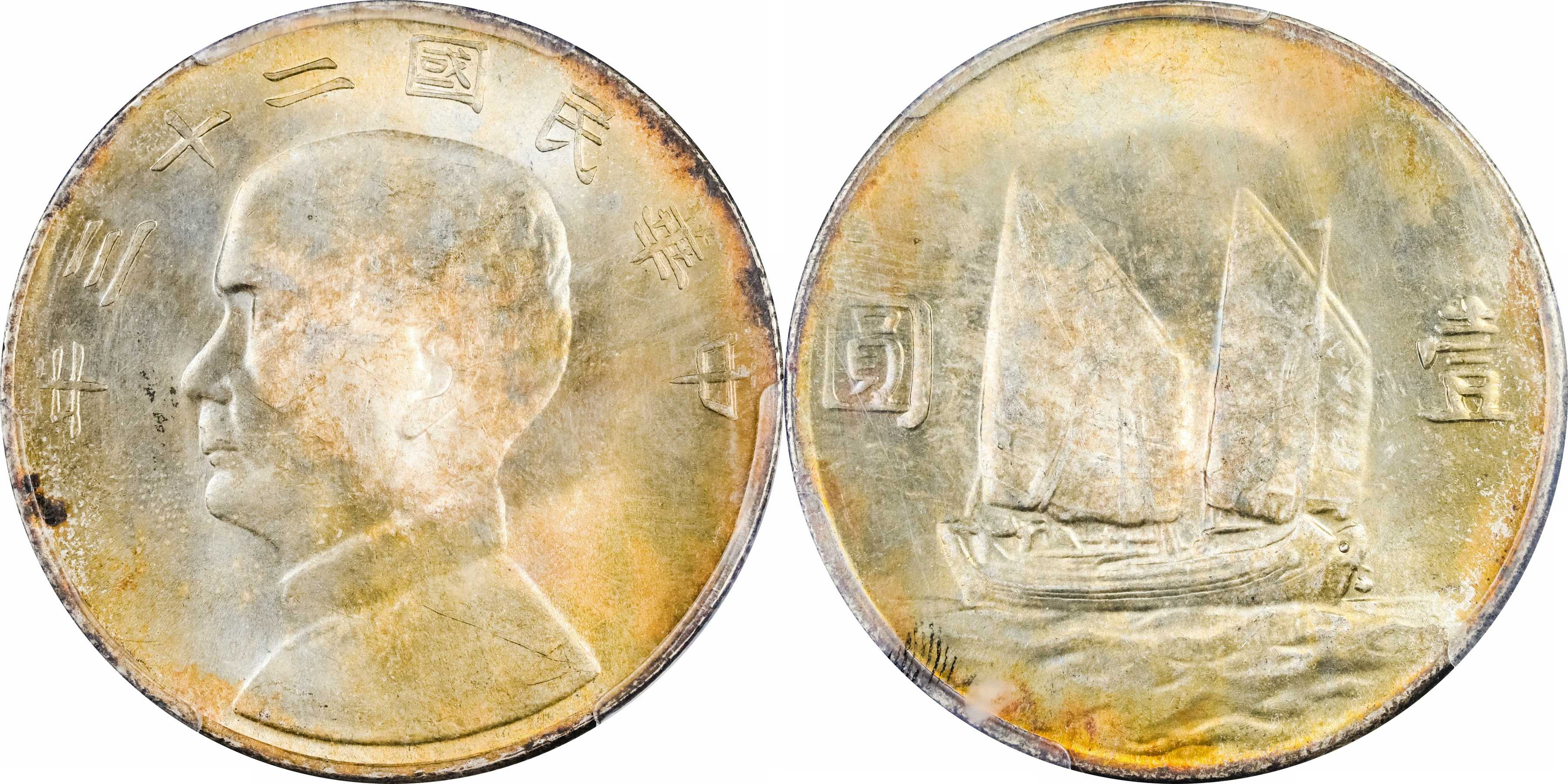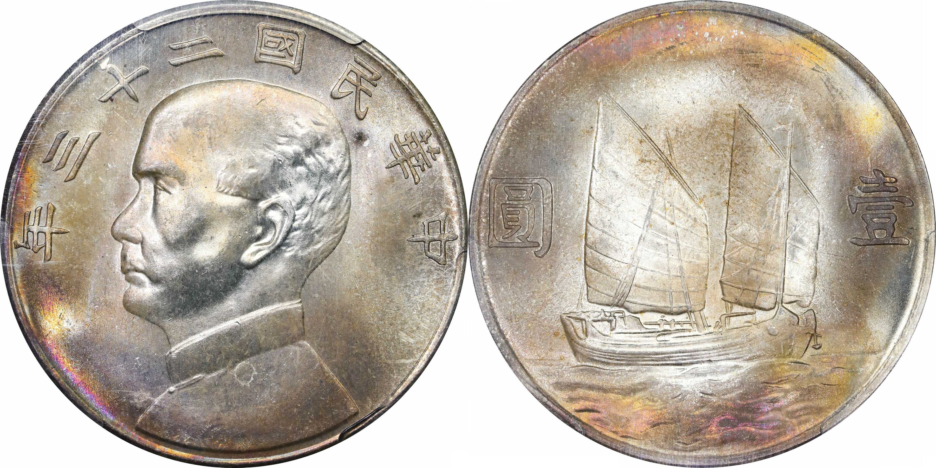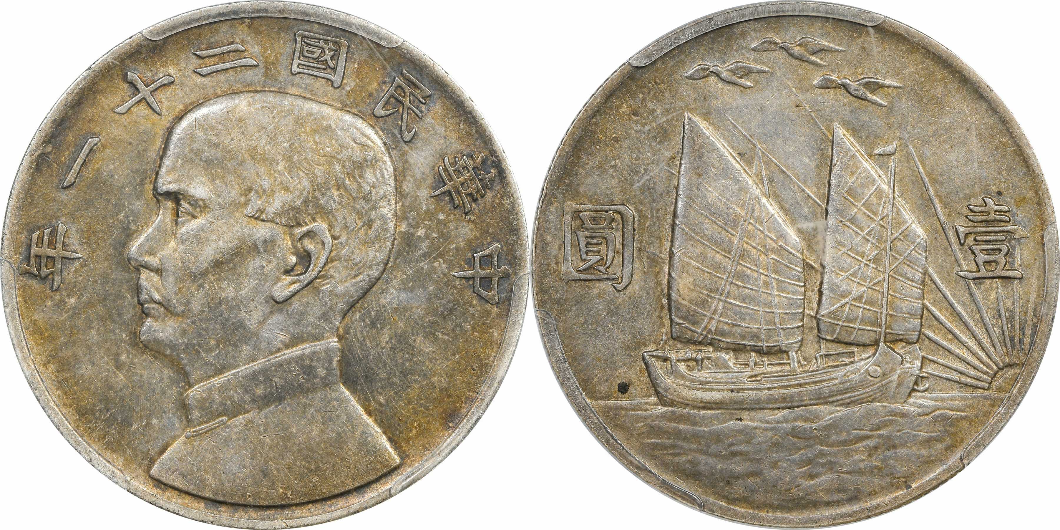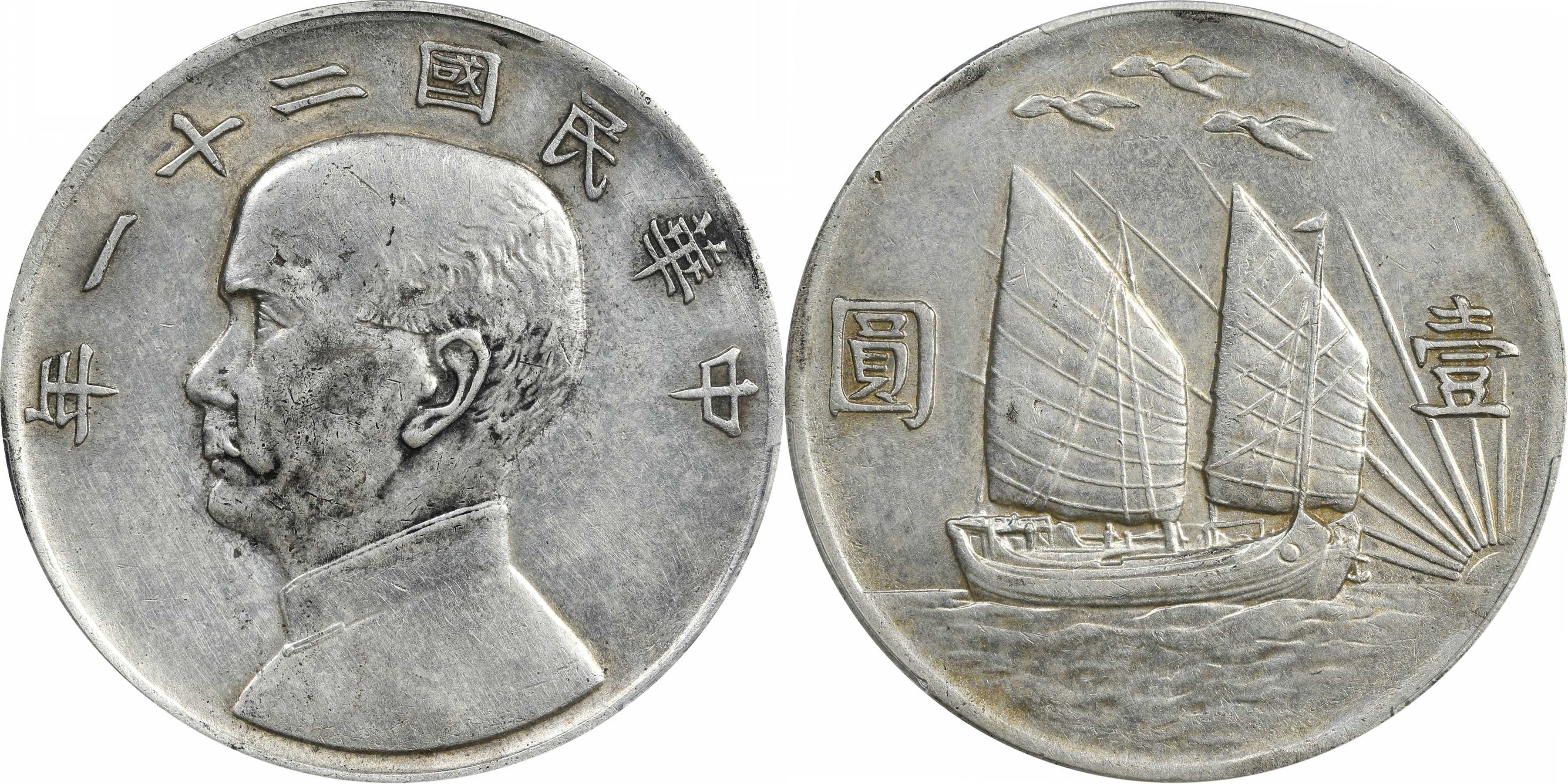 民国二十二年孙像帆船 壹圆银币
