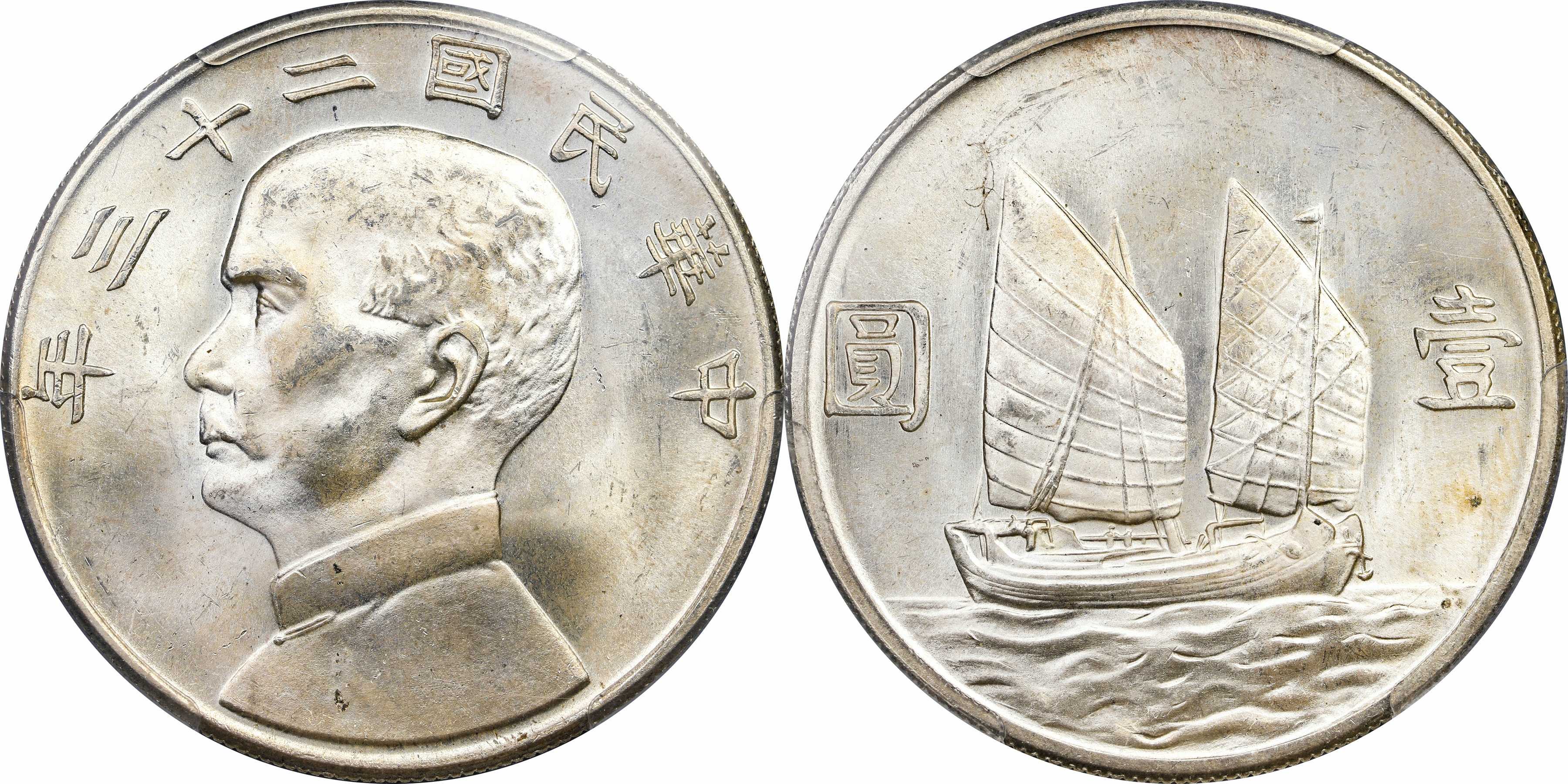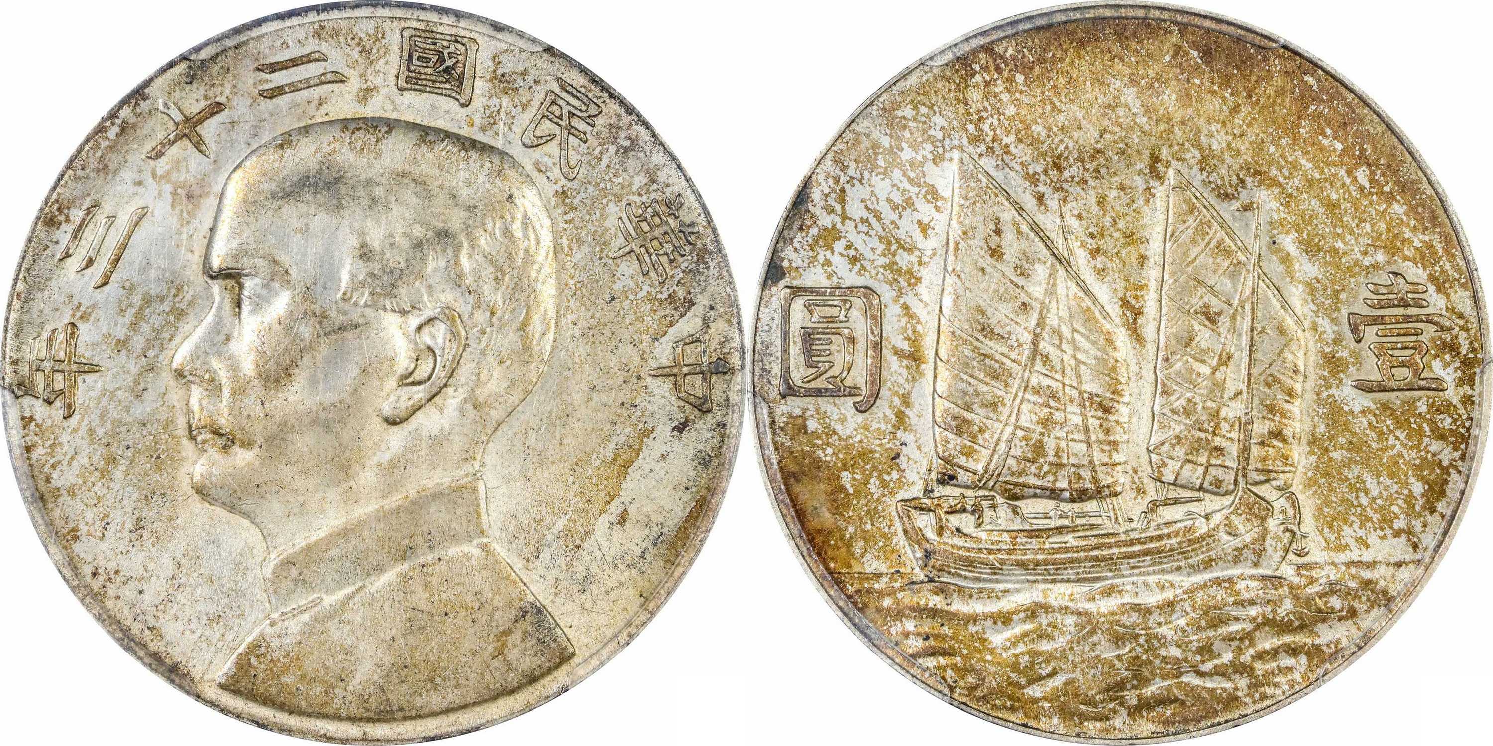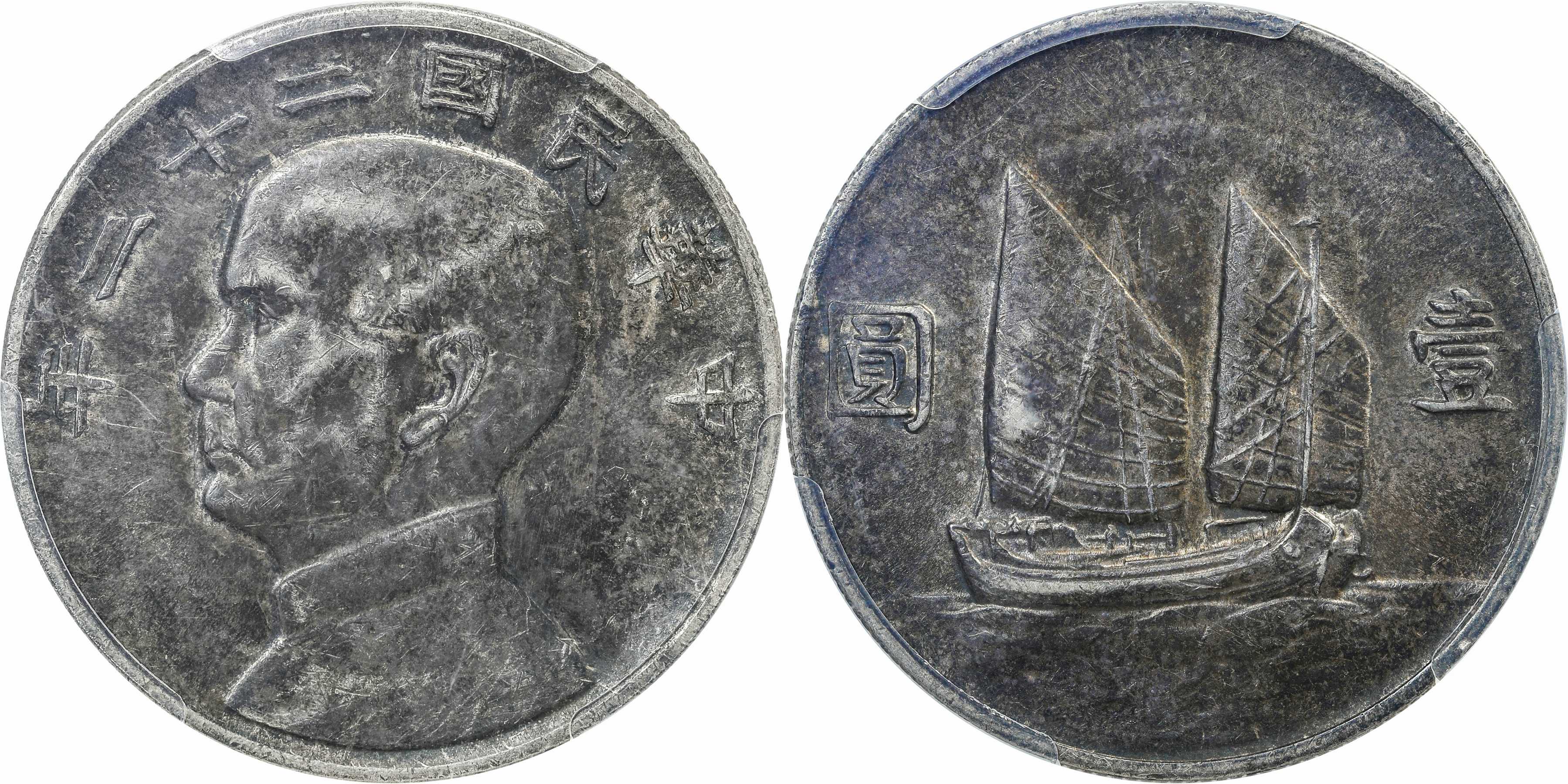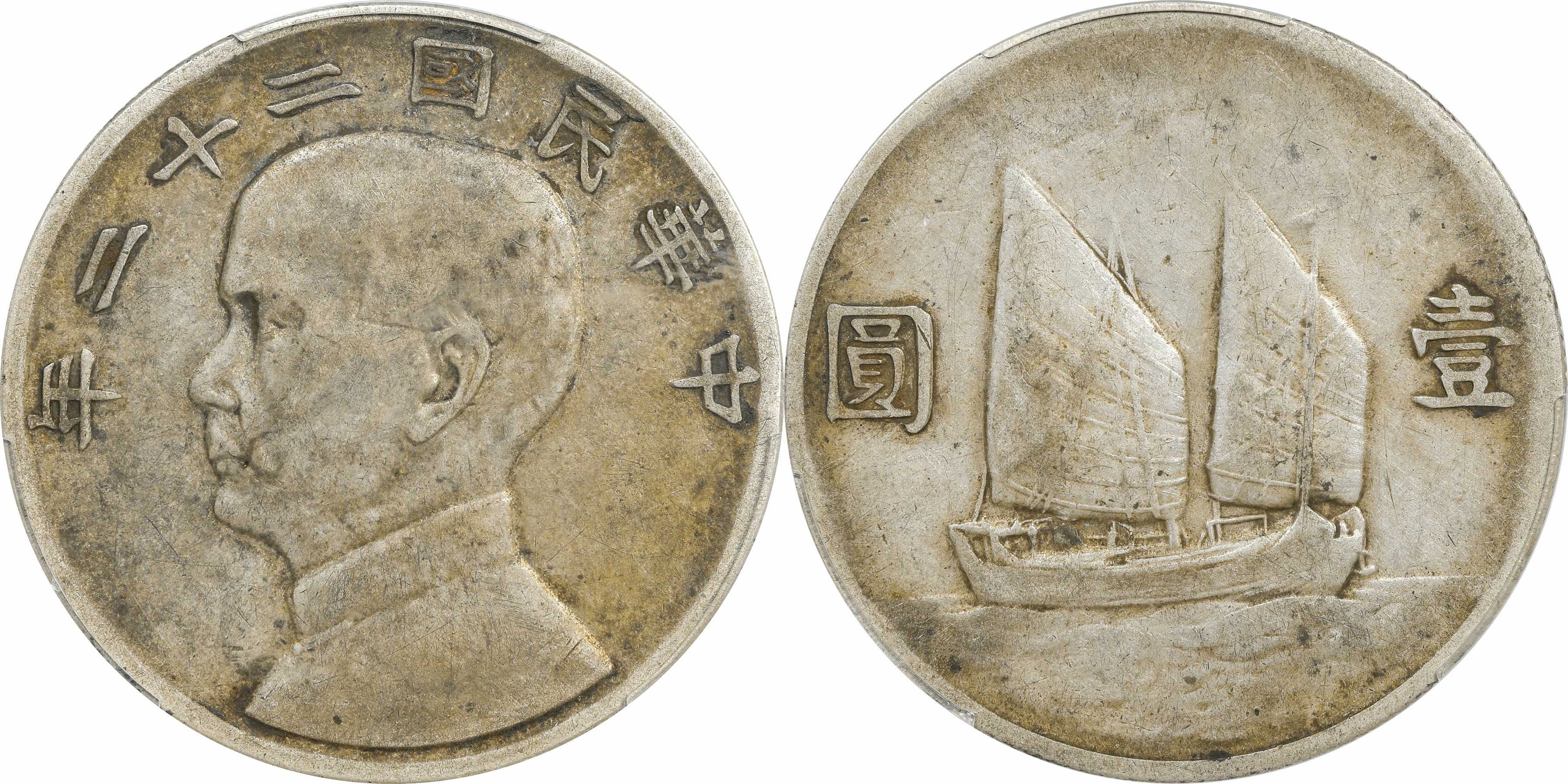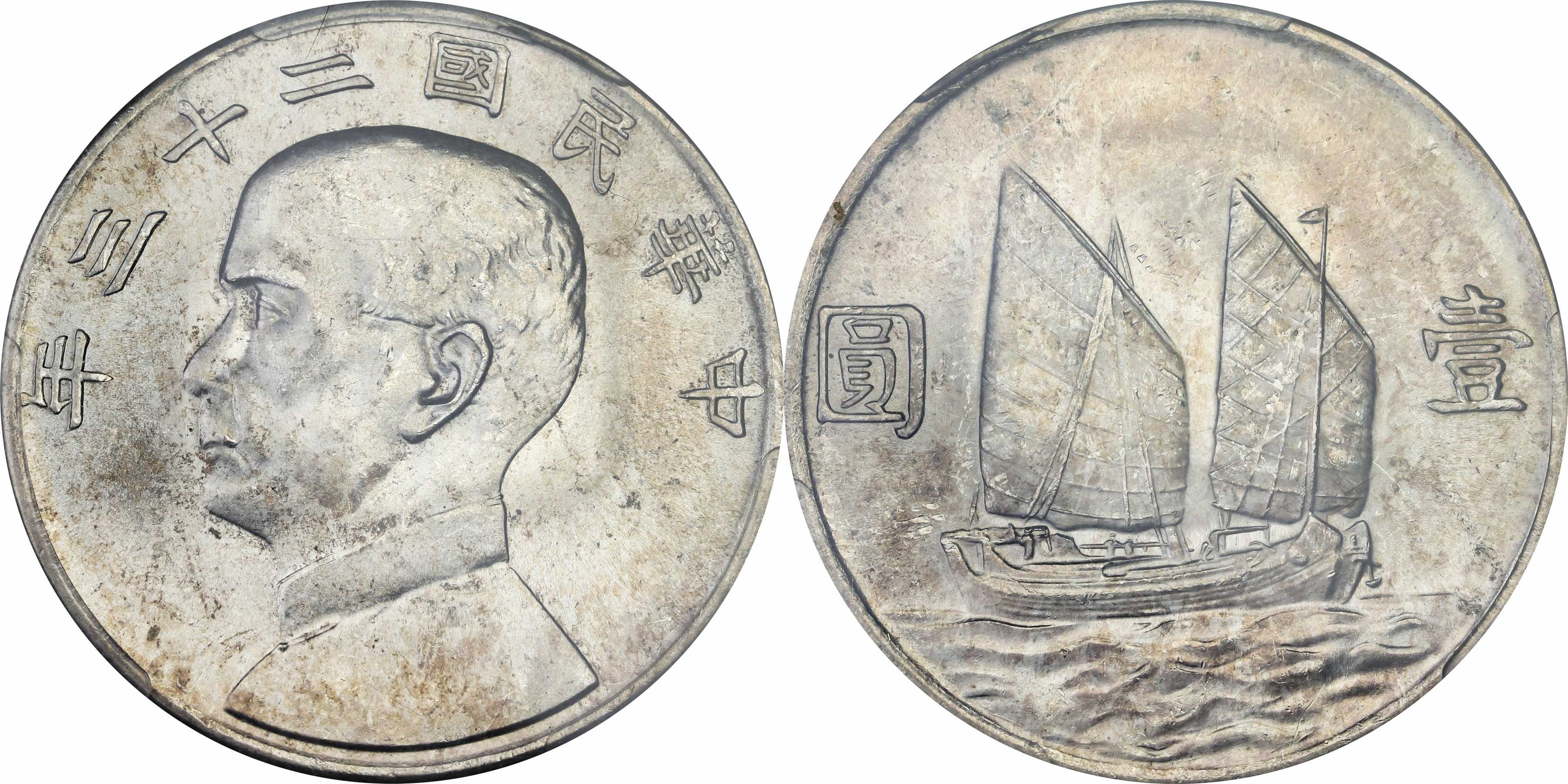 民国二十三年孙像帆船 壹圆银币