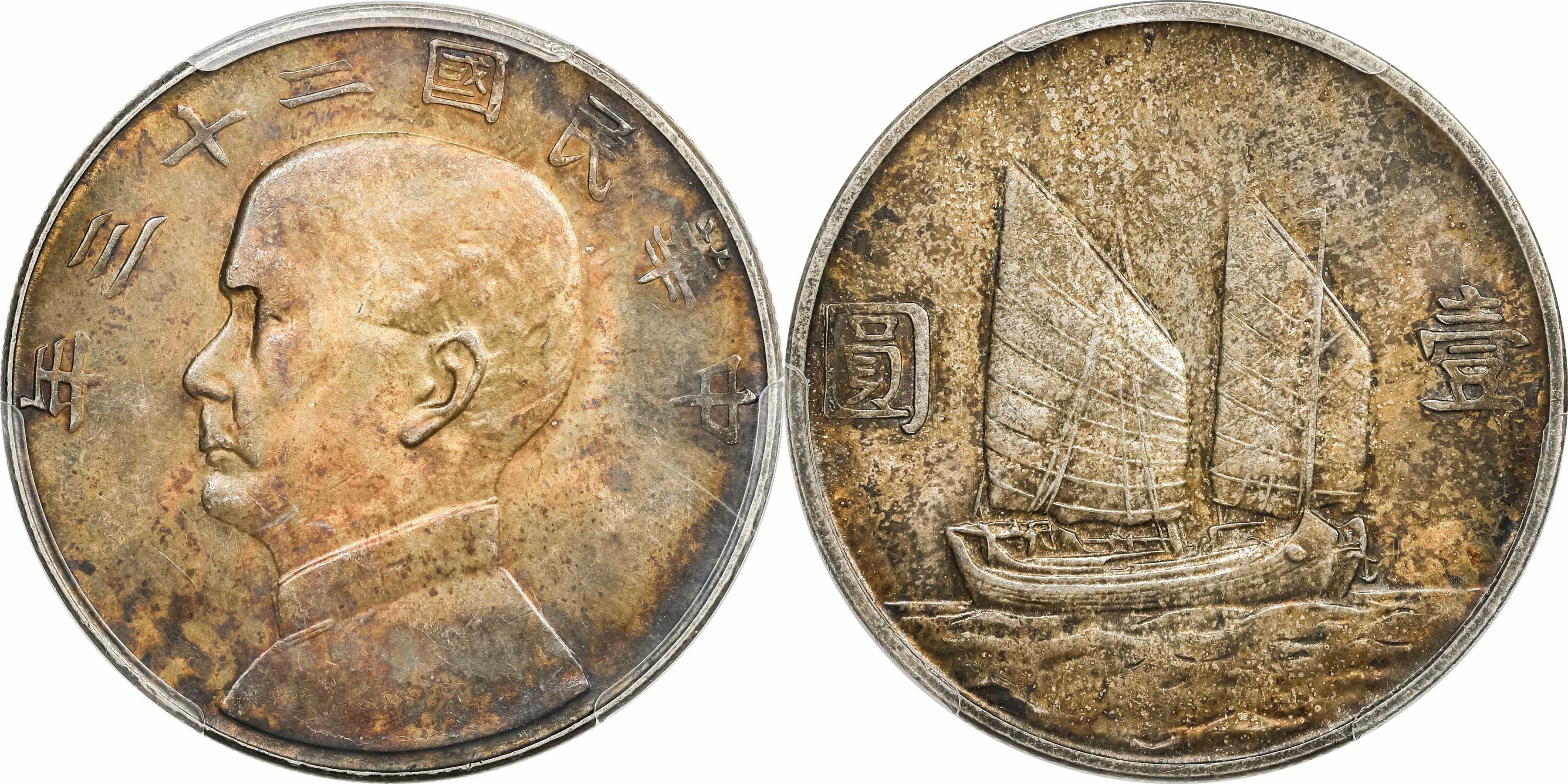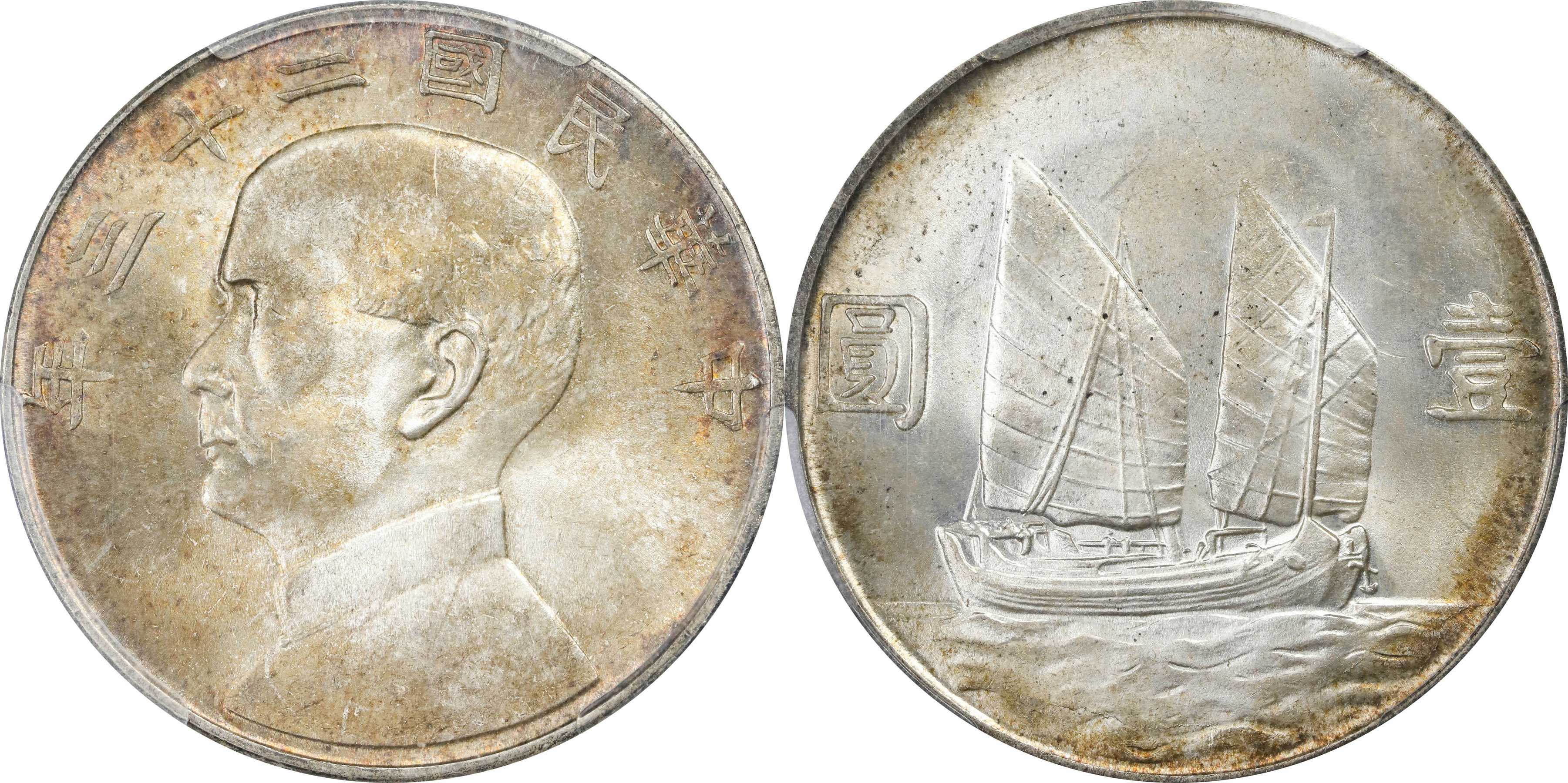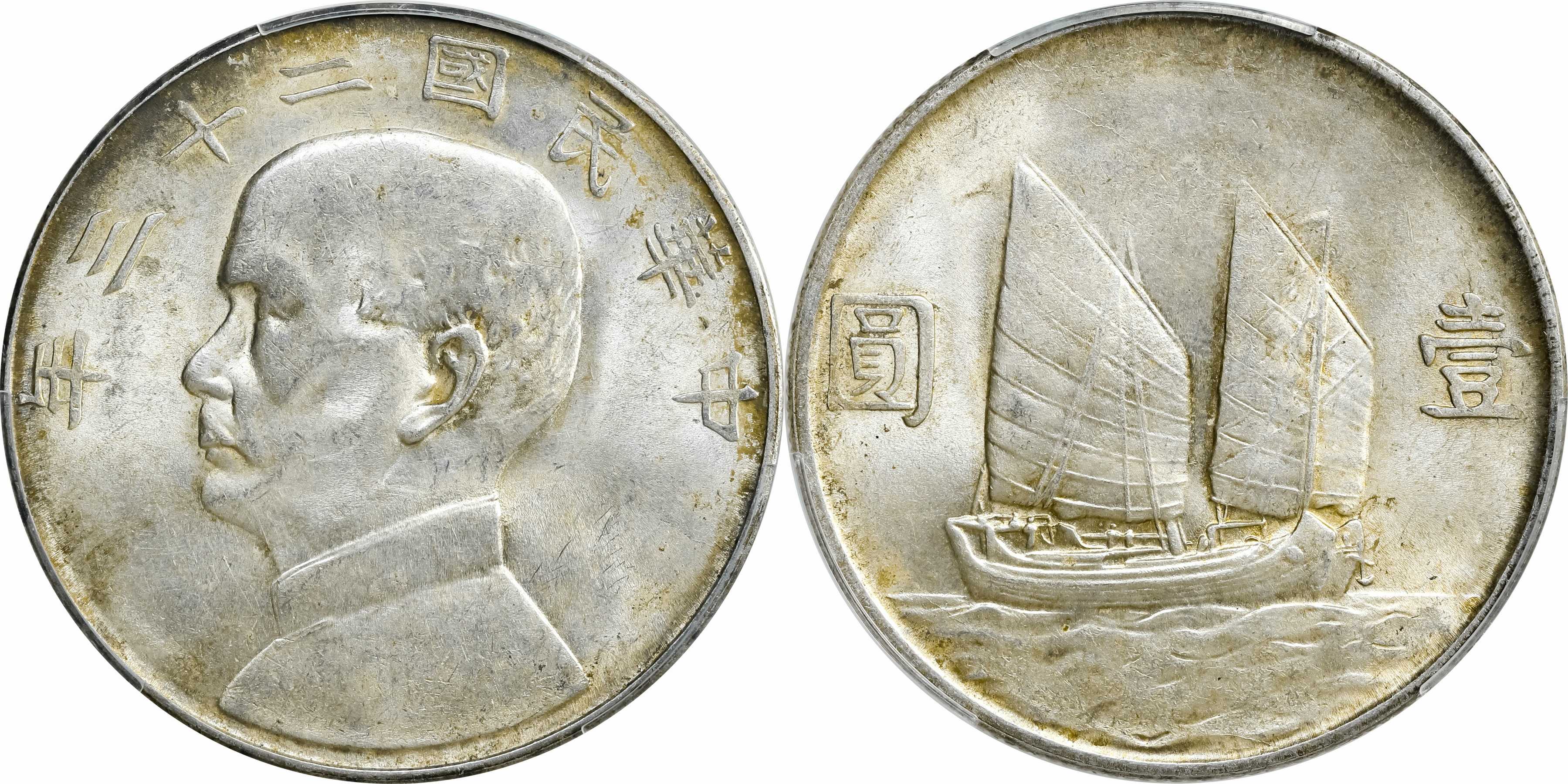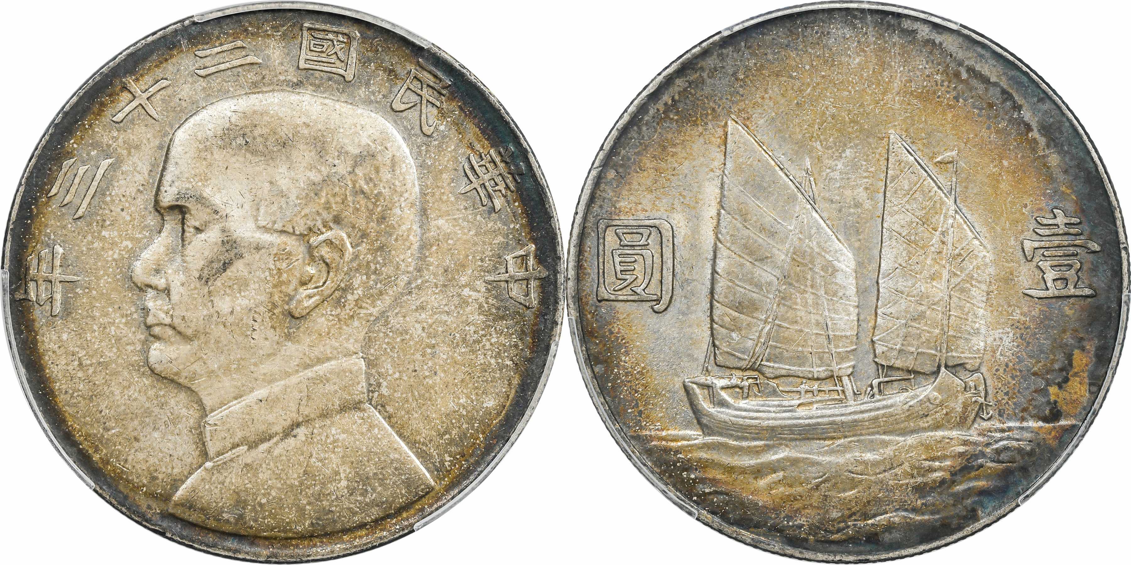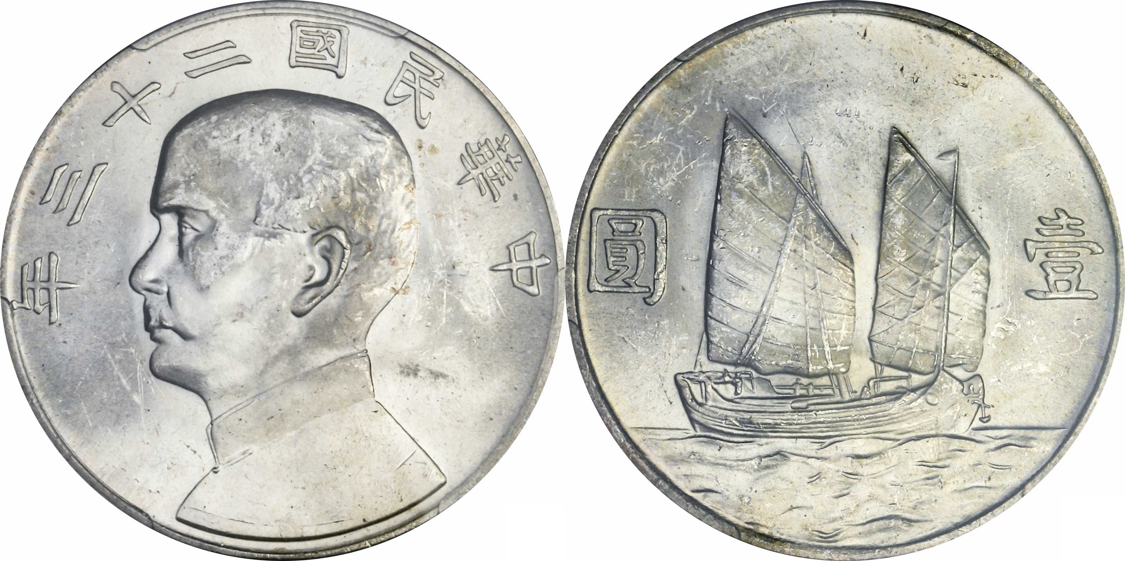 民国二十三年孙像帆船 壹圆银币