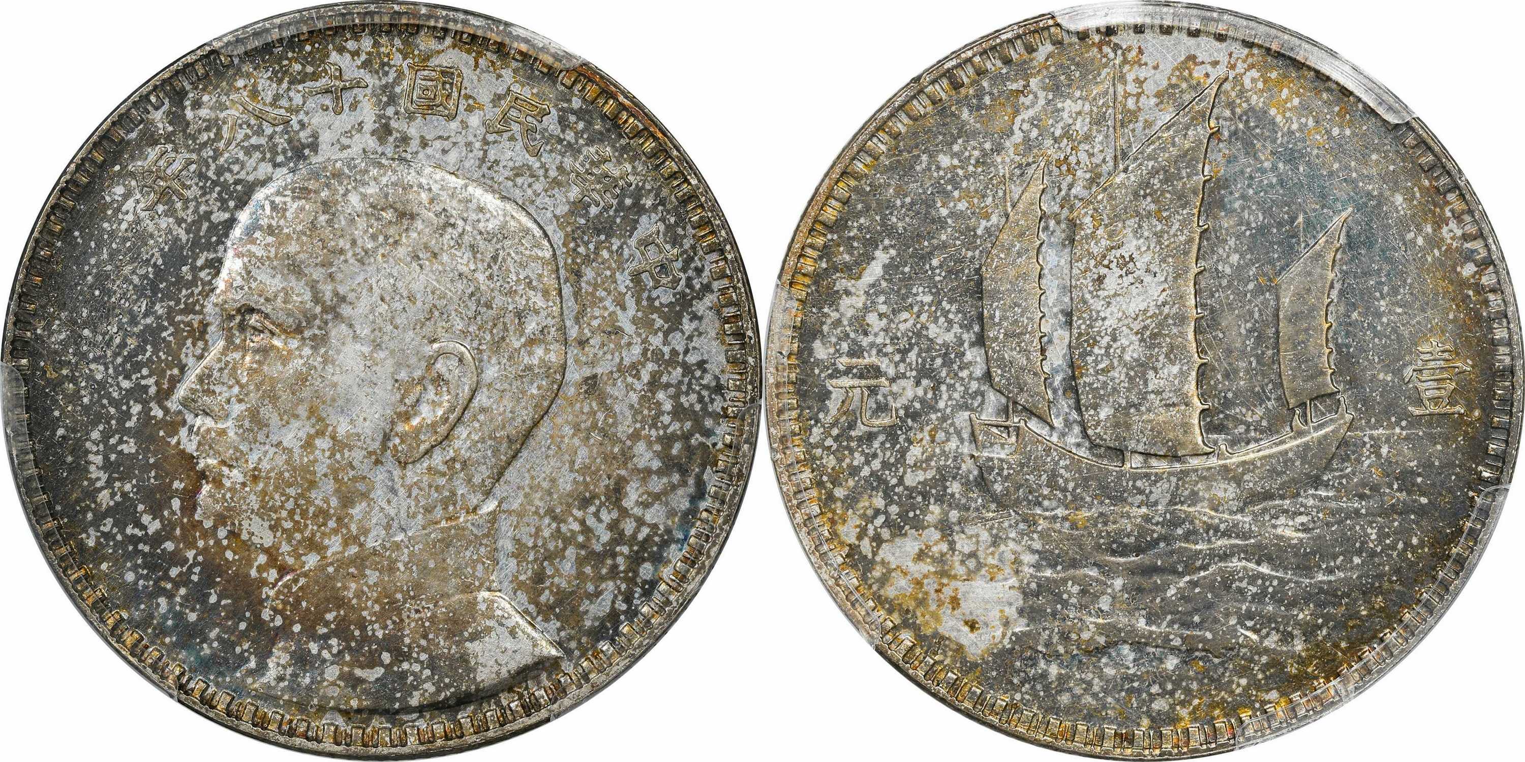民国十八年孙像三帆 壹元银币