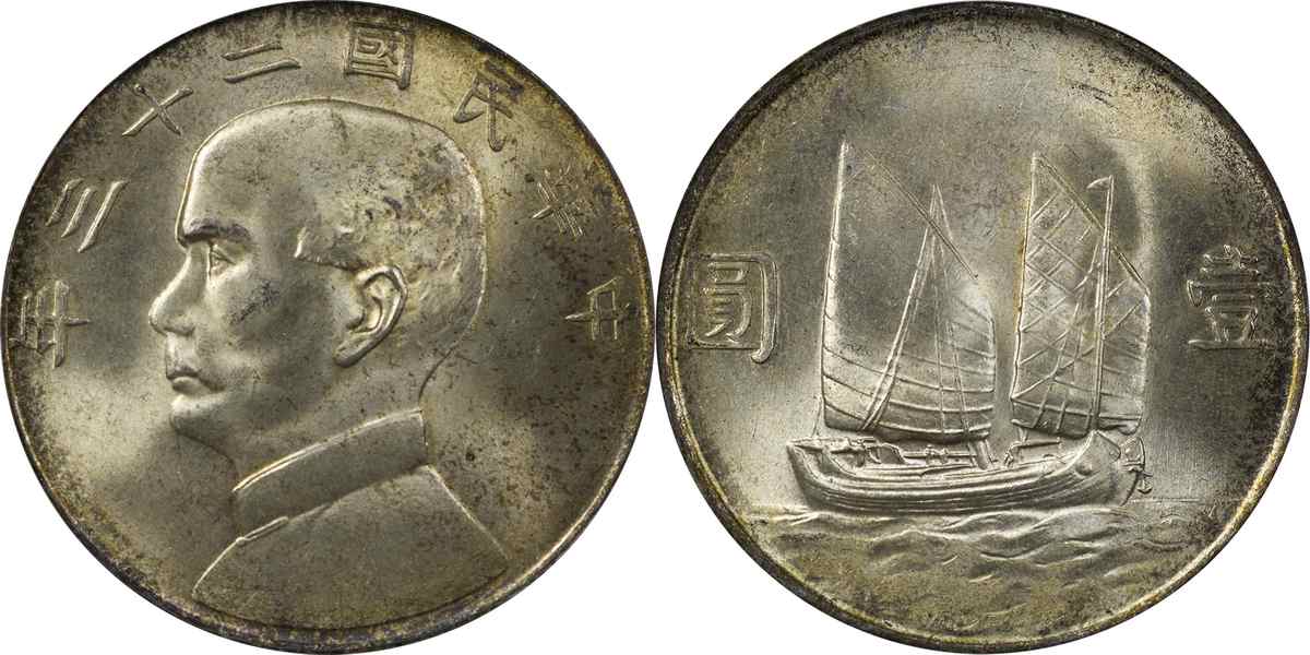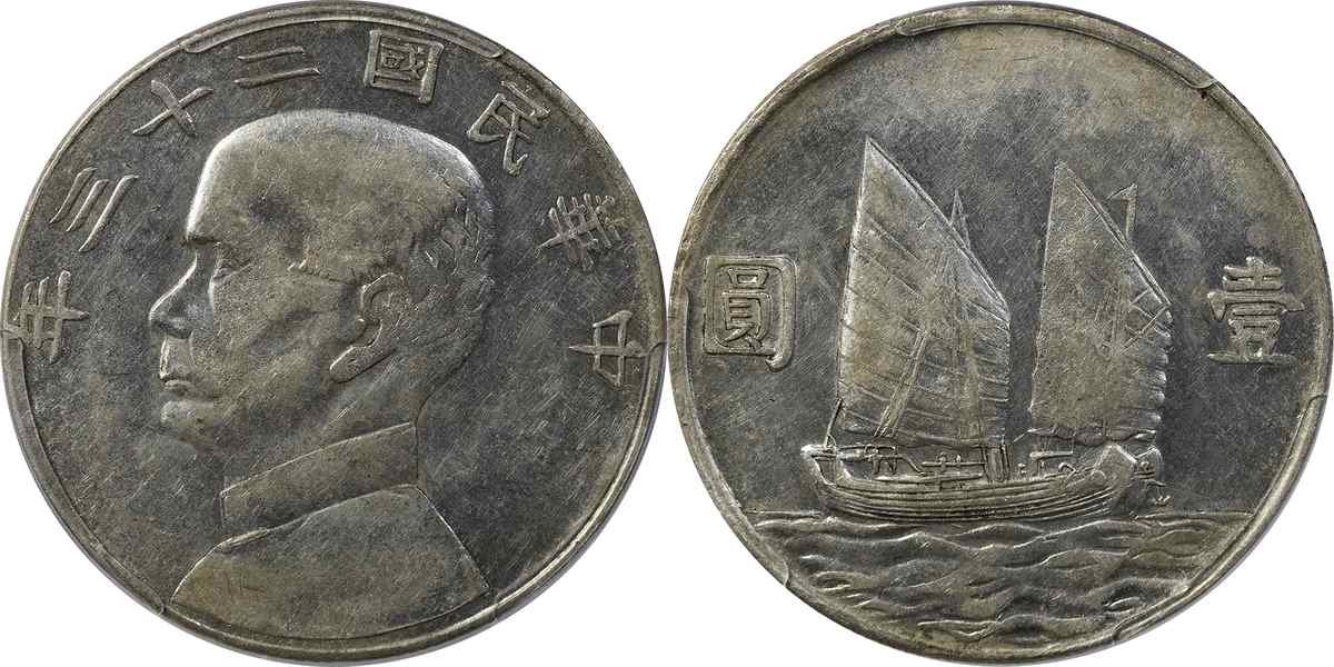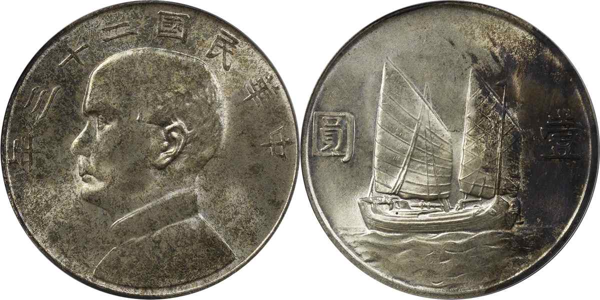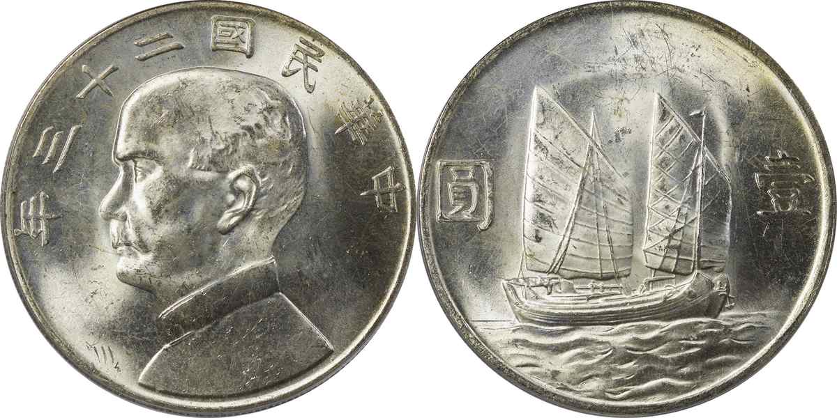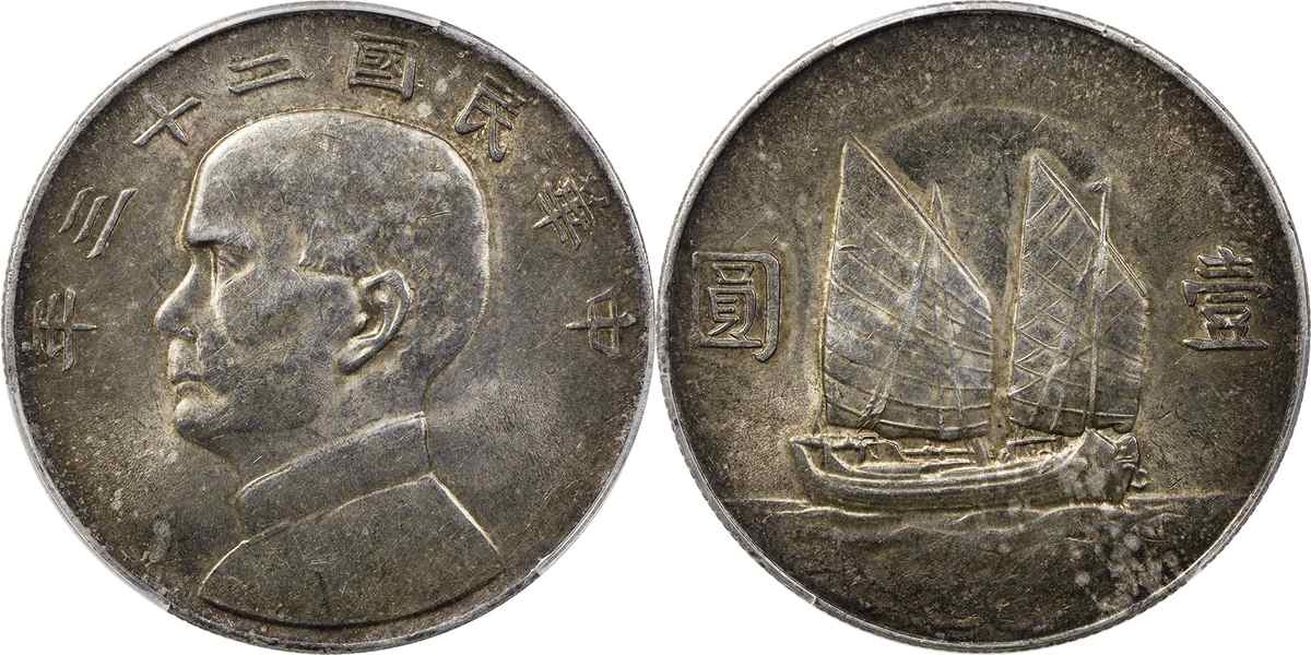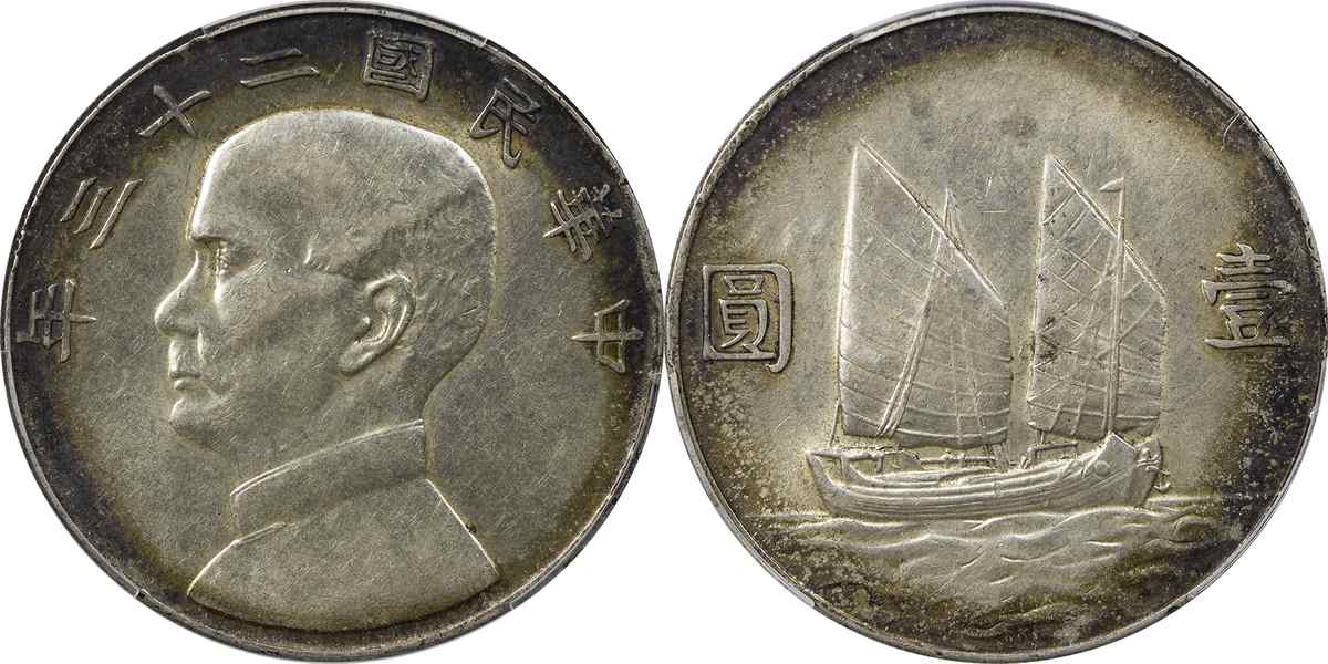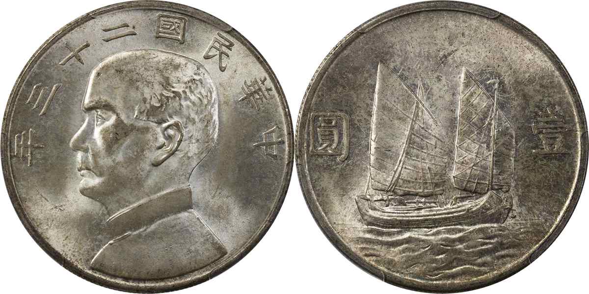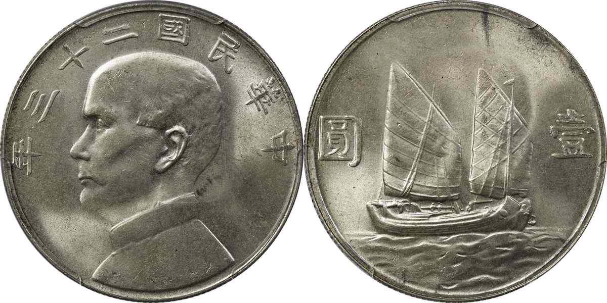 民国二十三年孙像帆船 壹圆 月