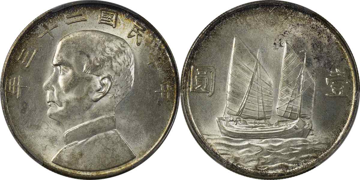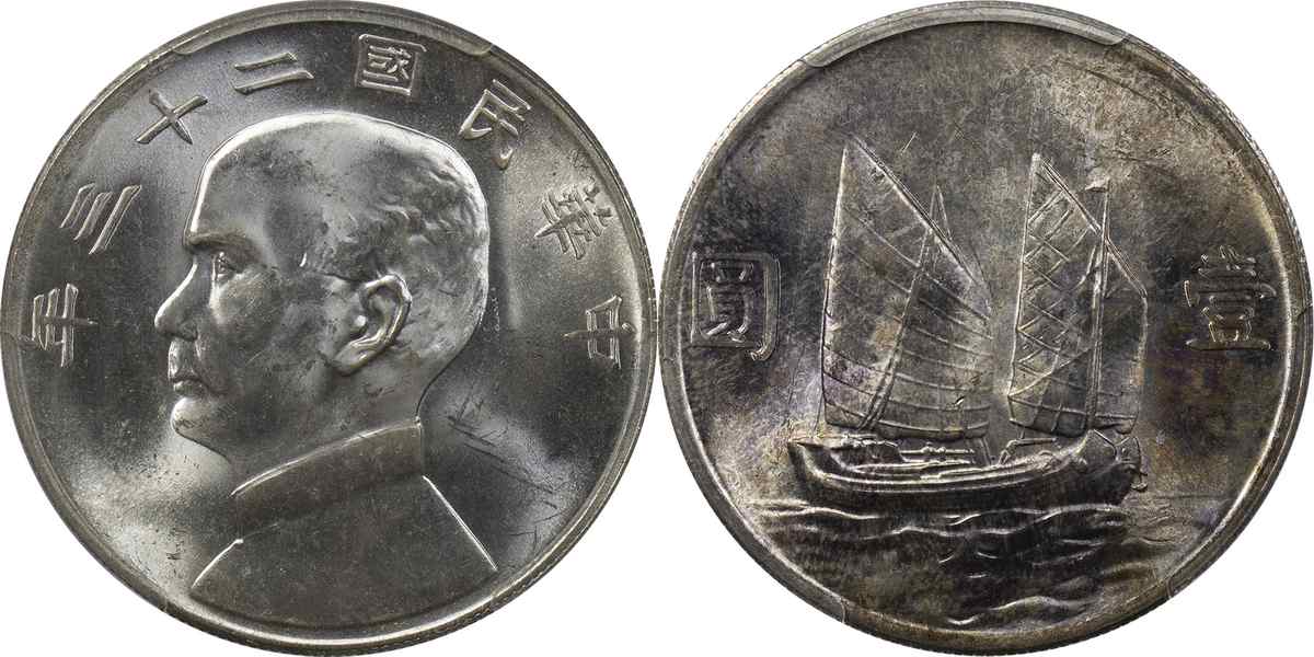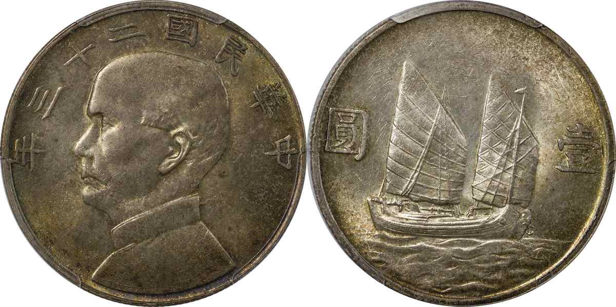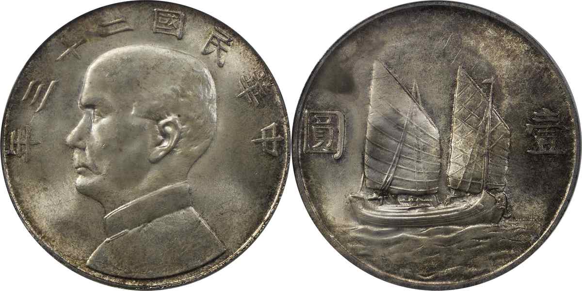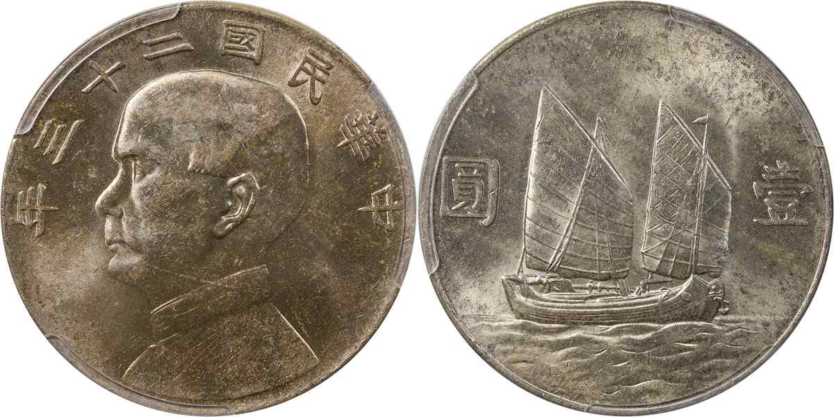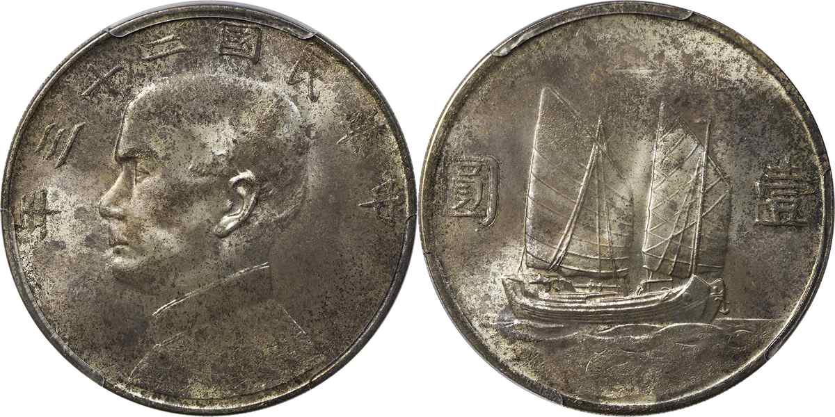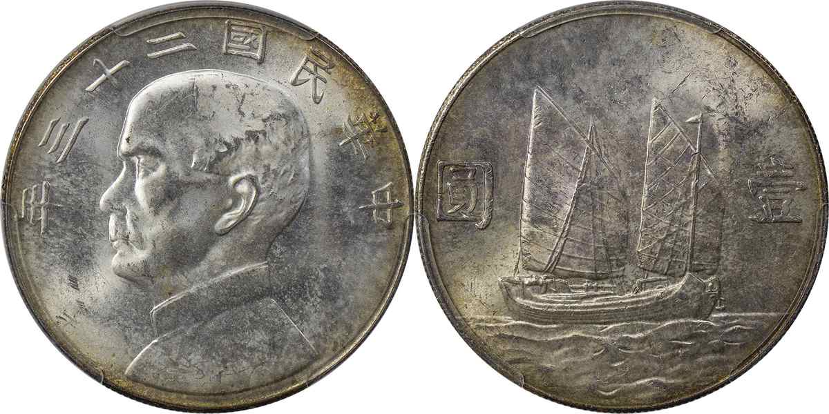 民国二十三年孙像帆船 壹圆 月