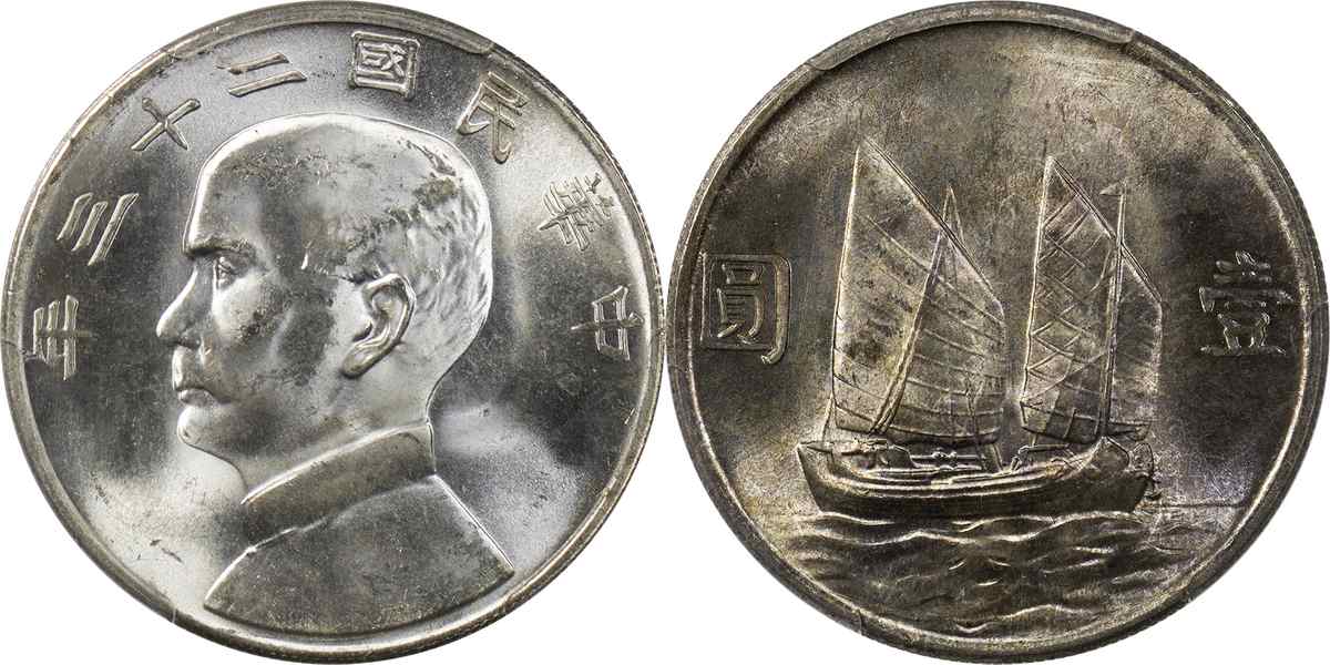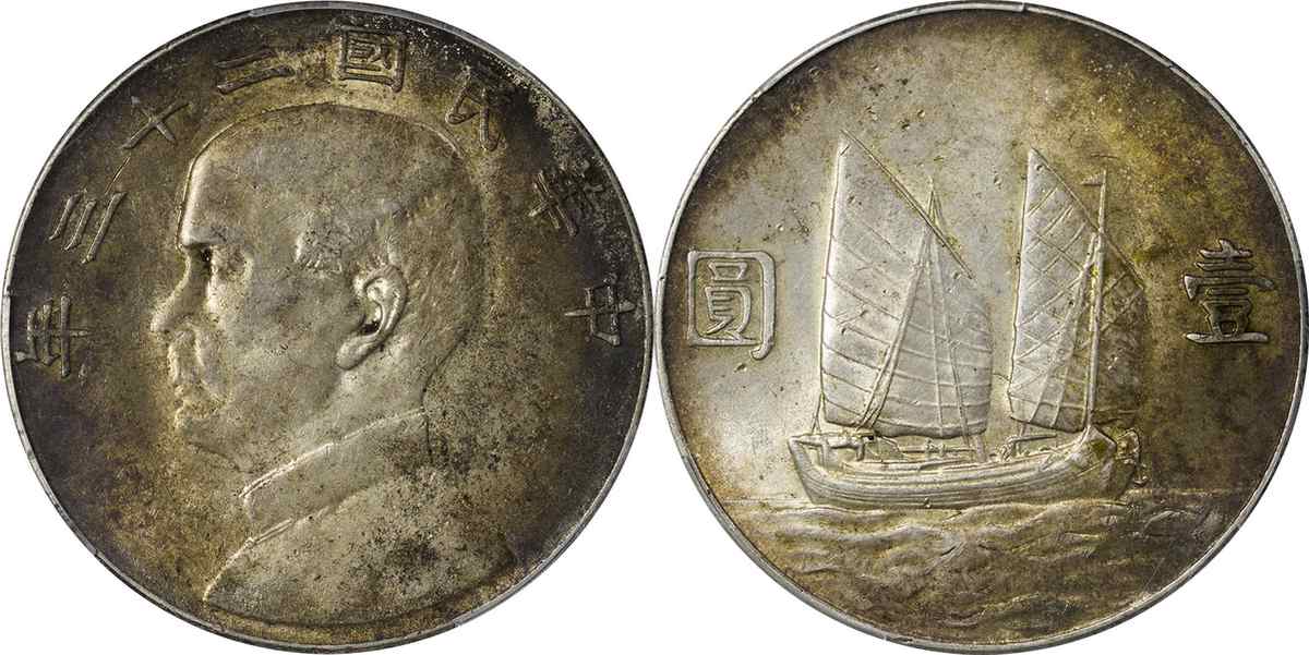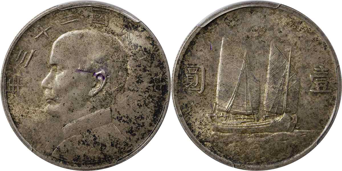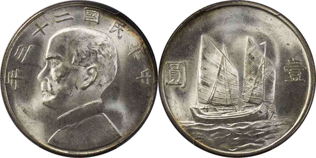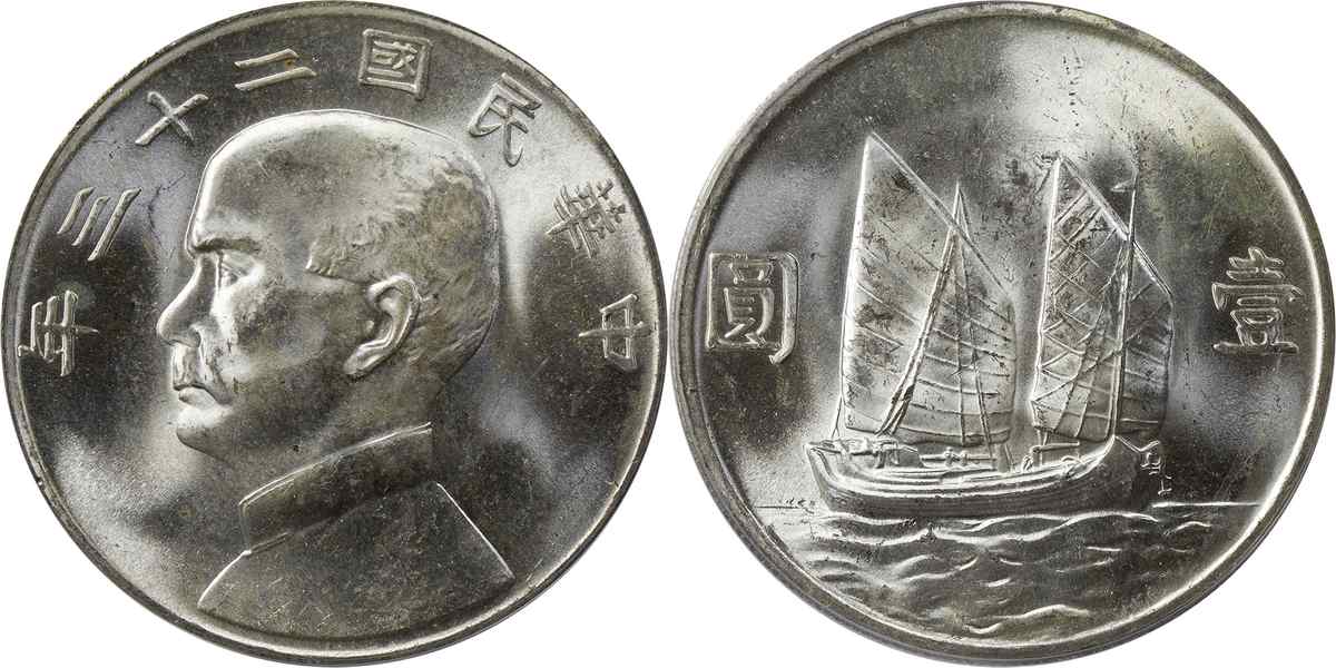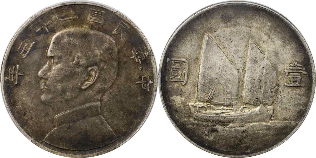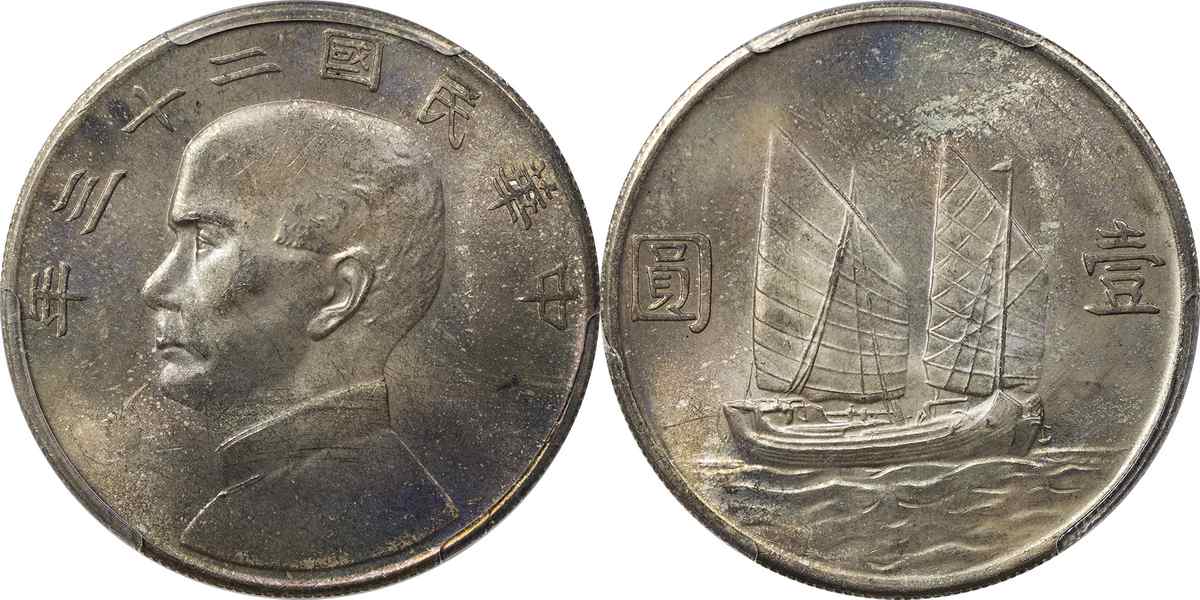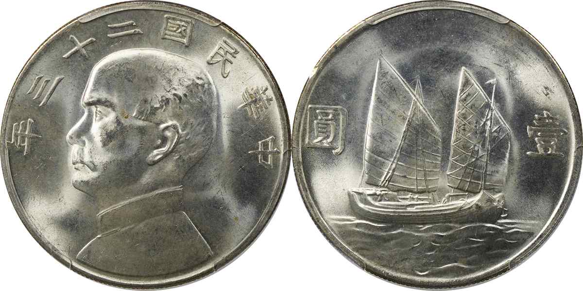 民国二十三年孙像帆船 壹圆 月