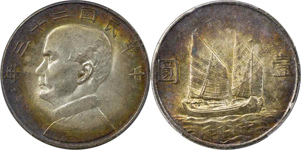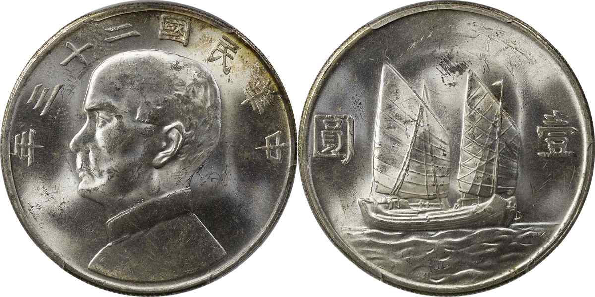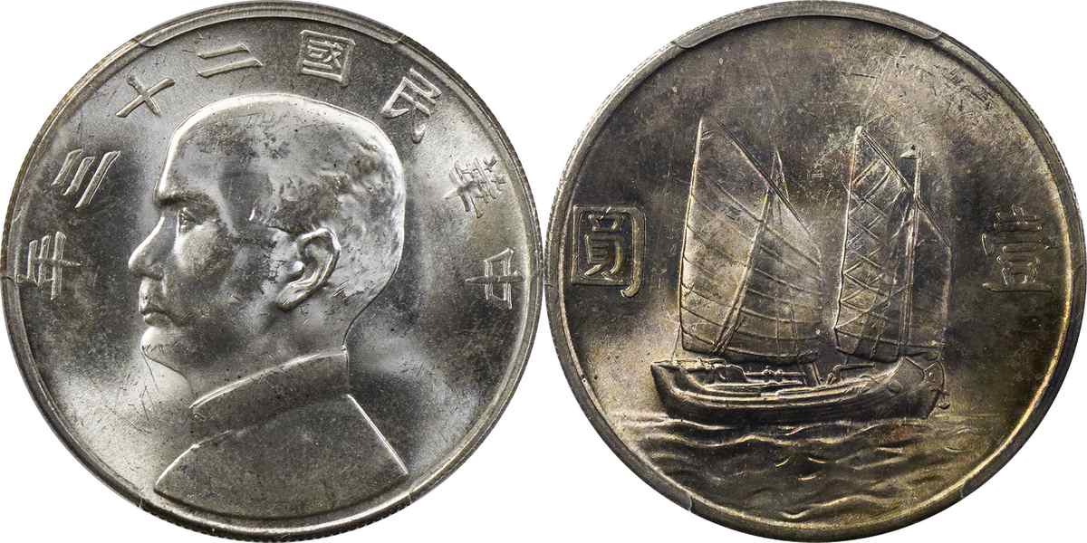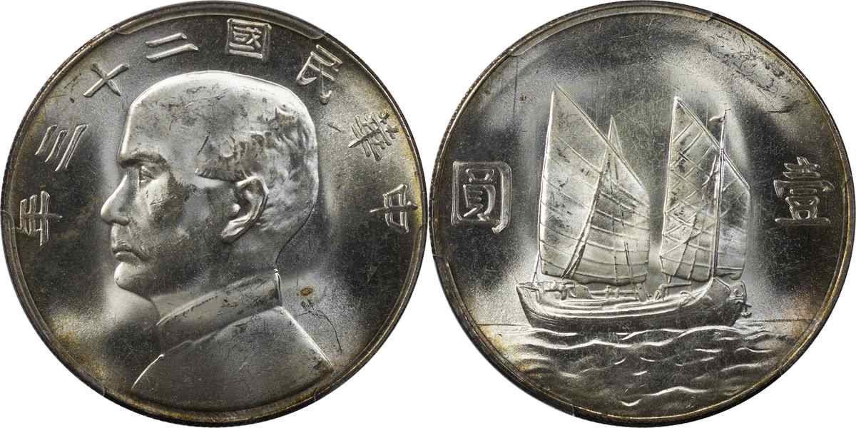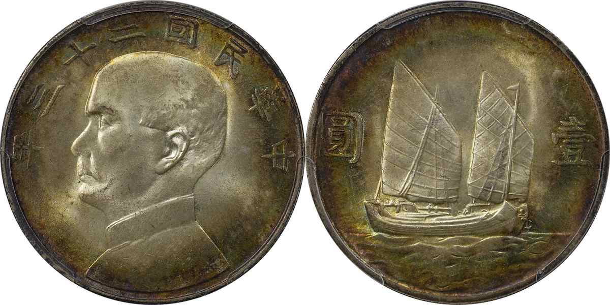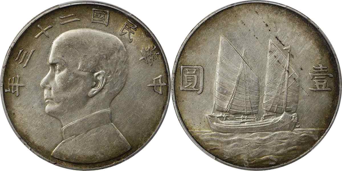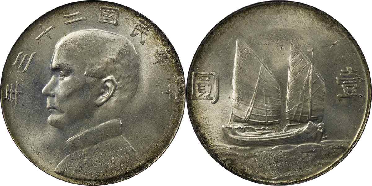 民国二十三年孙像帆船 壹圆 月