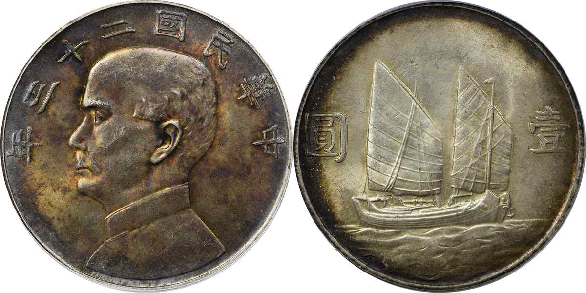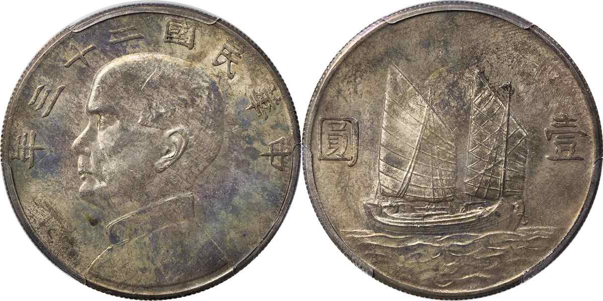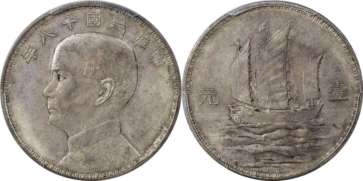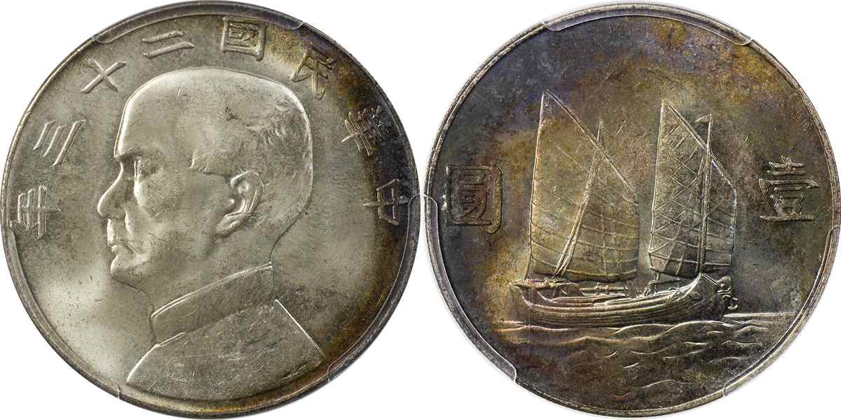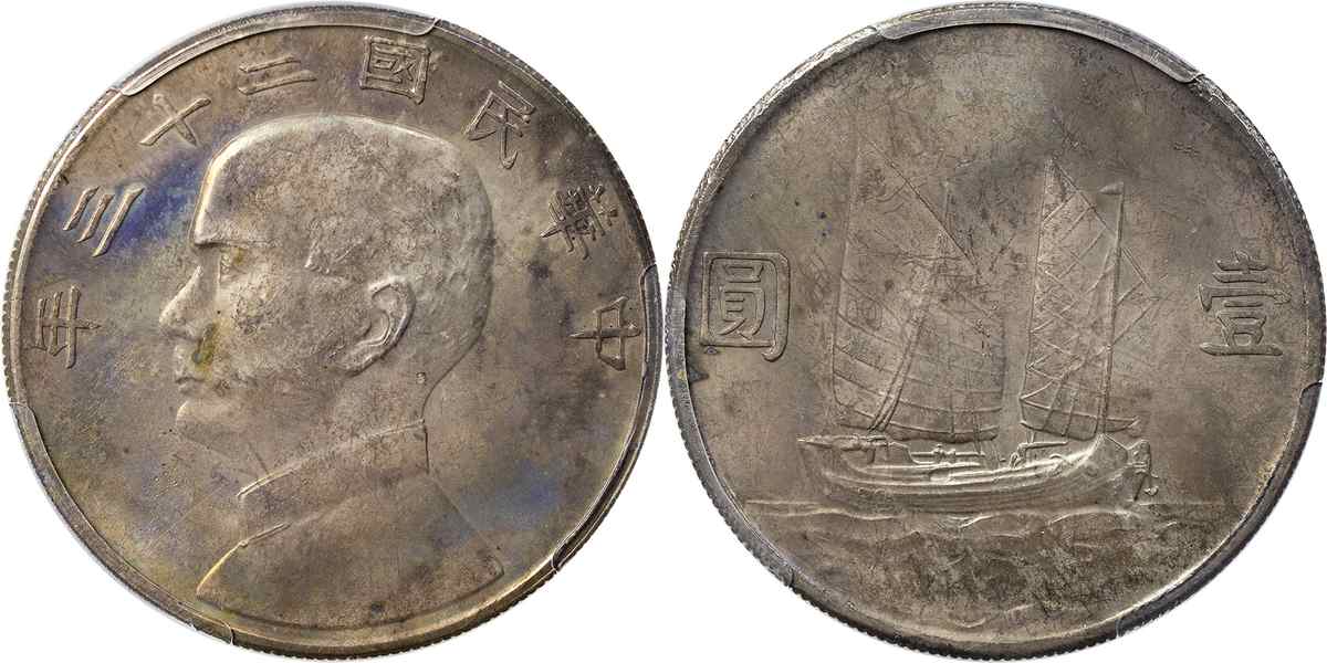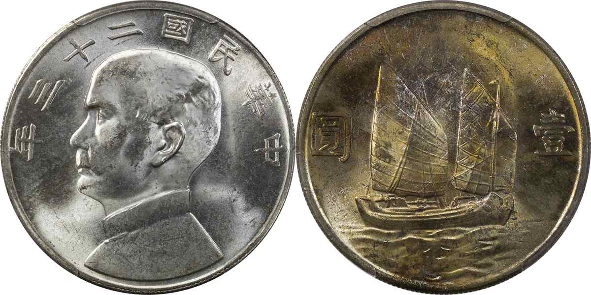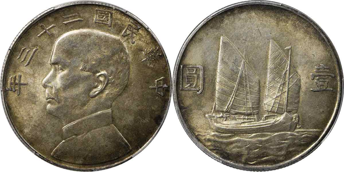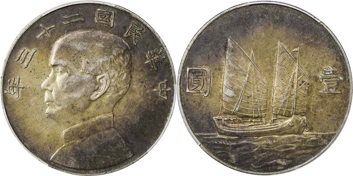 民国二十三年孙像帆船 壹圆 月