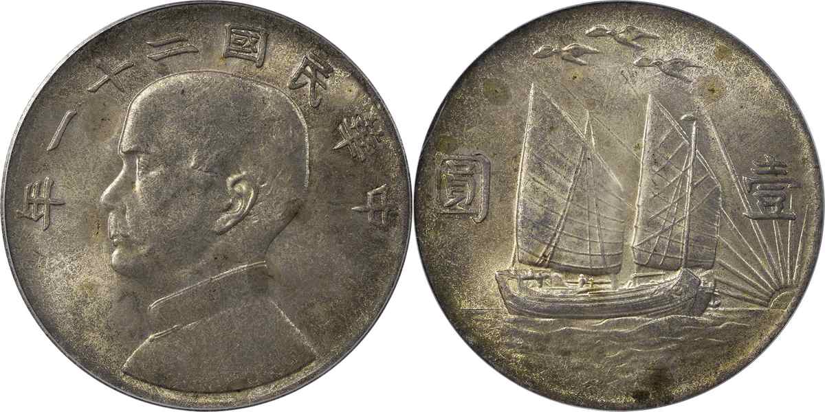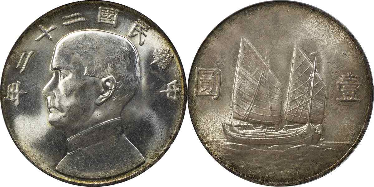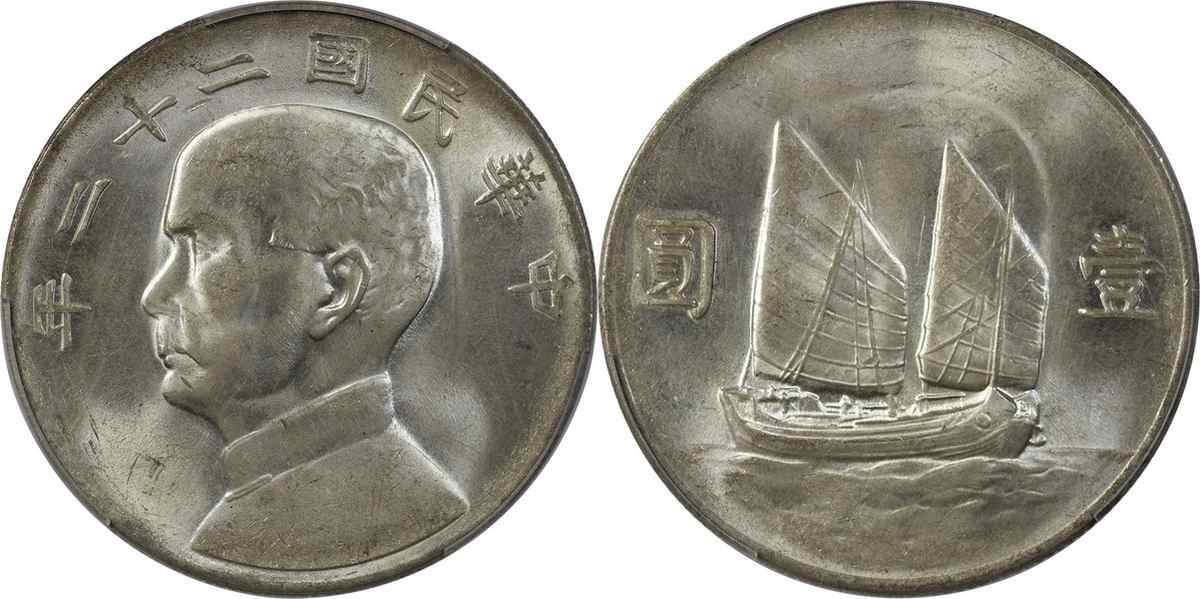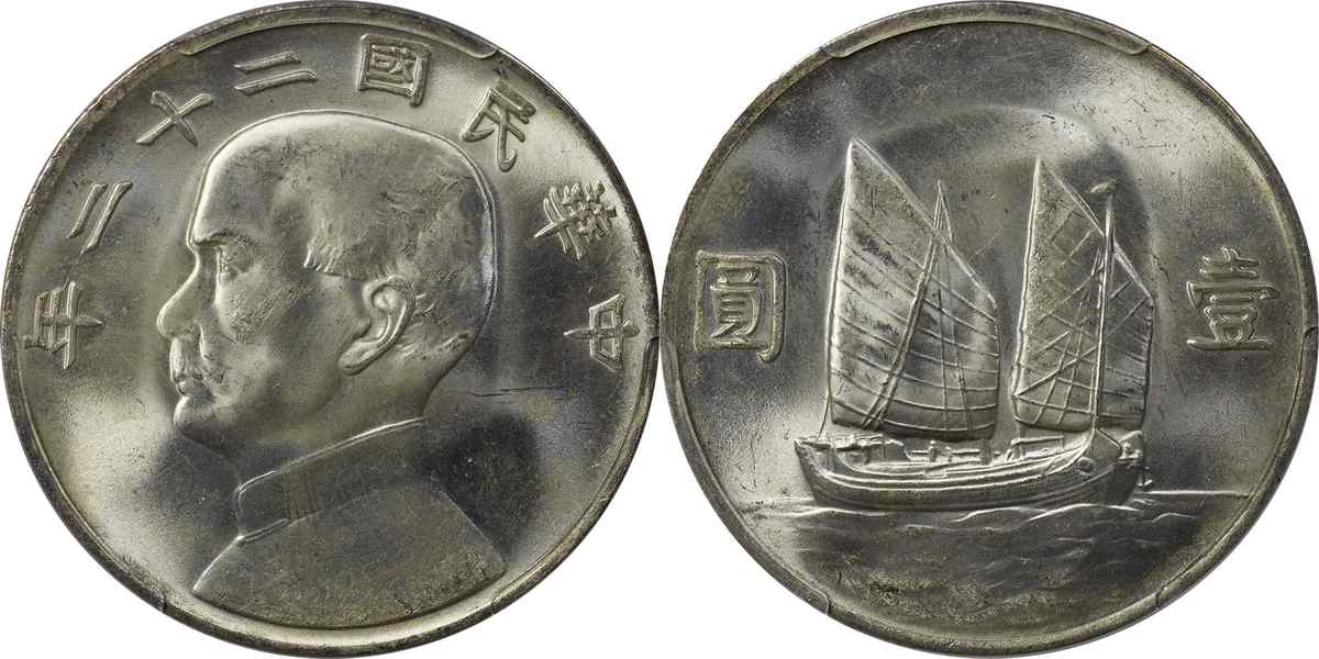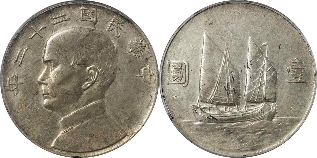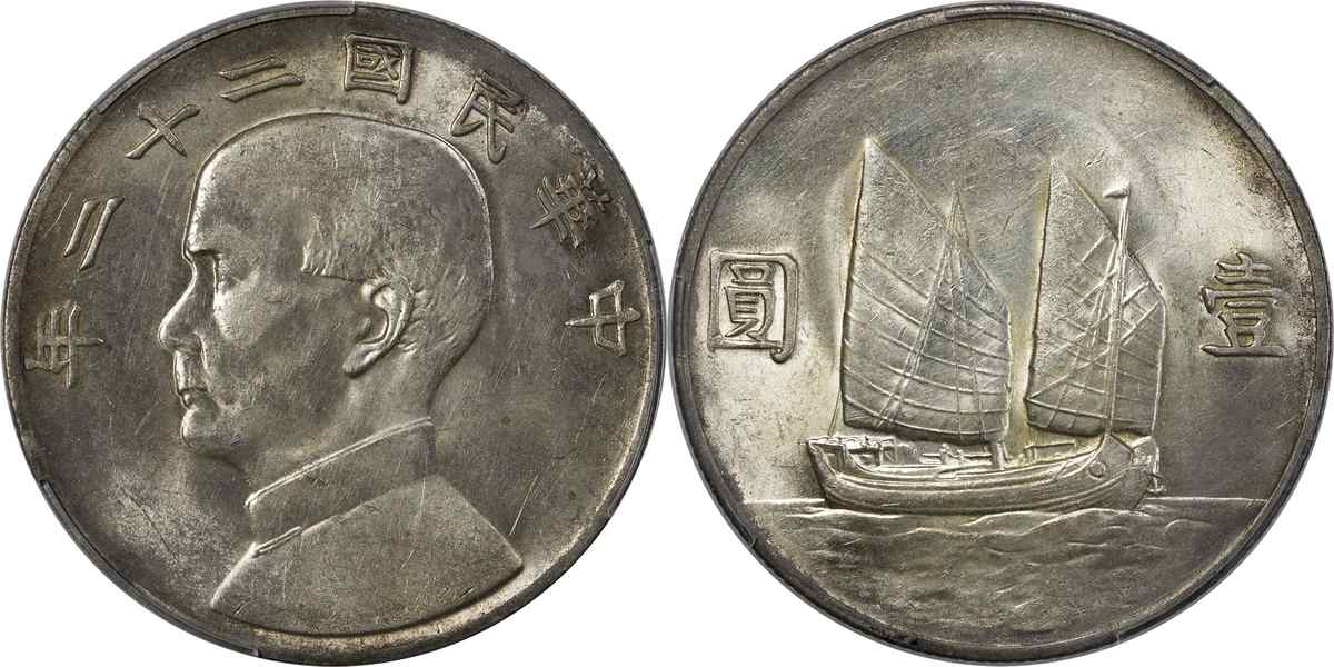 民国二十二年孙像帆船 壹圆