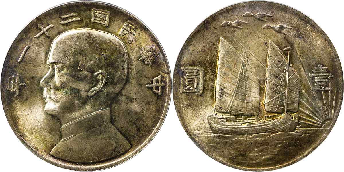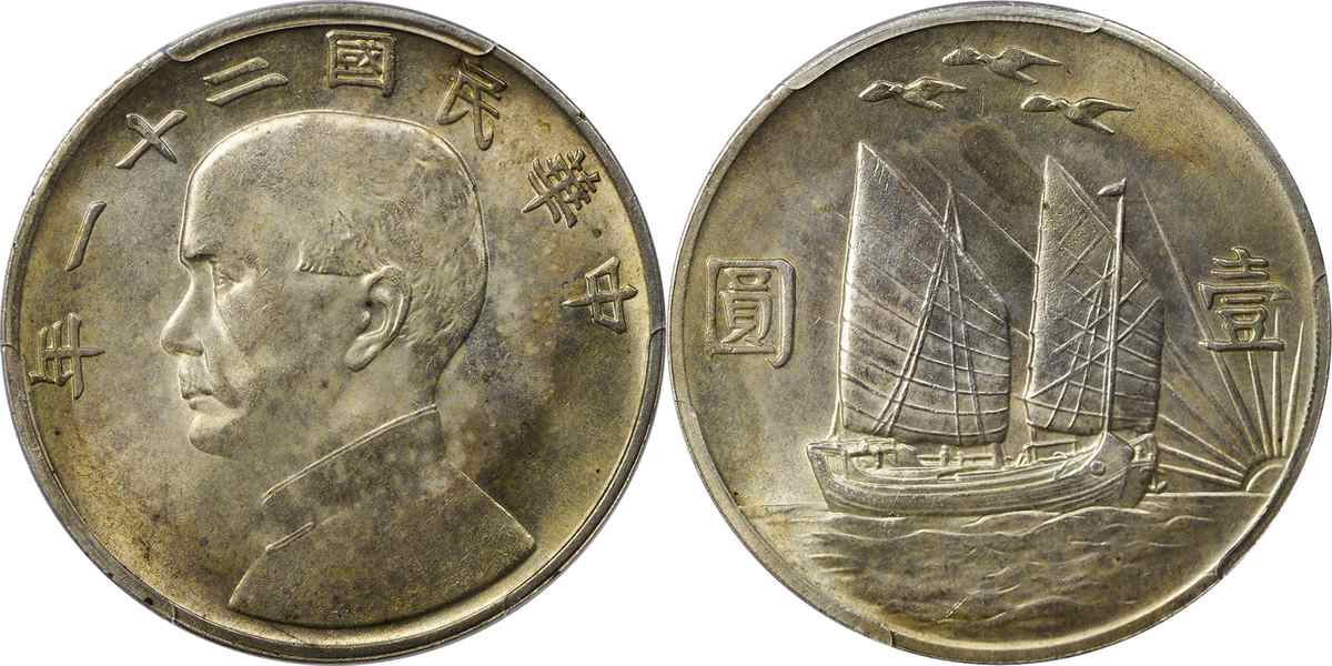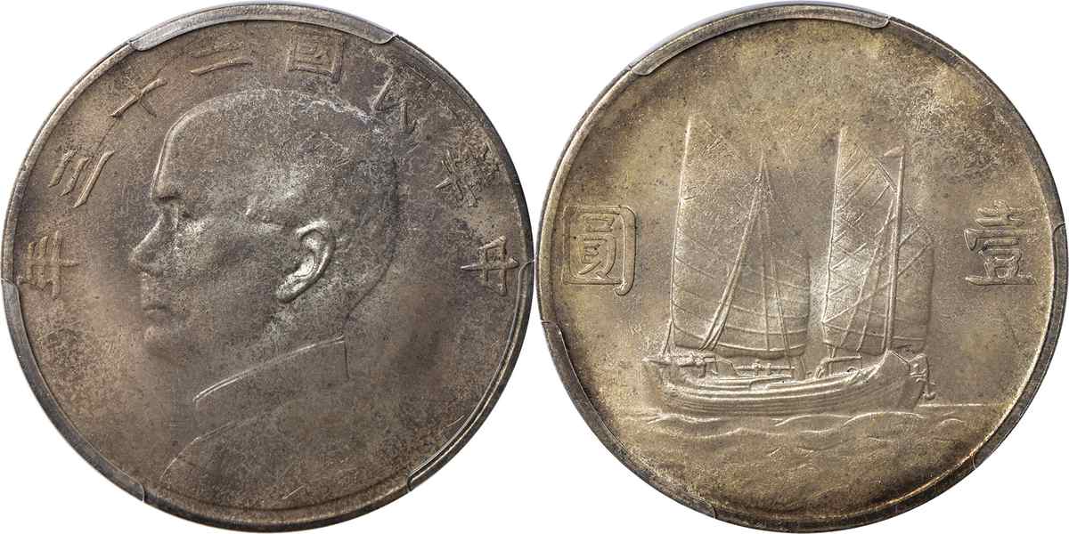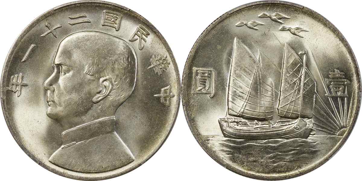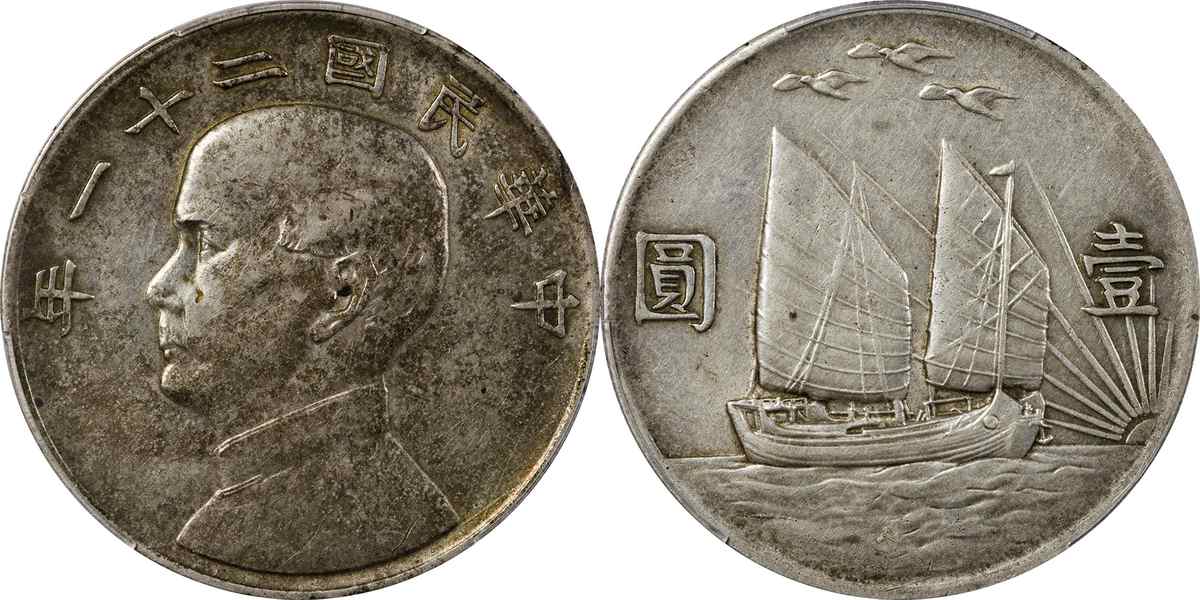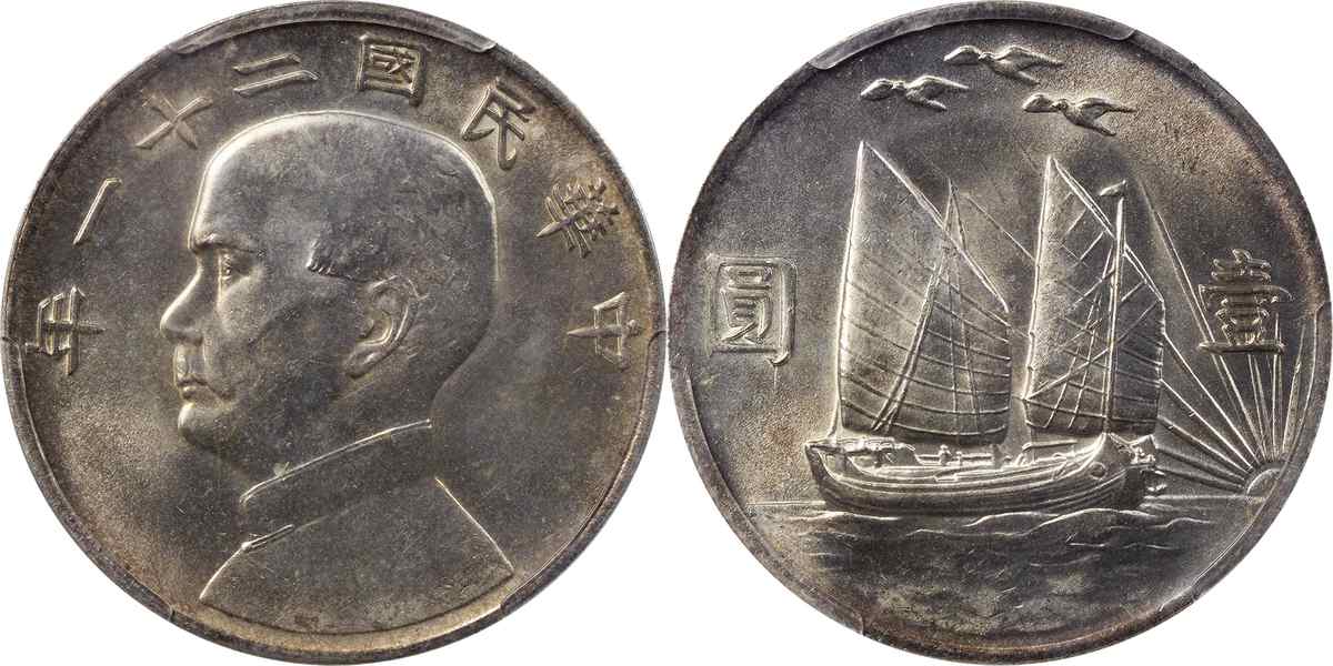 民国二十二年孙像帆船 壹圆