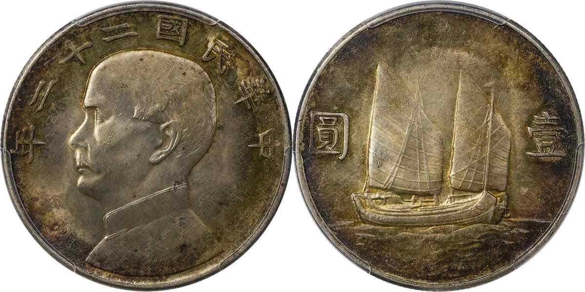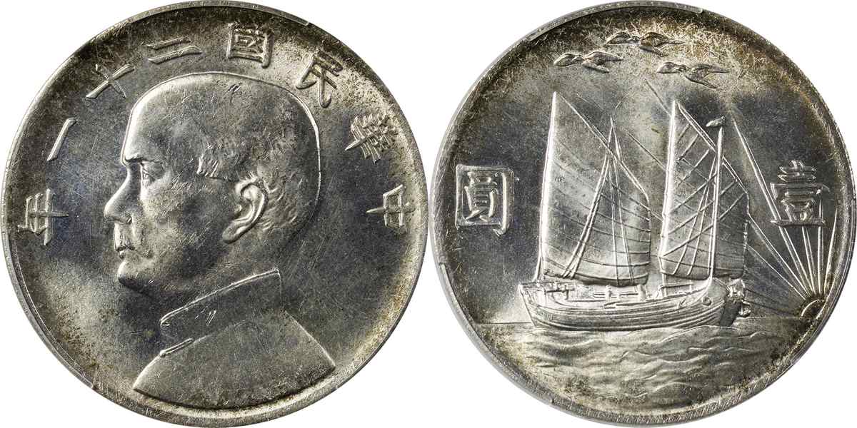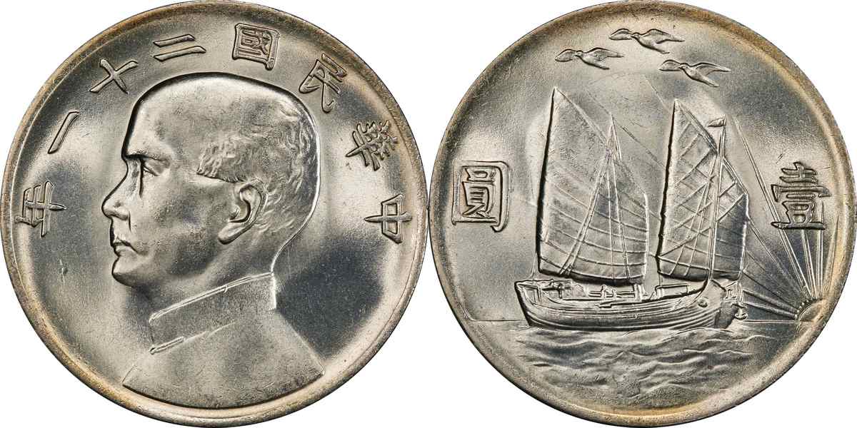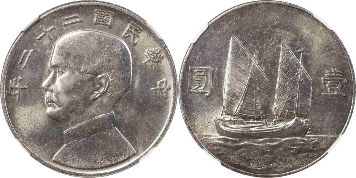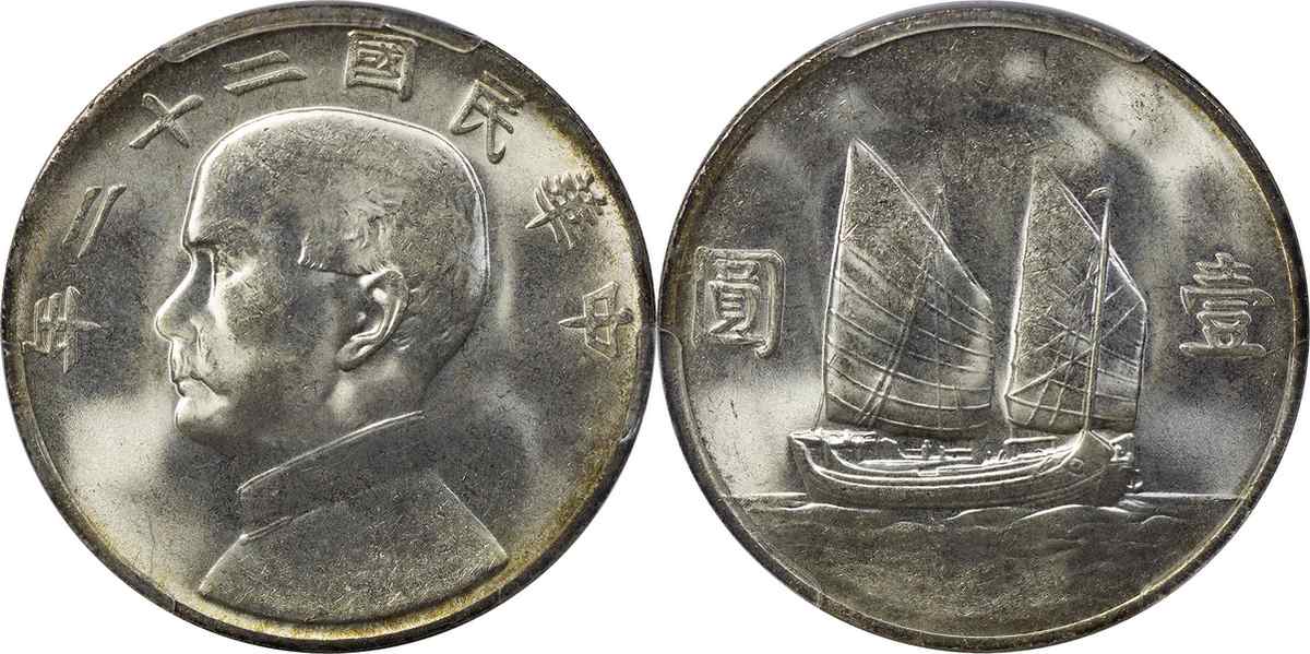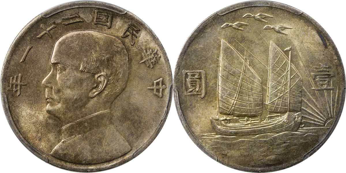 民国二十二年孙像帆船 壹圆
