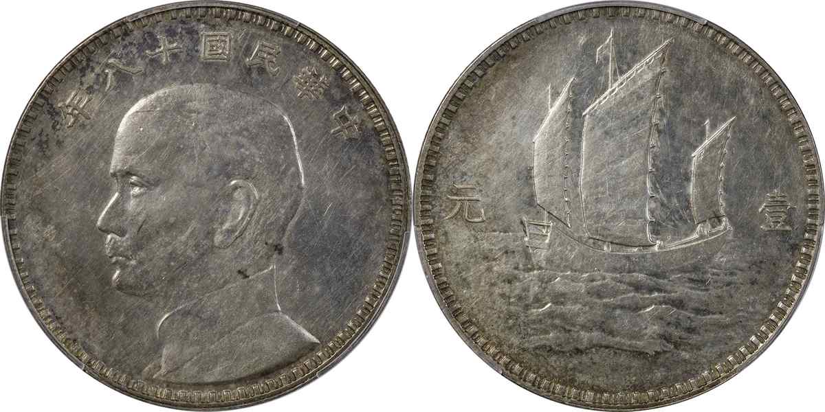 民国十八年孙像三帆 壹元 意大