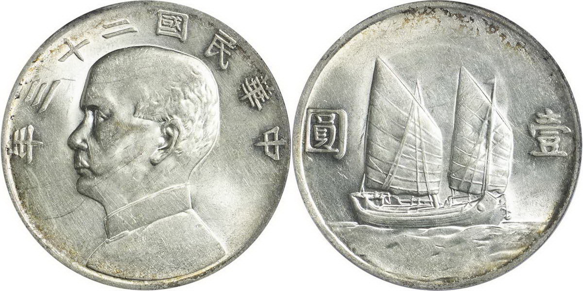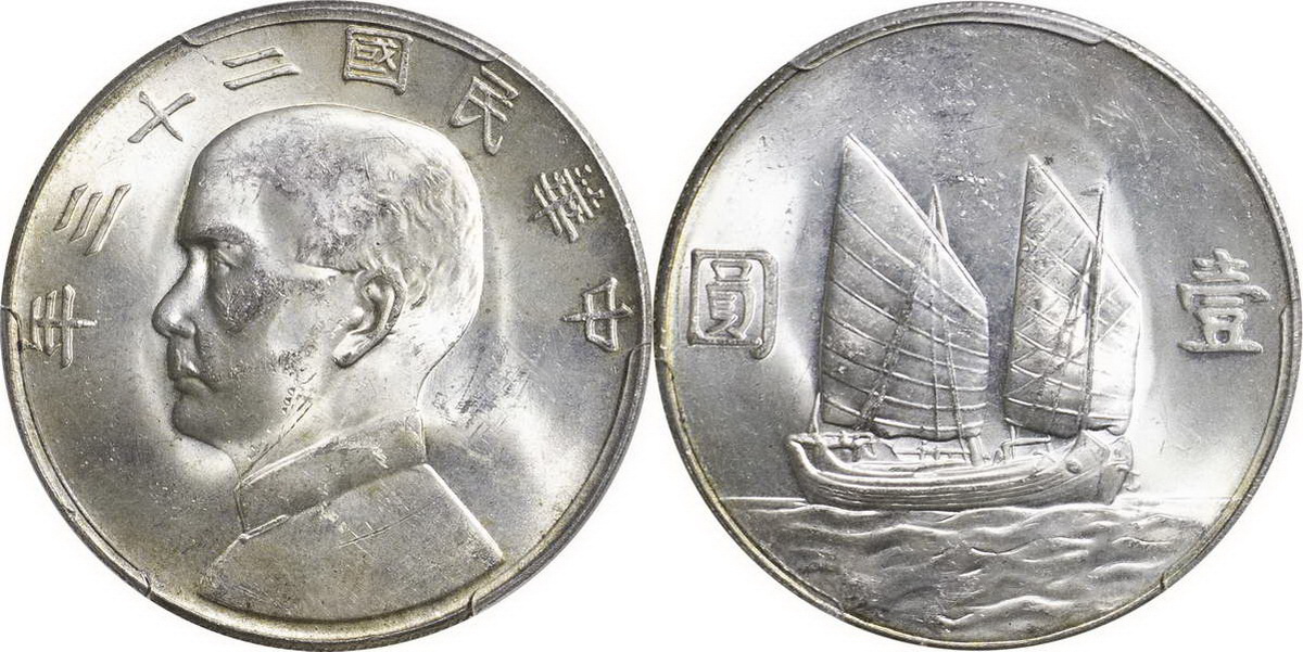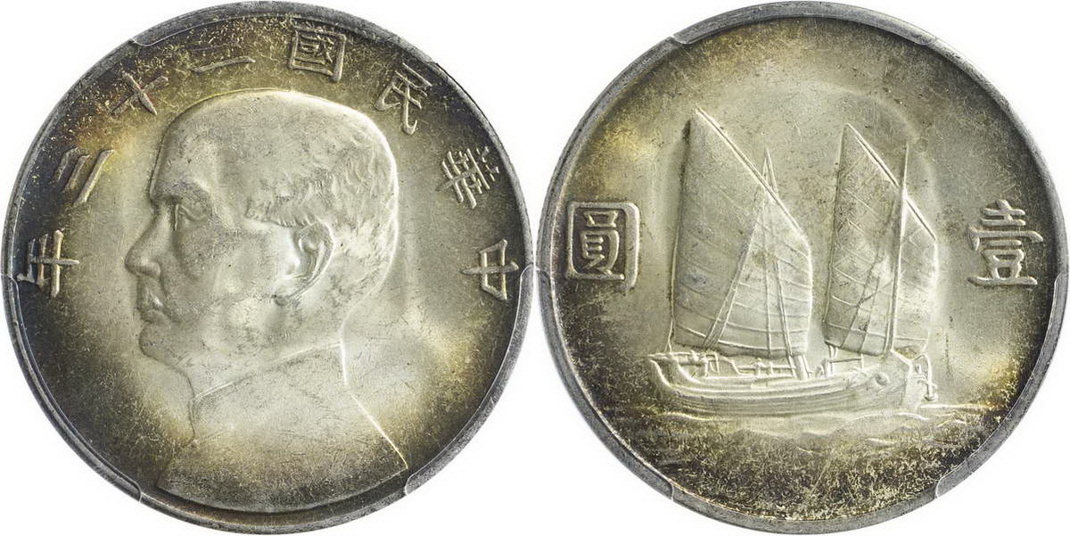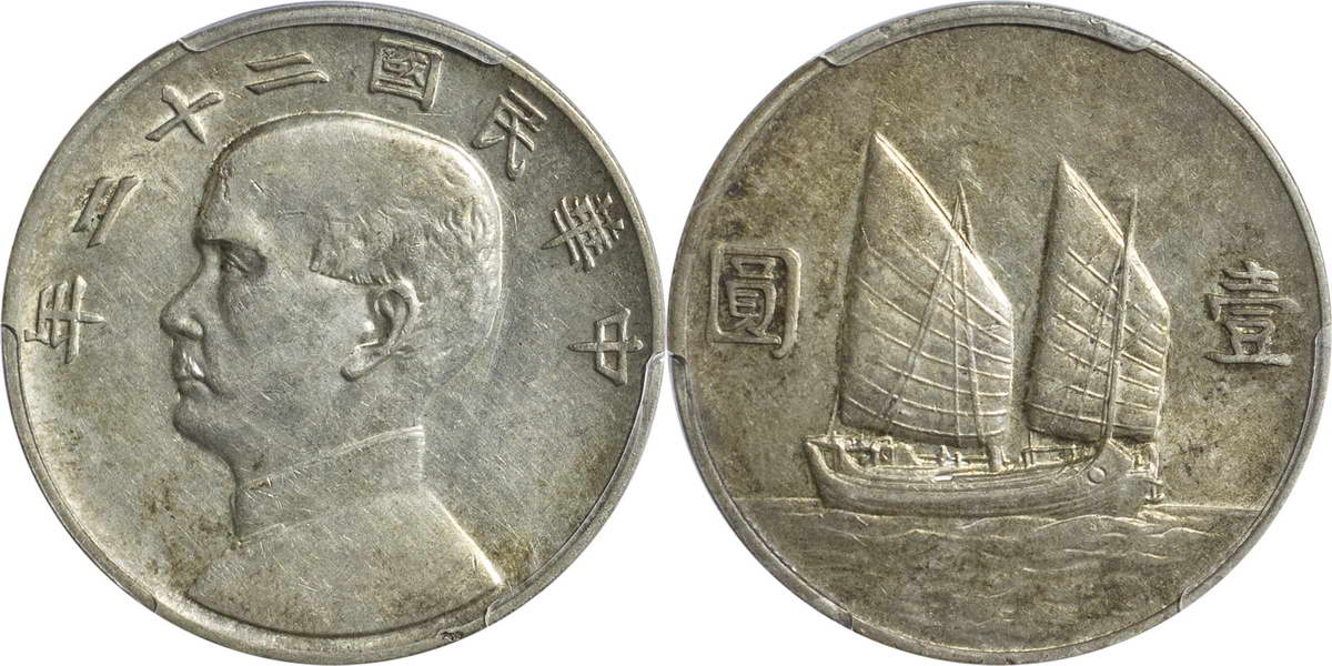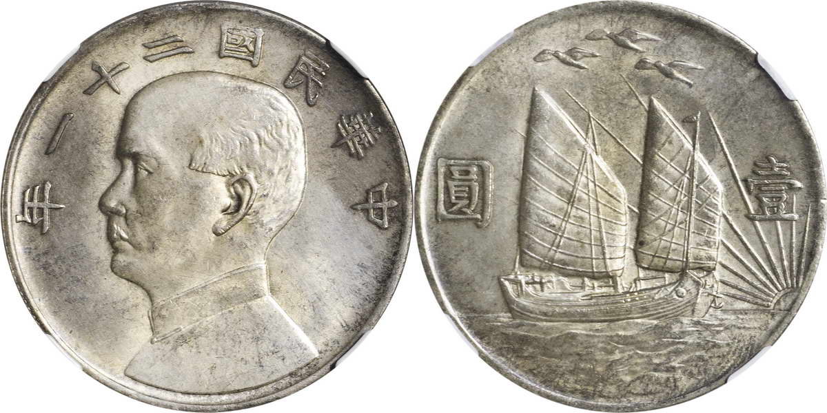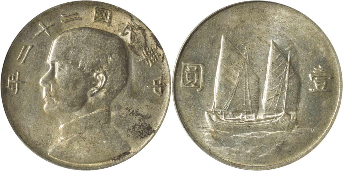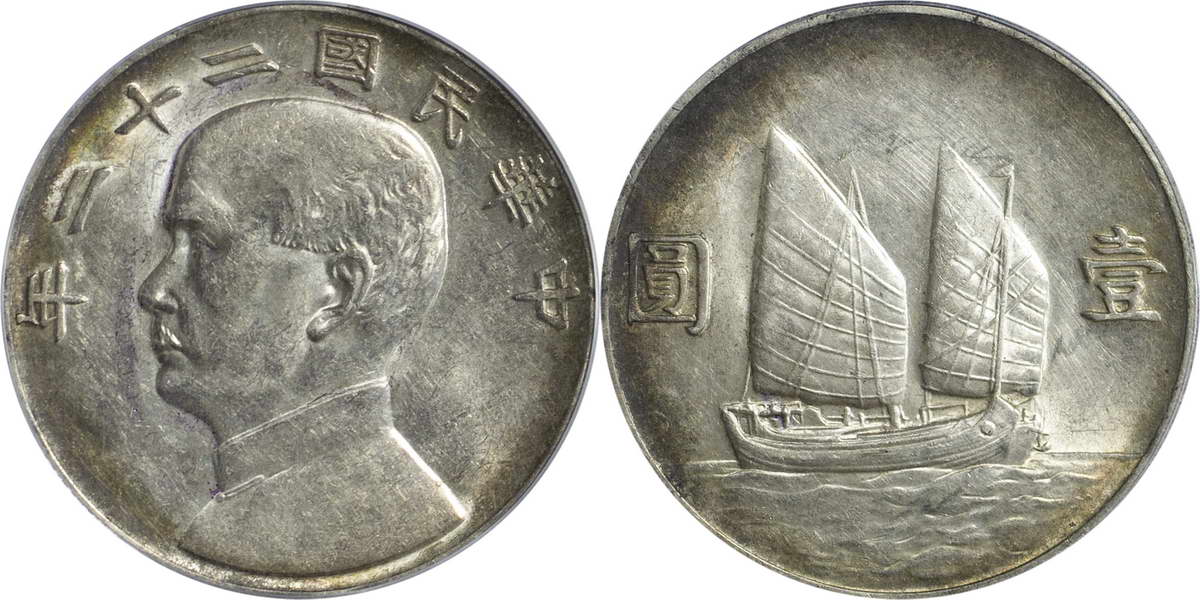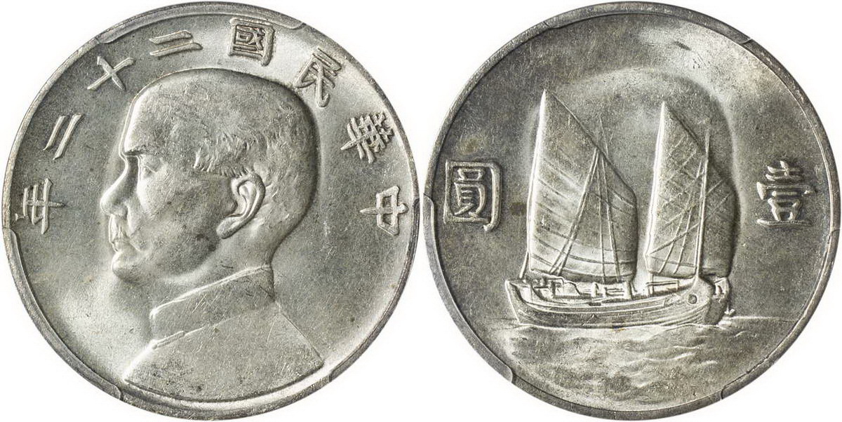 民国二十一年孙像帆船 壹圆 上