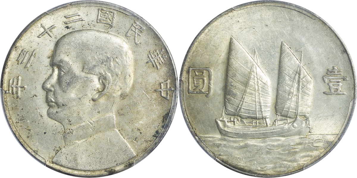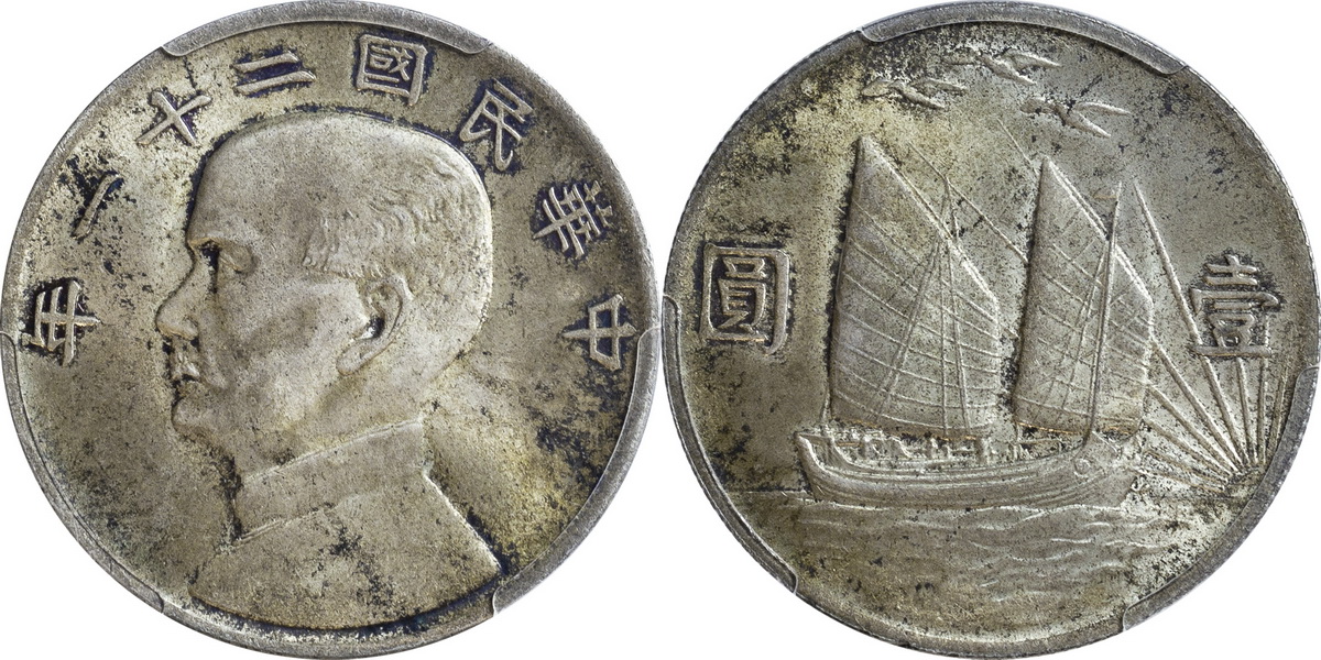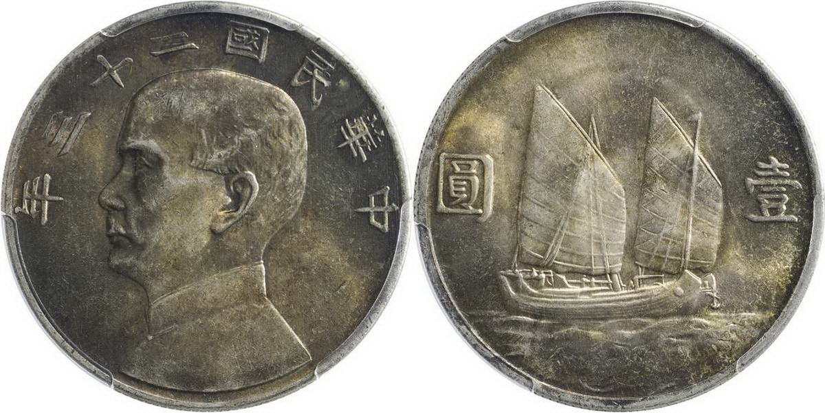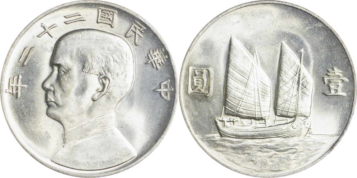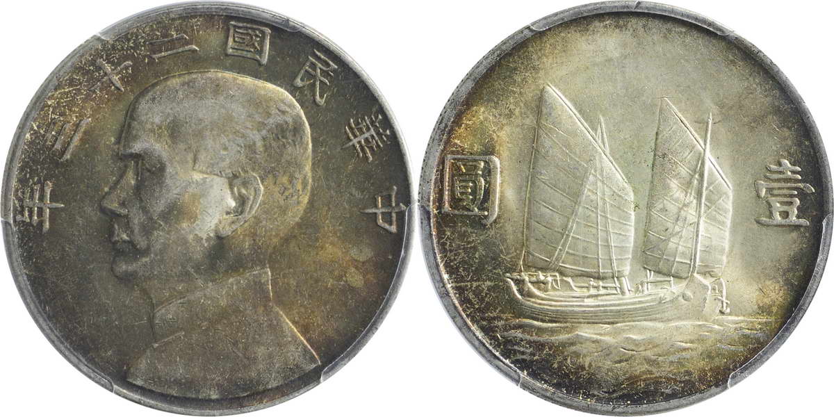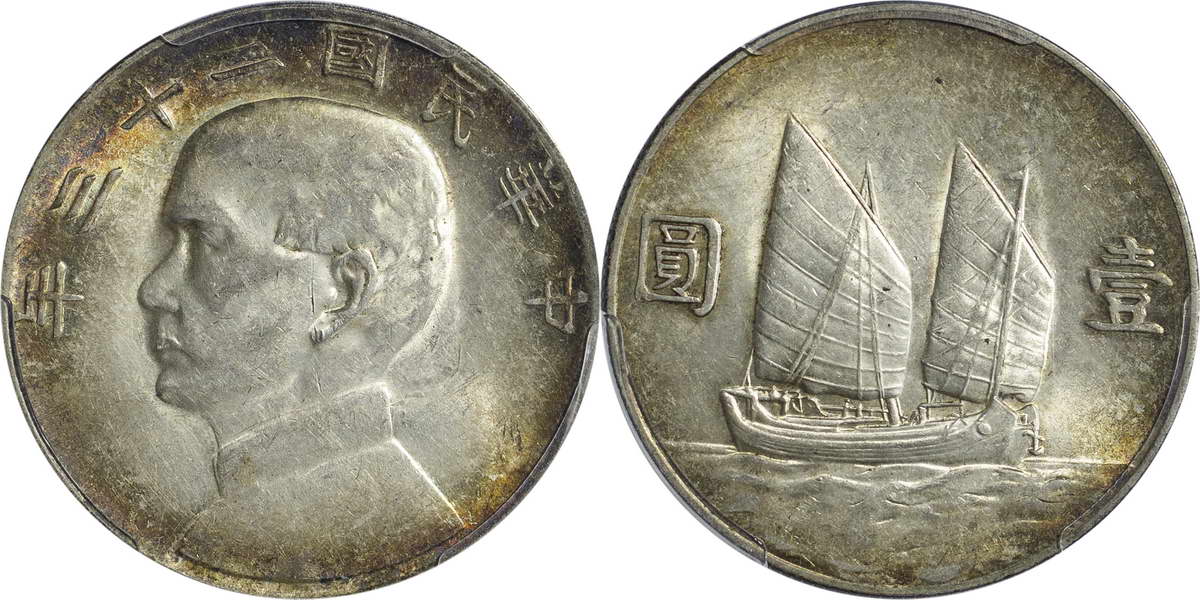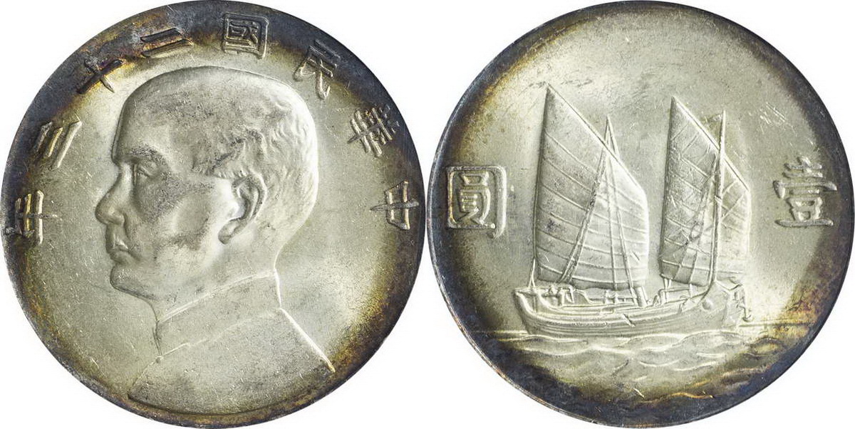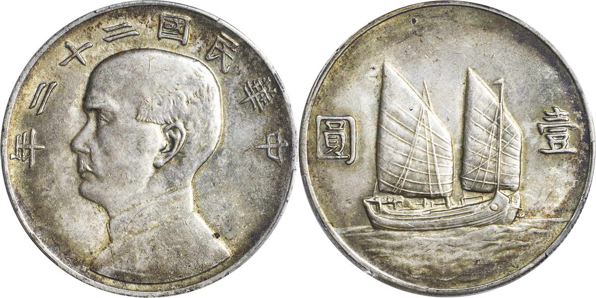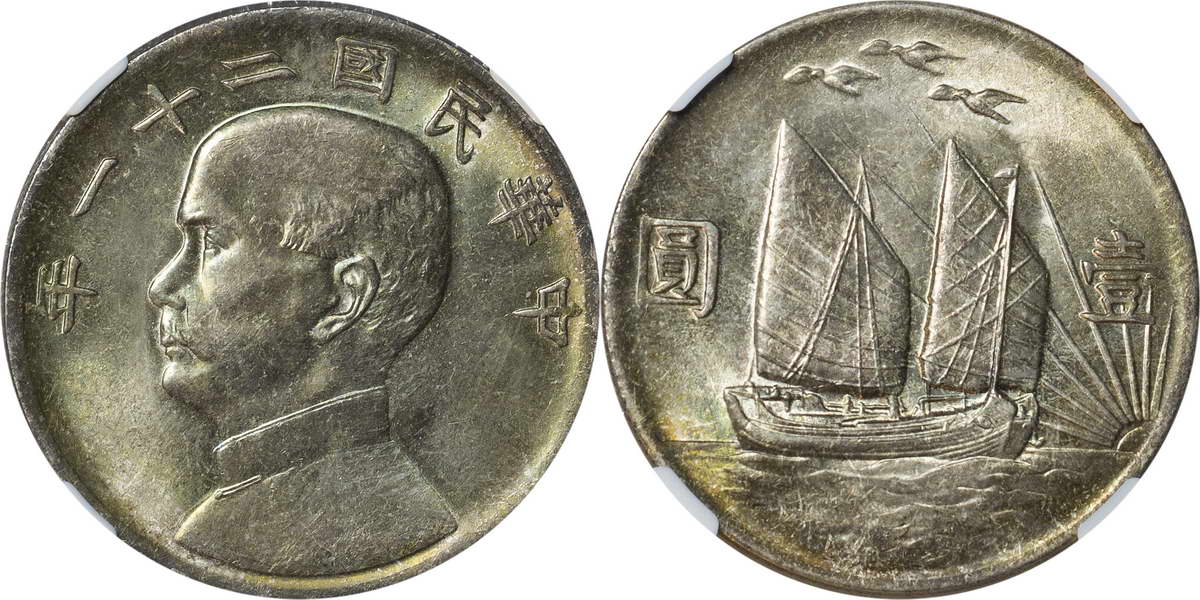 民国二十一年孙像帆船 壹圆 上