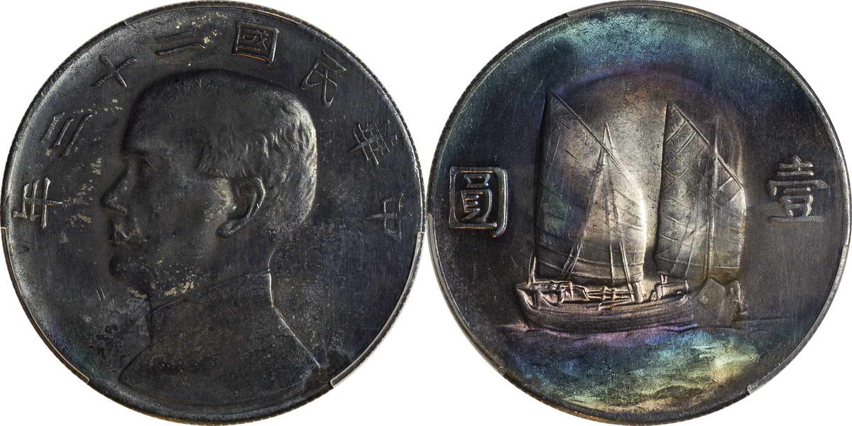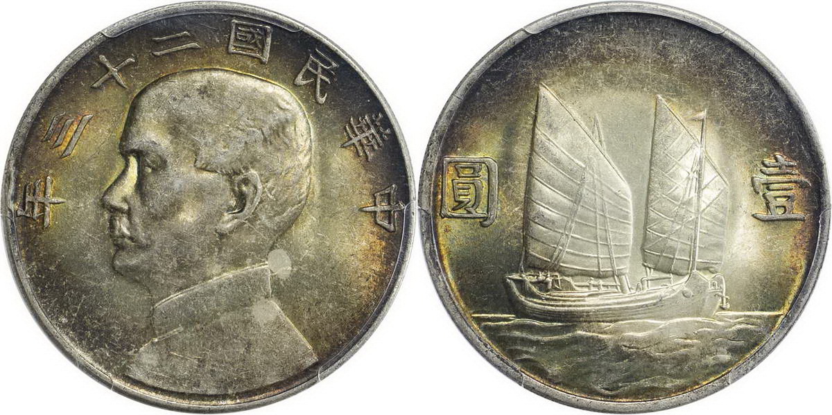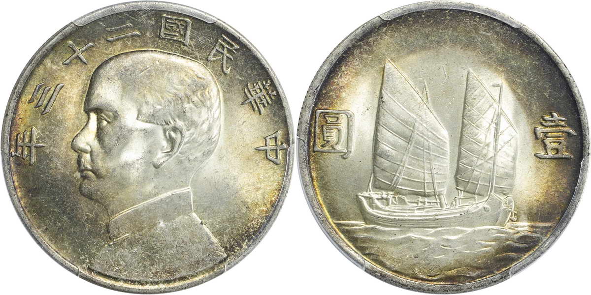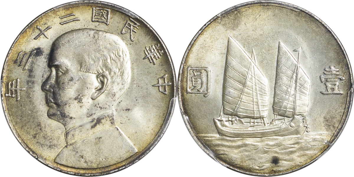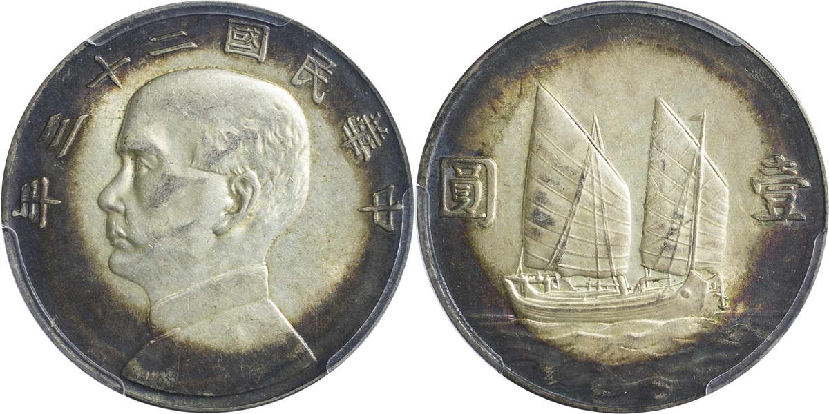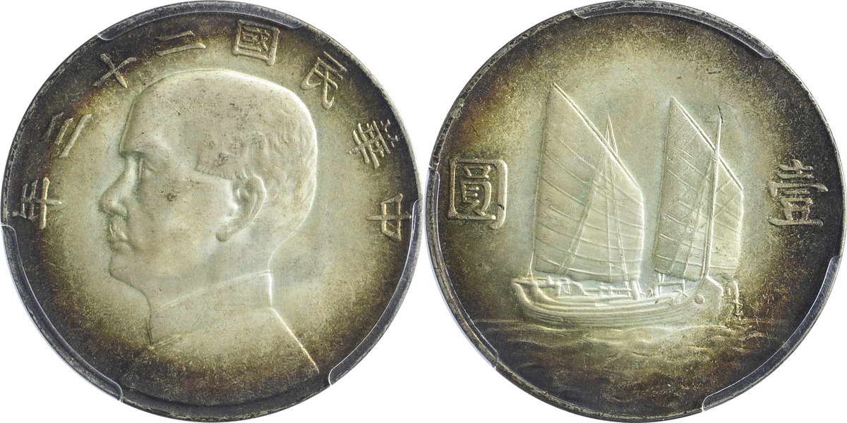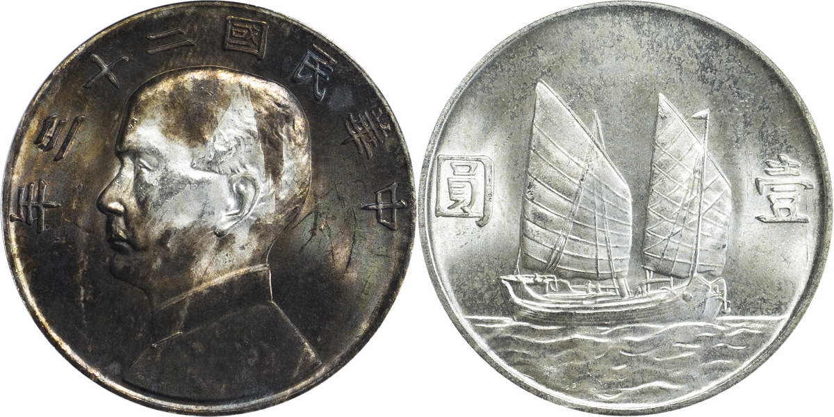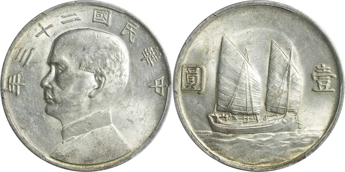 民国二十一年孙像帆船 壹圆 上