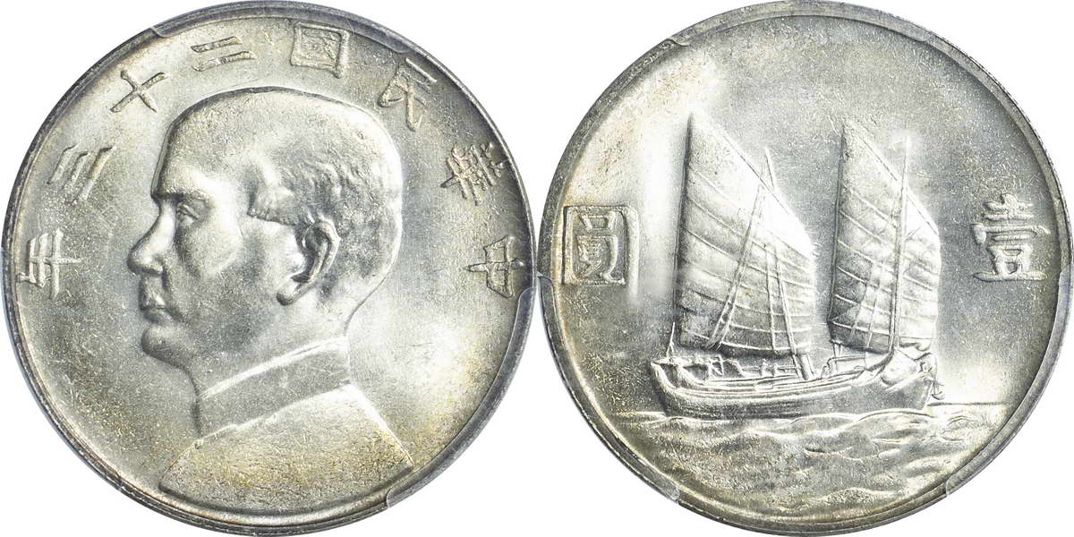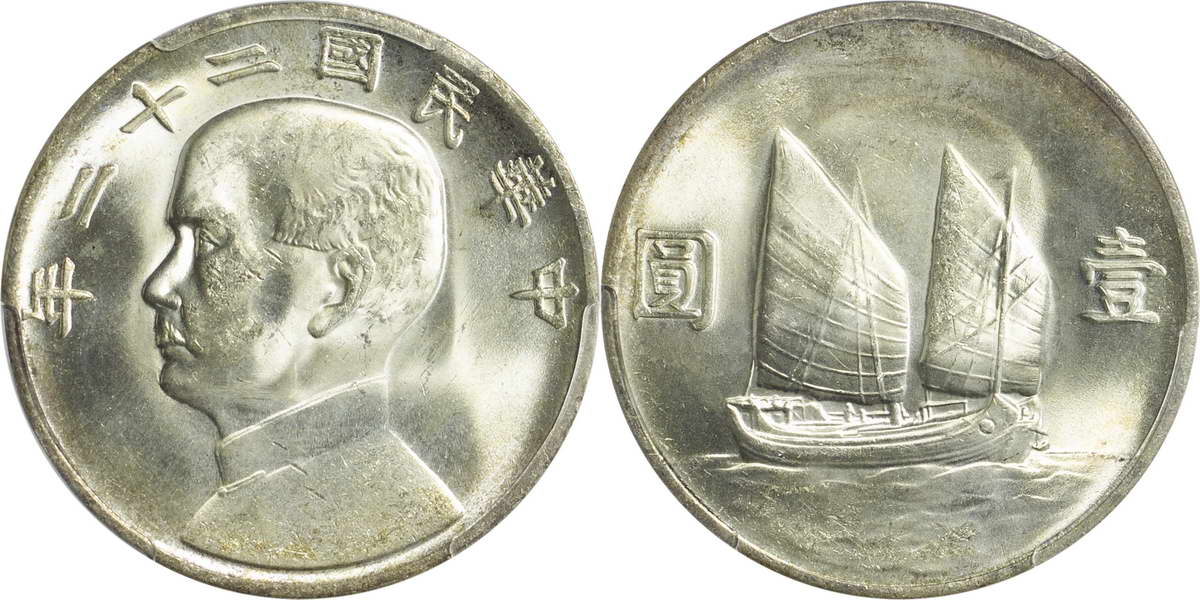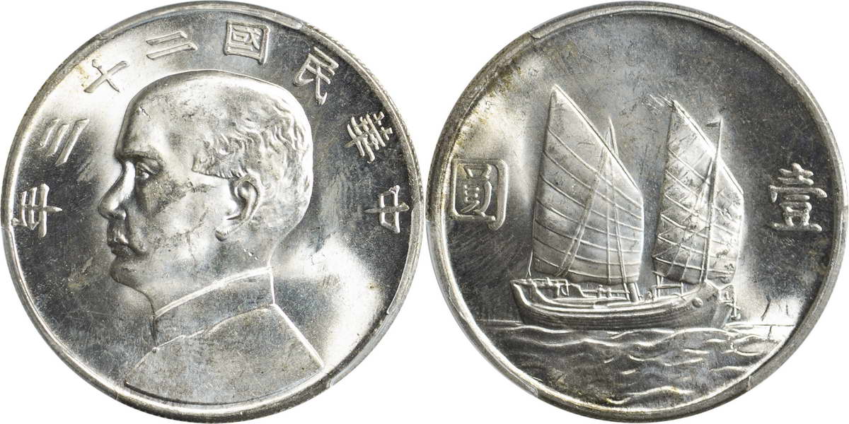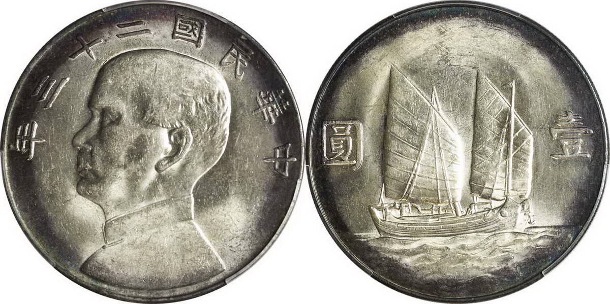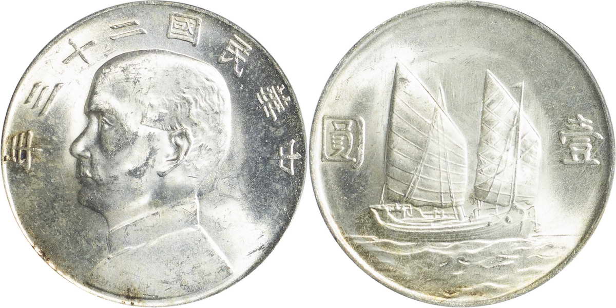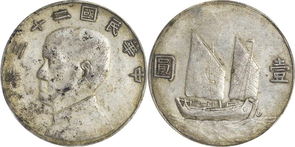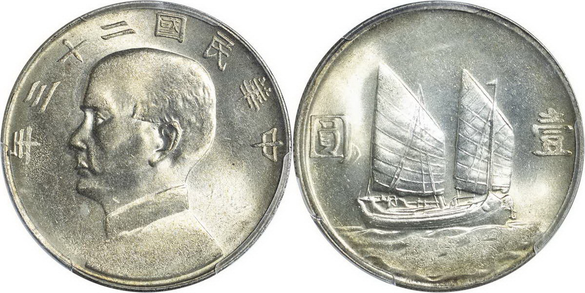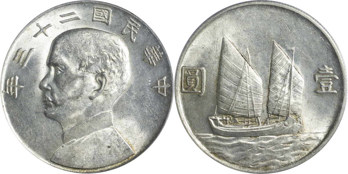 民国二十三年孙像帆船 壹圆(2