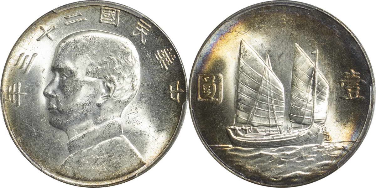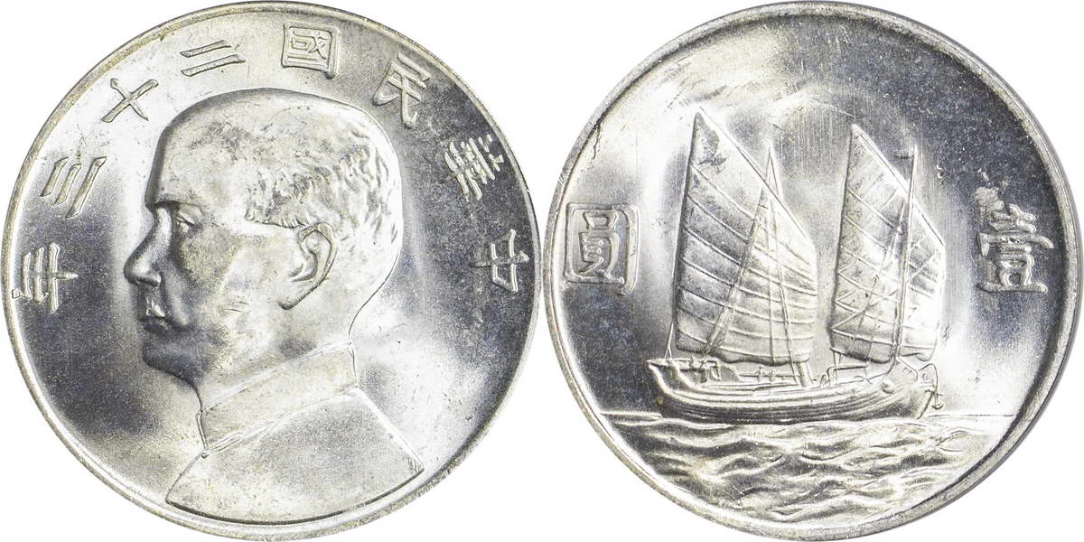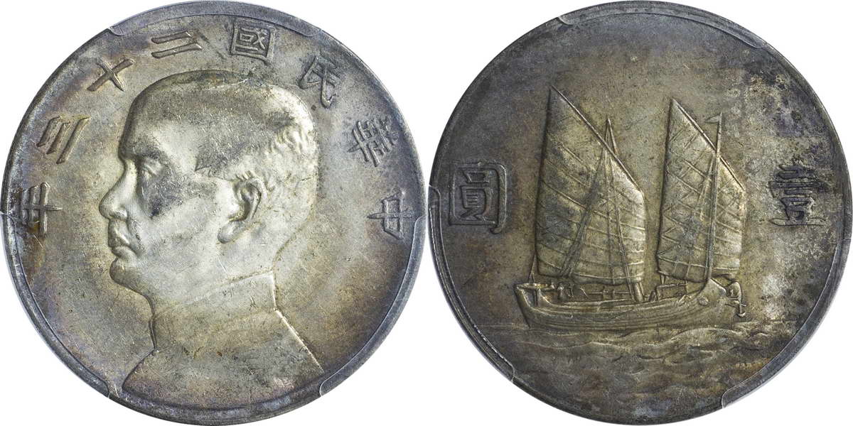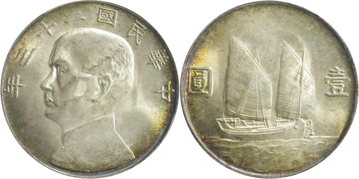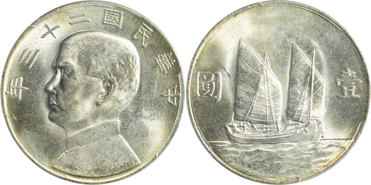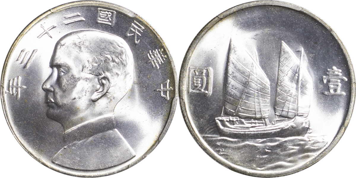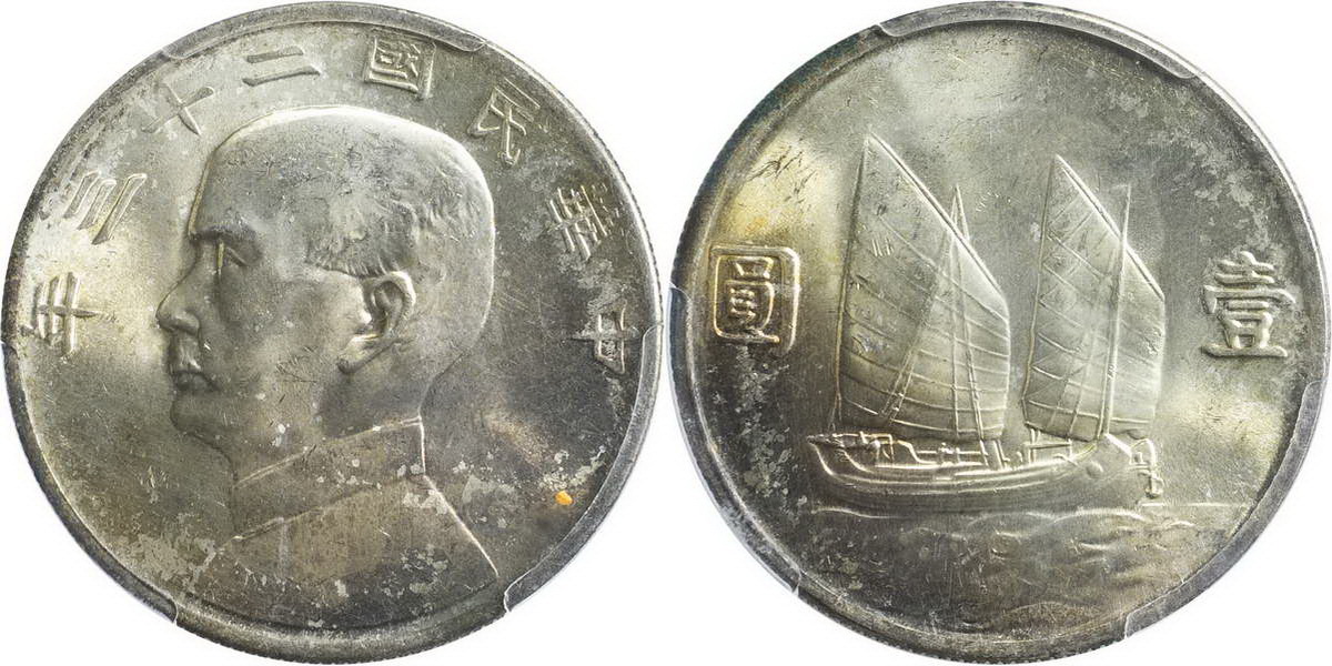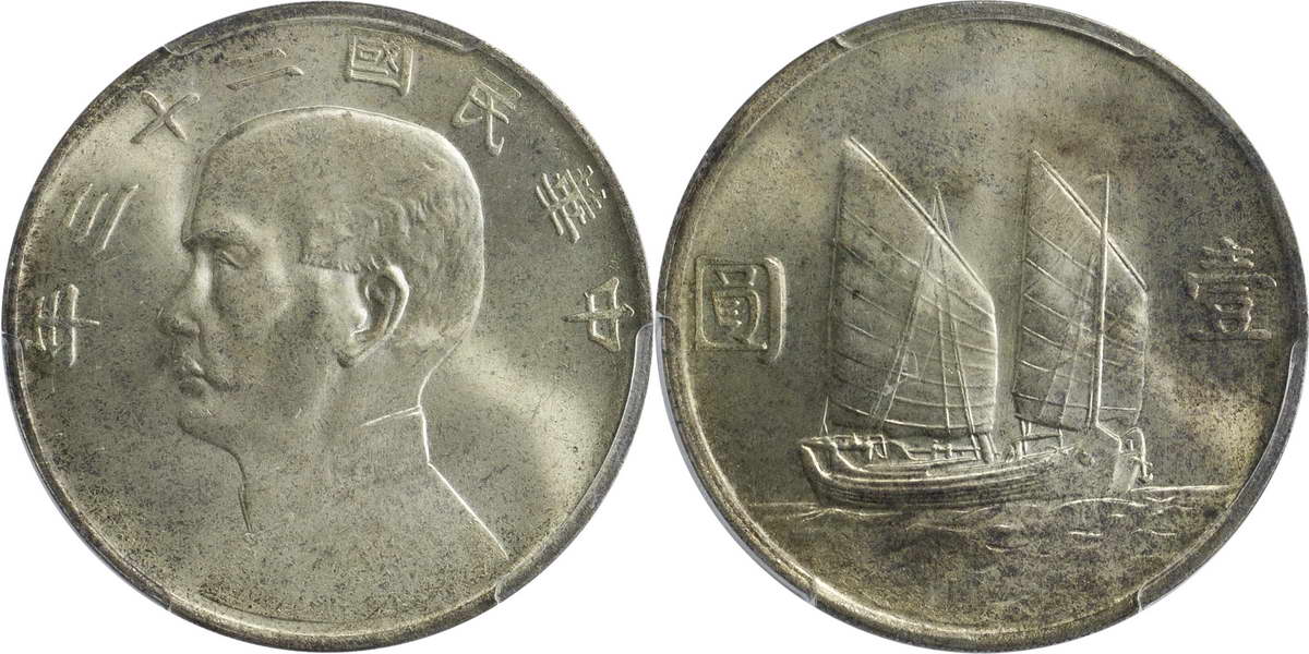 民国二十三年孙像帆船 壹圆(2